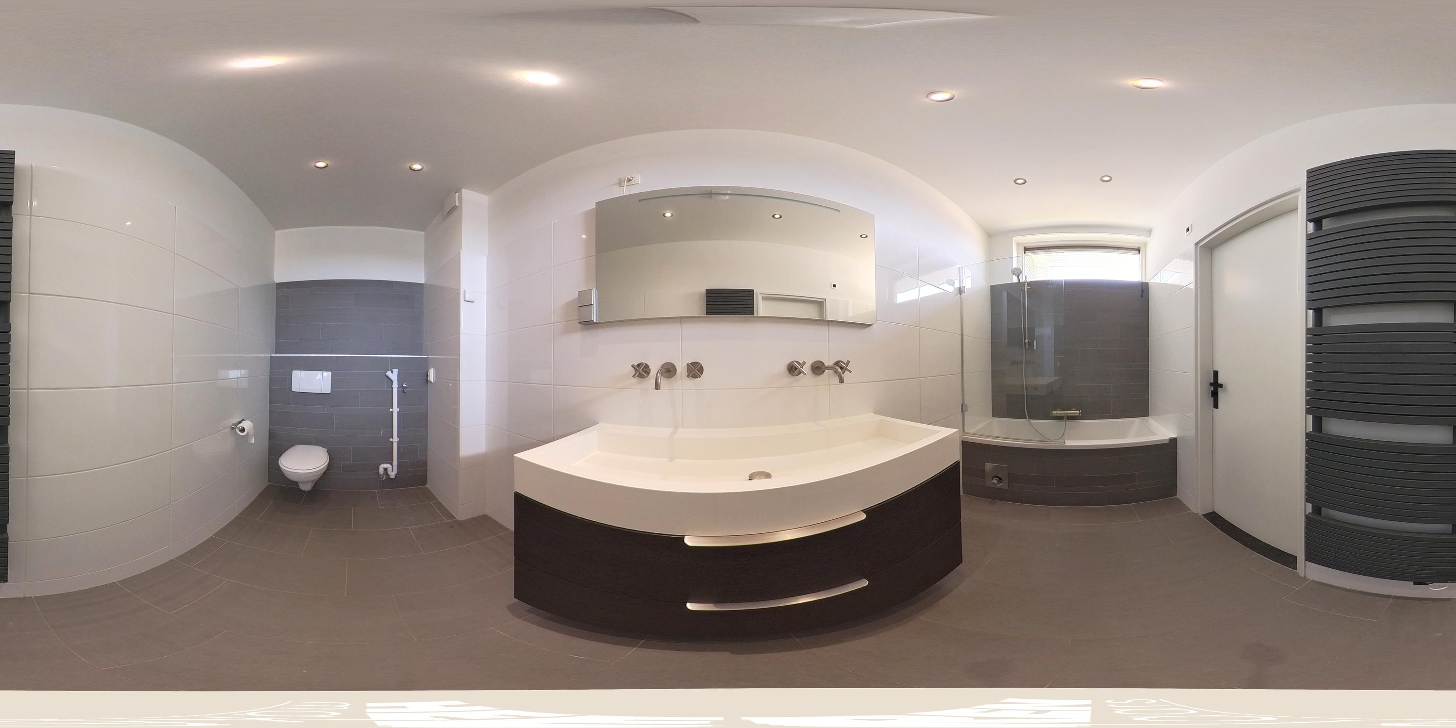 At the rear is the generous master bedroom, also with air conditioning, and French doors opening onto the balcony. This room features a luxurious en-suite bathroom with a bathtub, double washbasin with vanity unit, and toilet. Adjacent is a second bedroom, ideal as a guest room, children’s room, or office. A third well-proportioned bedroom is located at the front, also equipped with air conditioning.