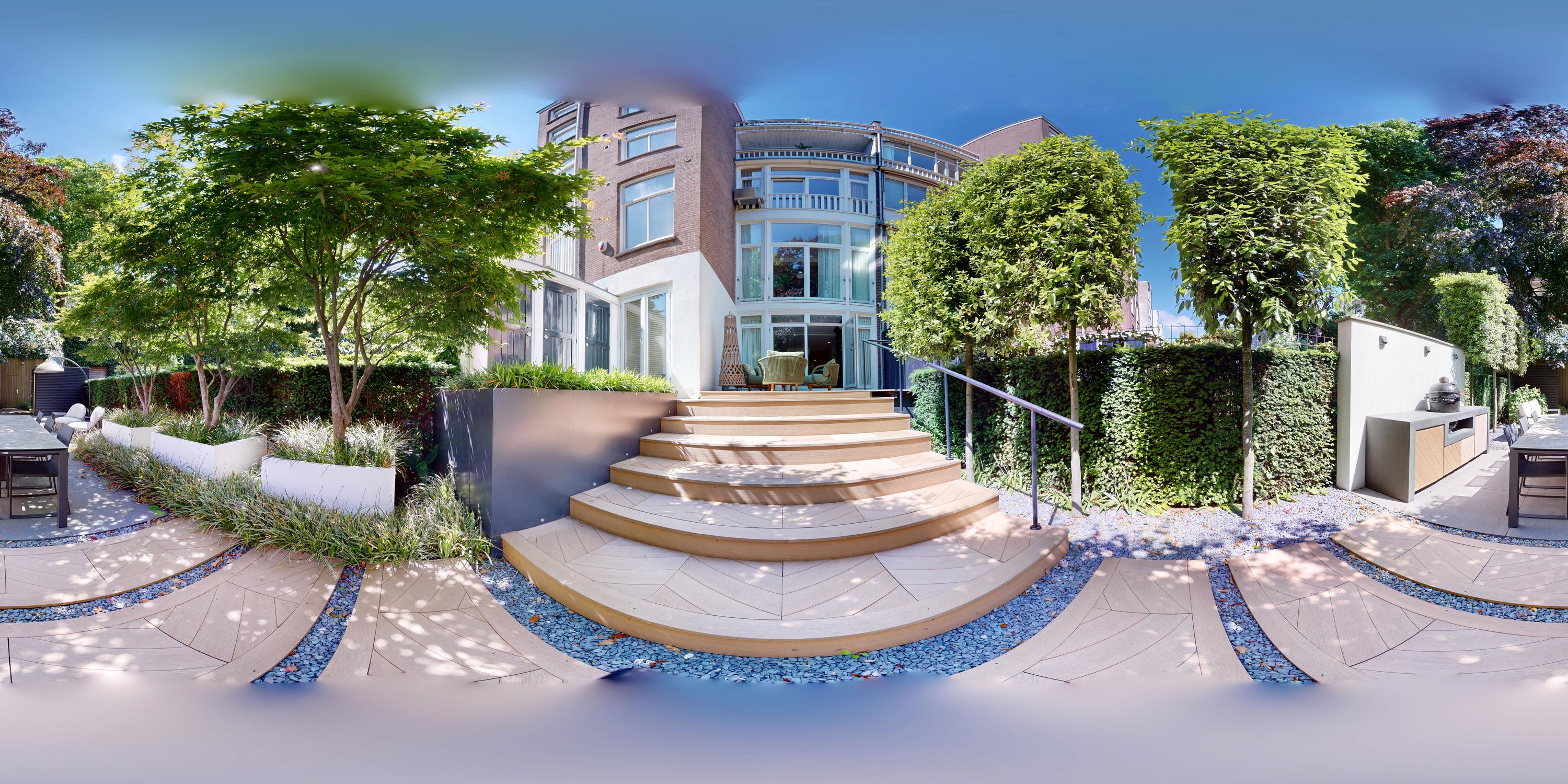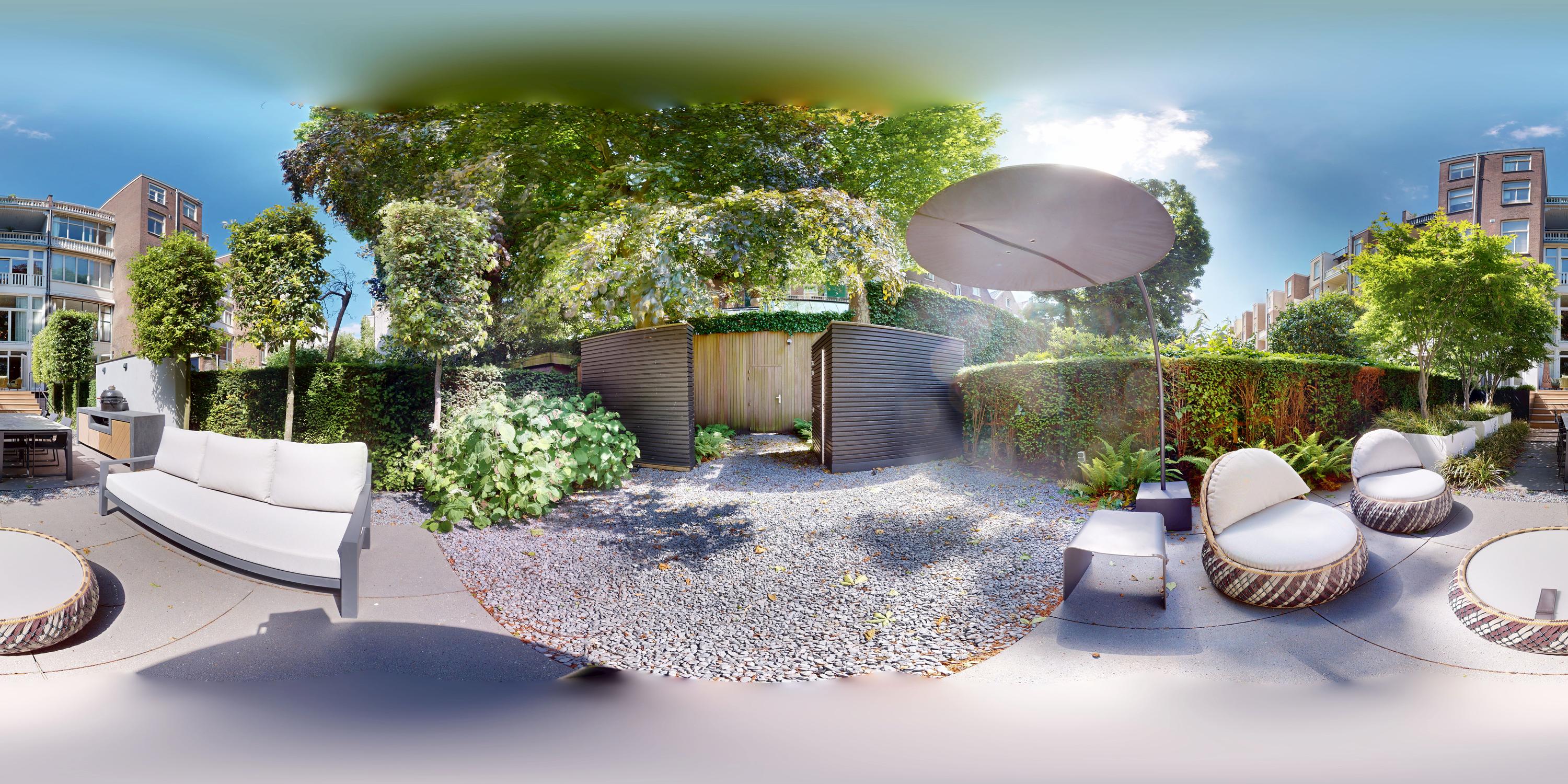 Designed by landscape architect Erik van Gelder, the garden includes a fully equipped outdoor kitchen, making it perfect for summer evenings. A detached storage shed offers additional functionality. This outdoor space is a peaceful and private retreat, ideal for enjoying long, sunny days.