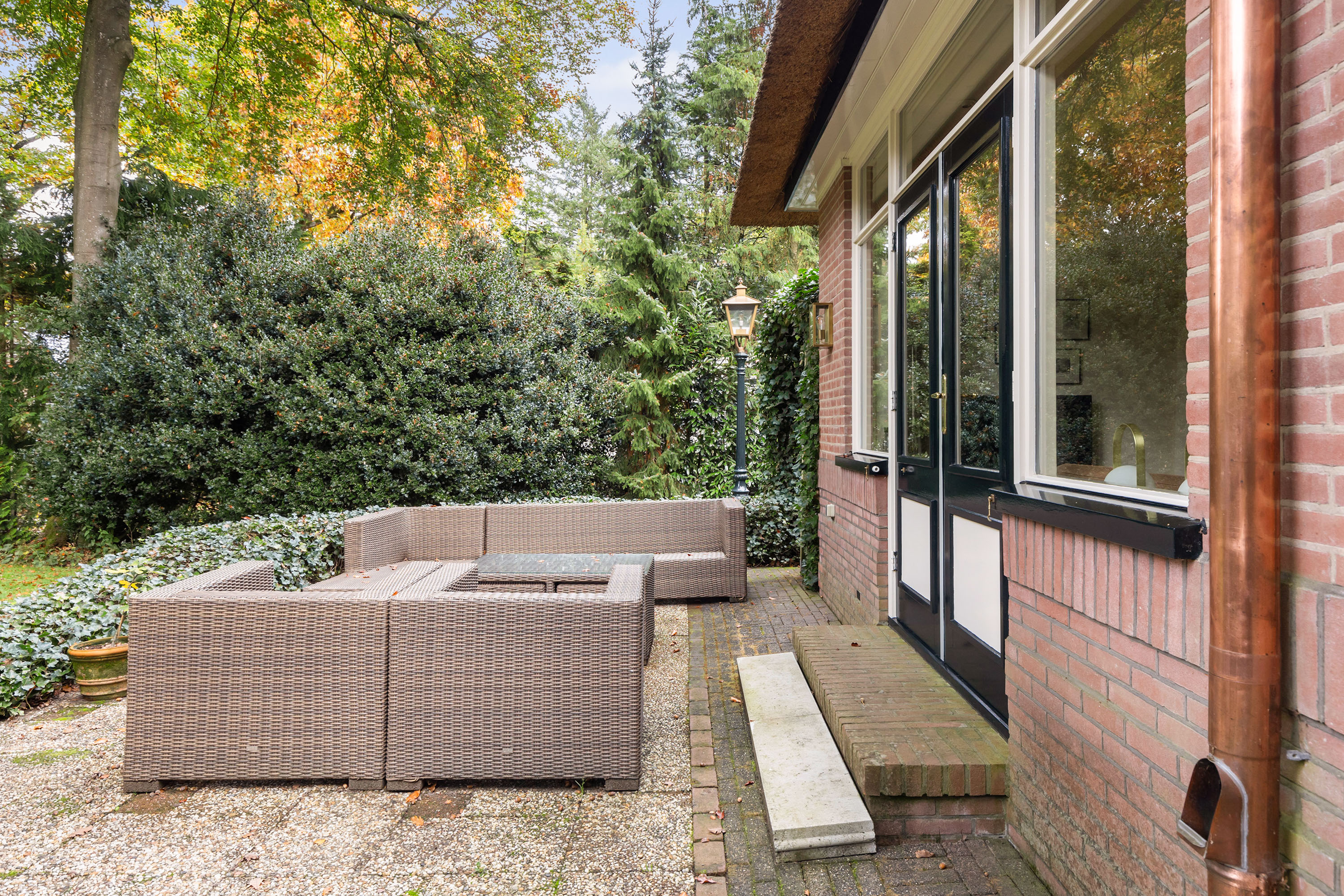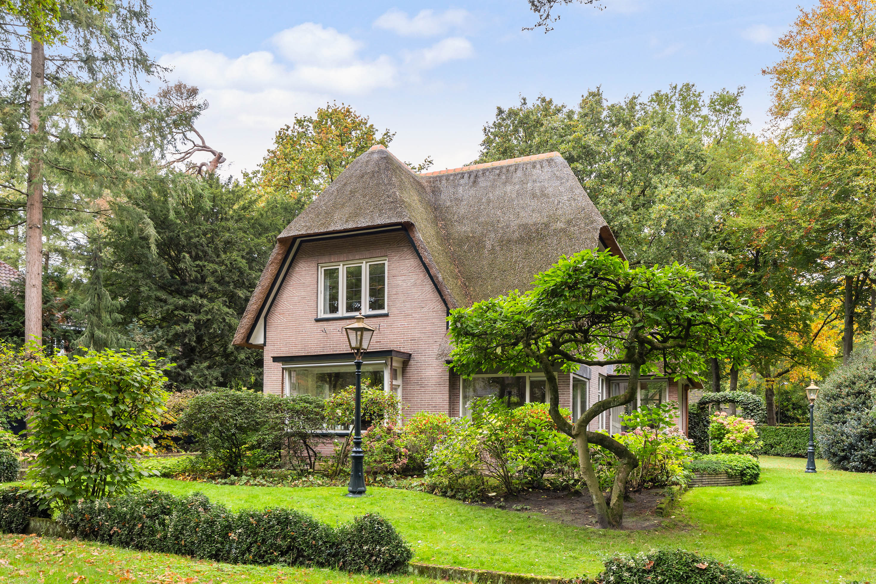 The villa exudes understated grandeur, enhanced by the distinctive windows with insulated glazing in wooden frames, the carefully restored wooden sills, and authentic architectural details that have been lovingly preserved. The garden lighting features original old lanterns from Paleis Het Loo – a unique and elegant accent that lends the property its special allure.