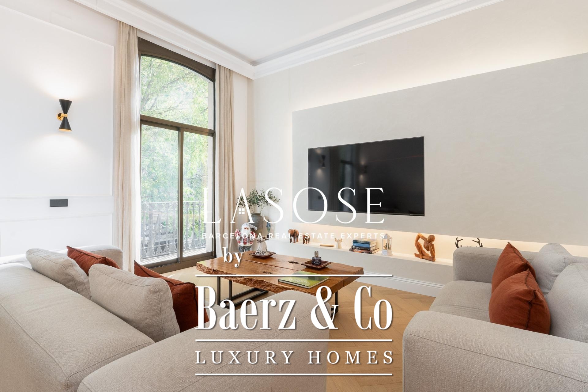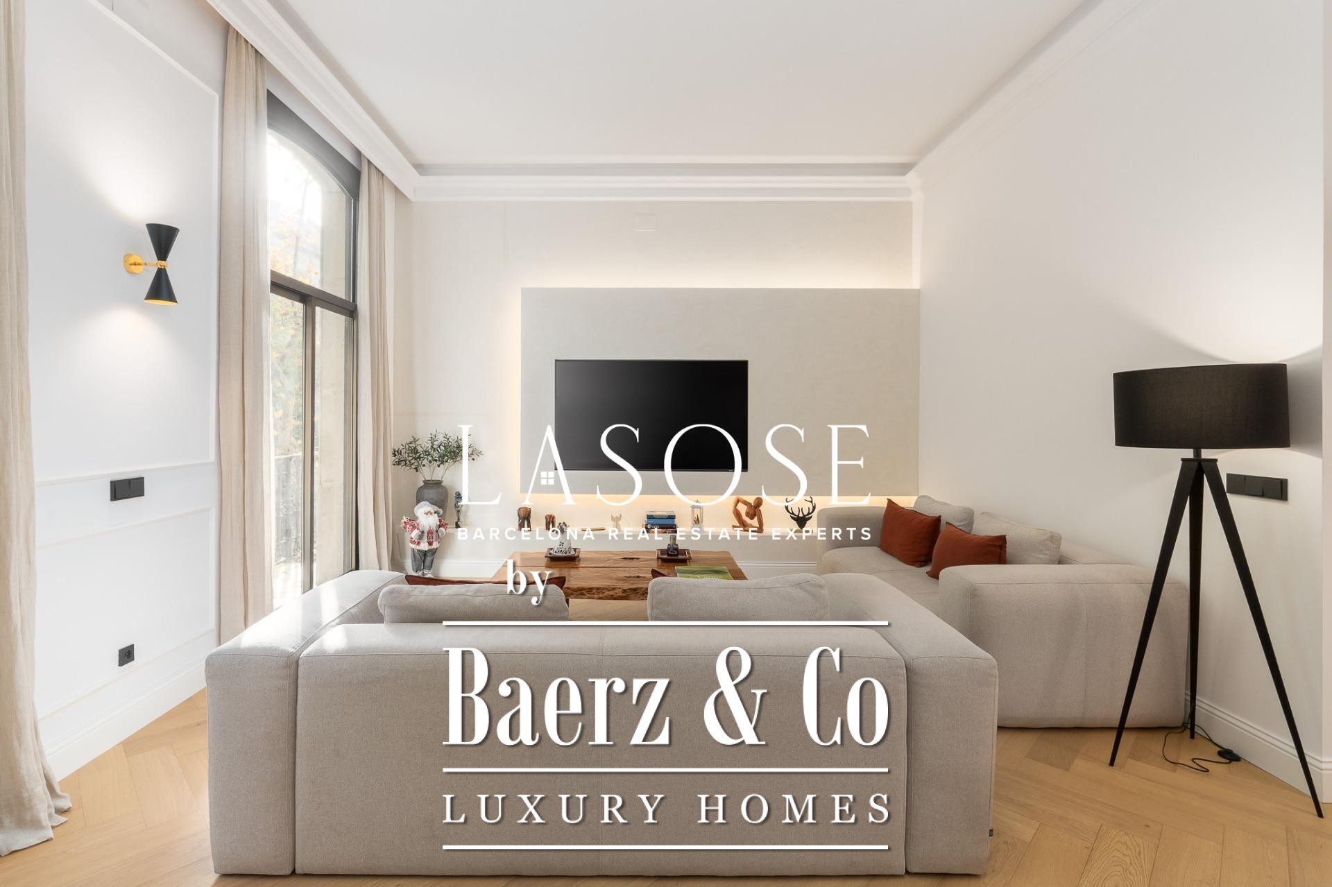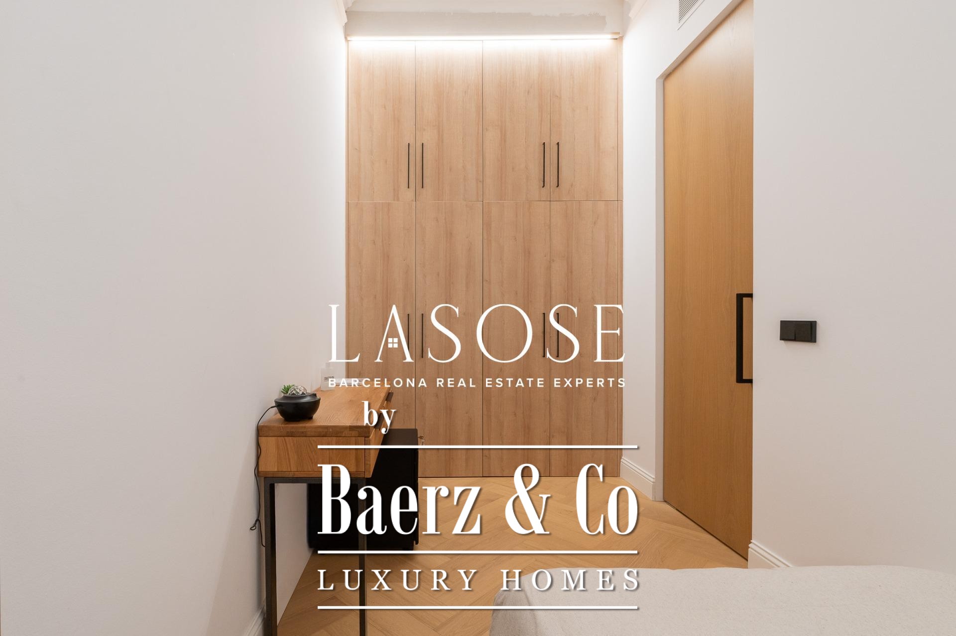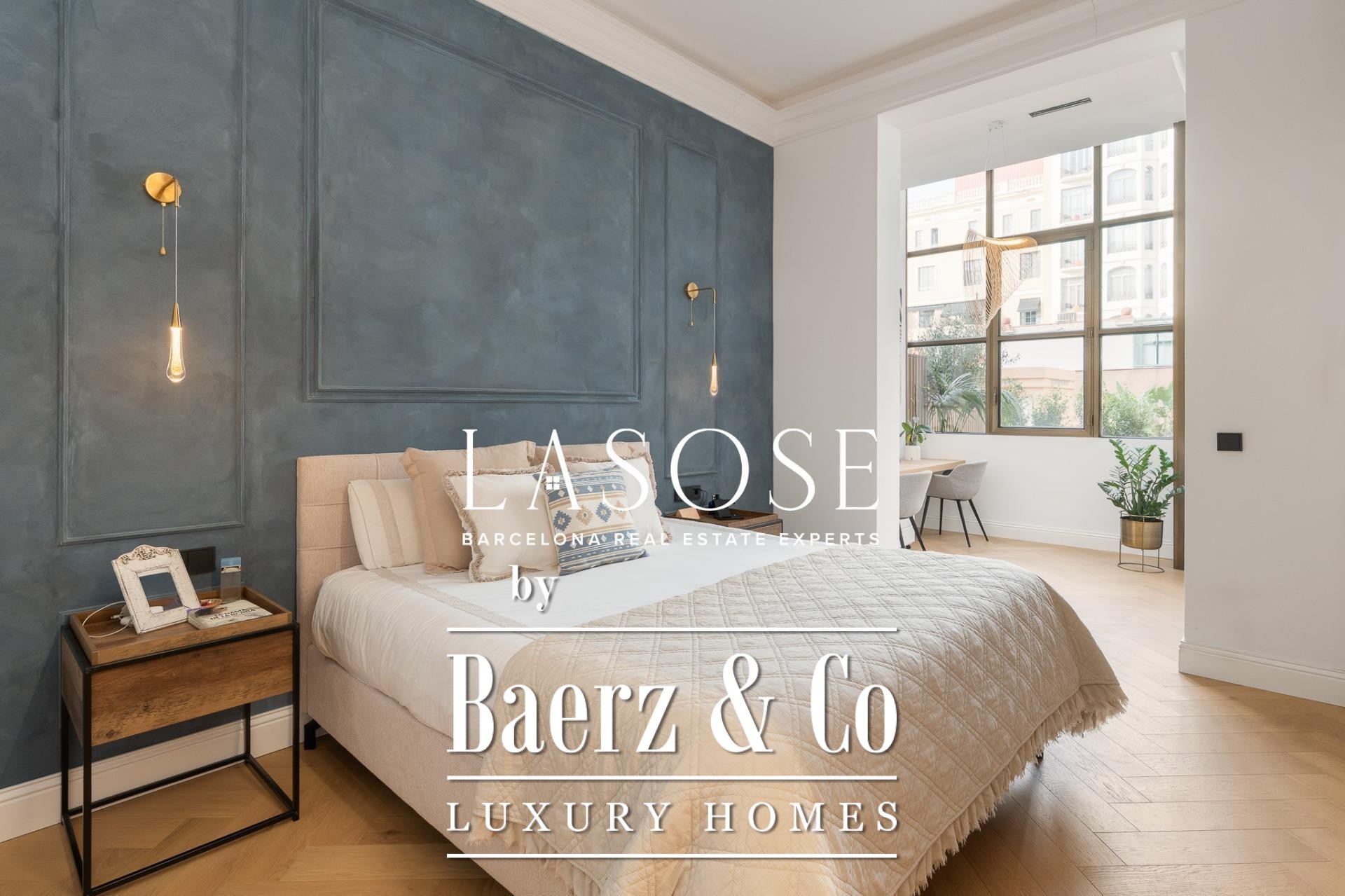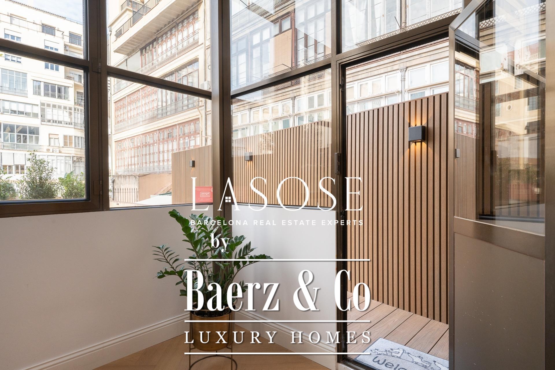 This Modernist apartment Barcelona Quadrat d'Or is a rare opportunity, offering 150 square meters of meticulously restored interior space and an extraordinary rear terrace spanning approximately 100 square meters. The residence, part of a protected building, was completely refurbished in 2024 with high-end finishes. Heritage details have been preserved, including natural oak exterior woodwork, tall interior doors, and unique fitted wardrobes, all contributing to a sense of enduring quality.