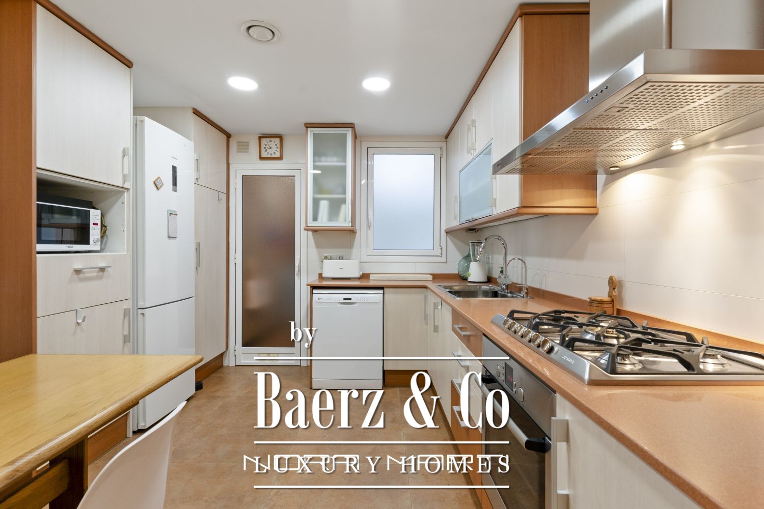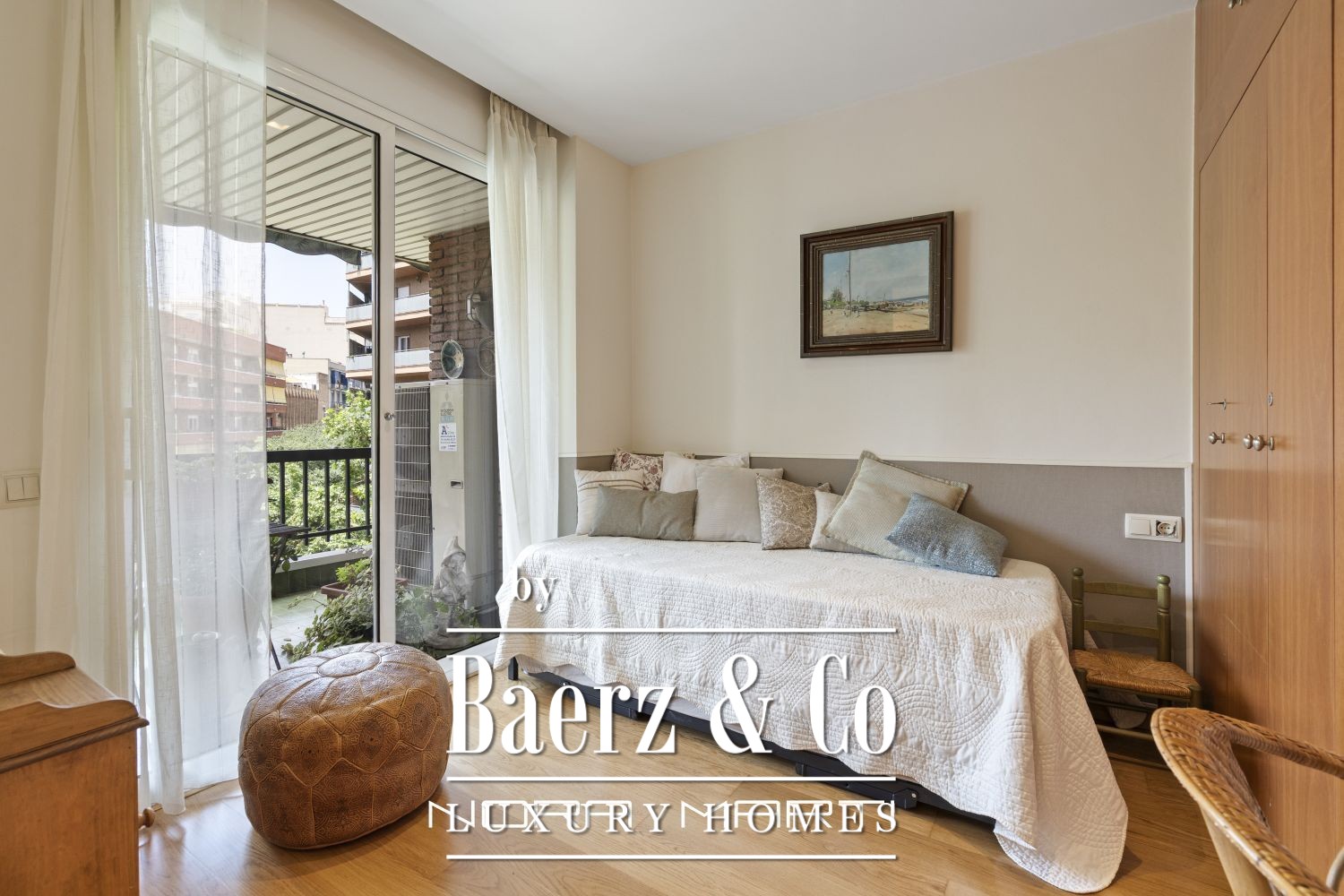 Apartment Barcelona is offered in the heart of l’Eixample Dreta, standing out for its coveted corner position and exceptional natural light. Recently renovated, this 127 m² residence balances comfort and understated style, creating a warmly inviting atmosphere. The layout is carefully considered, featuring three bedrooms and three bathrooms, allowing both space and privacy.