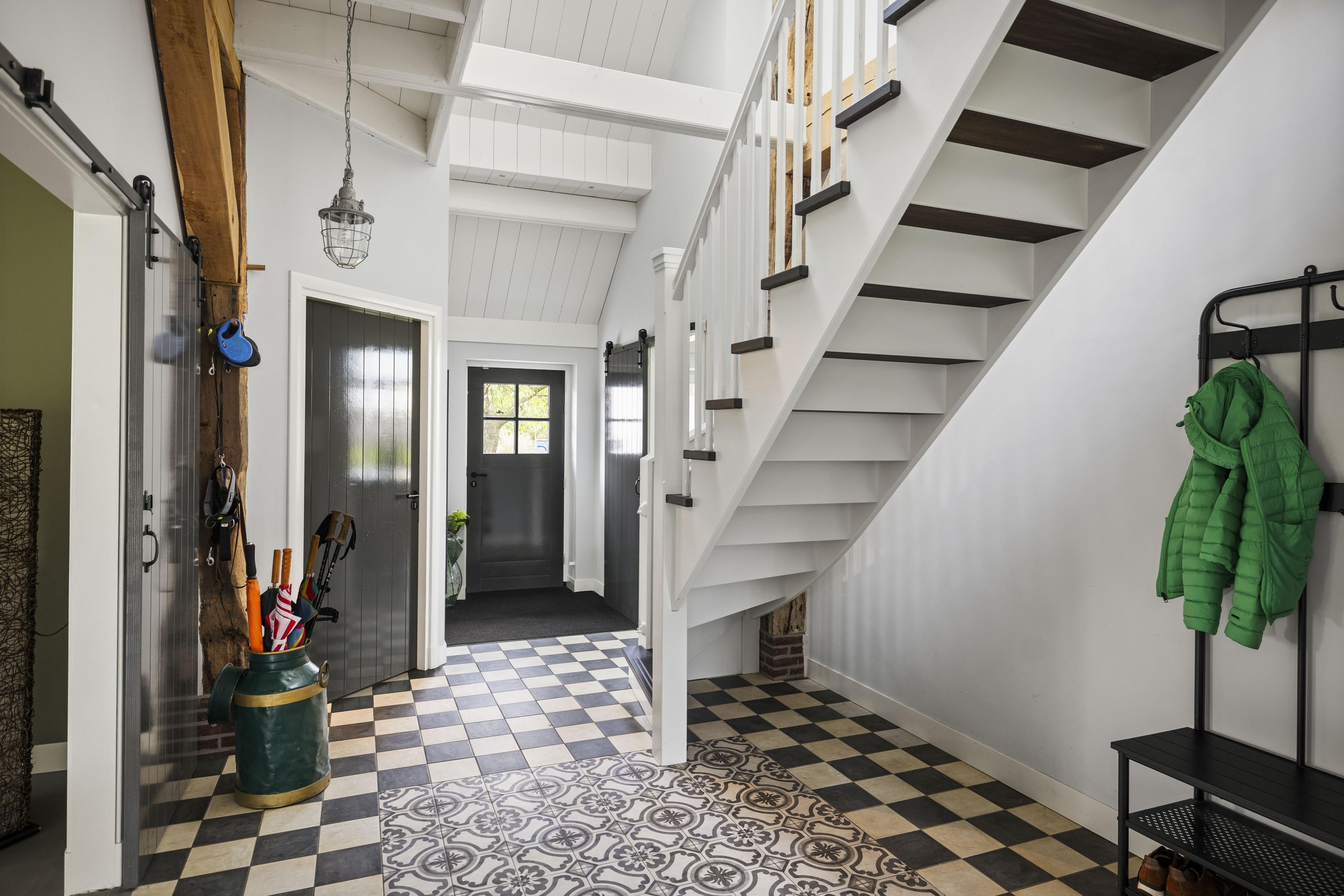This magnificent farmhouse took on its current form in 2016, when the farm, which was built in 1924, was completely renovated. The emphasis was on sustainability: the exterior was fully insulated with polystyrene blocks, the house was fitted with new HR+++ glass all around, a water-water heat pump was installed (which exchanges and extracts heat at a depth of 75 metres), the interior floor was fitted with a robust cast floor – ideal in combination with underfloor heating – and a total of 110 (no, this is not a typo) solar panels were installed on the roofs. Under the bonnet, this house is all state-of-the-art technical ingenuity. Even the colour palette – the exterior is whitewashed with grey woodwork and beaded edging – contributes to the energy-efficient character of the house, because while the white facades reflect sunlight, the grey absorbs heat. Not only does this house have zero energy consumption, it also generates a considerable amount of energy! A home battery is therefore an excellent addition here.