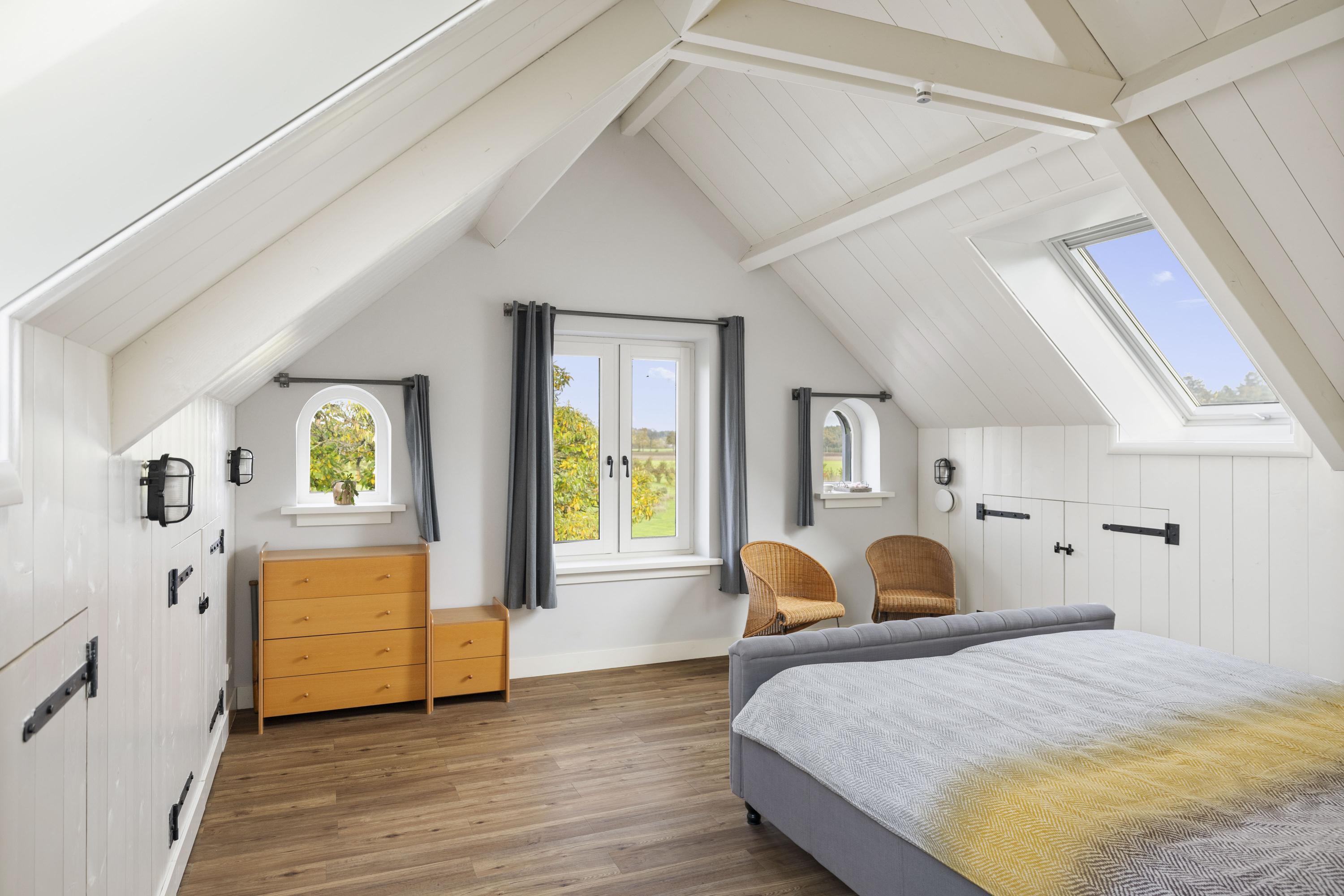 The kitchen is custom-made by Scheffer Keukens Zelhem and is nothing short of impressive; with a thick composite worktop, robust solid oak fronts and all modern built-in appliances – from induction hob to Quooker – it is a wonderful place to indulge your inner chef. The old fireplace still has a sturdy Nordic Fire wood-burning stove, which provides the kitchen with extra atmosphere and warmth.