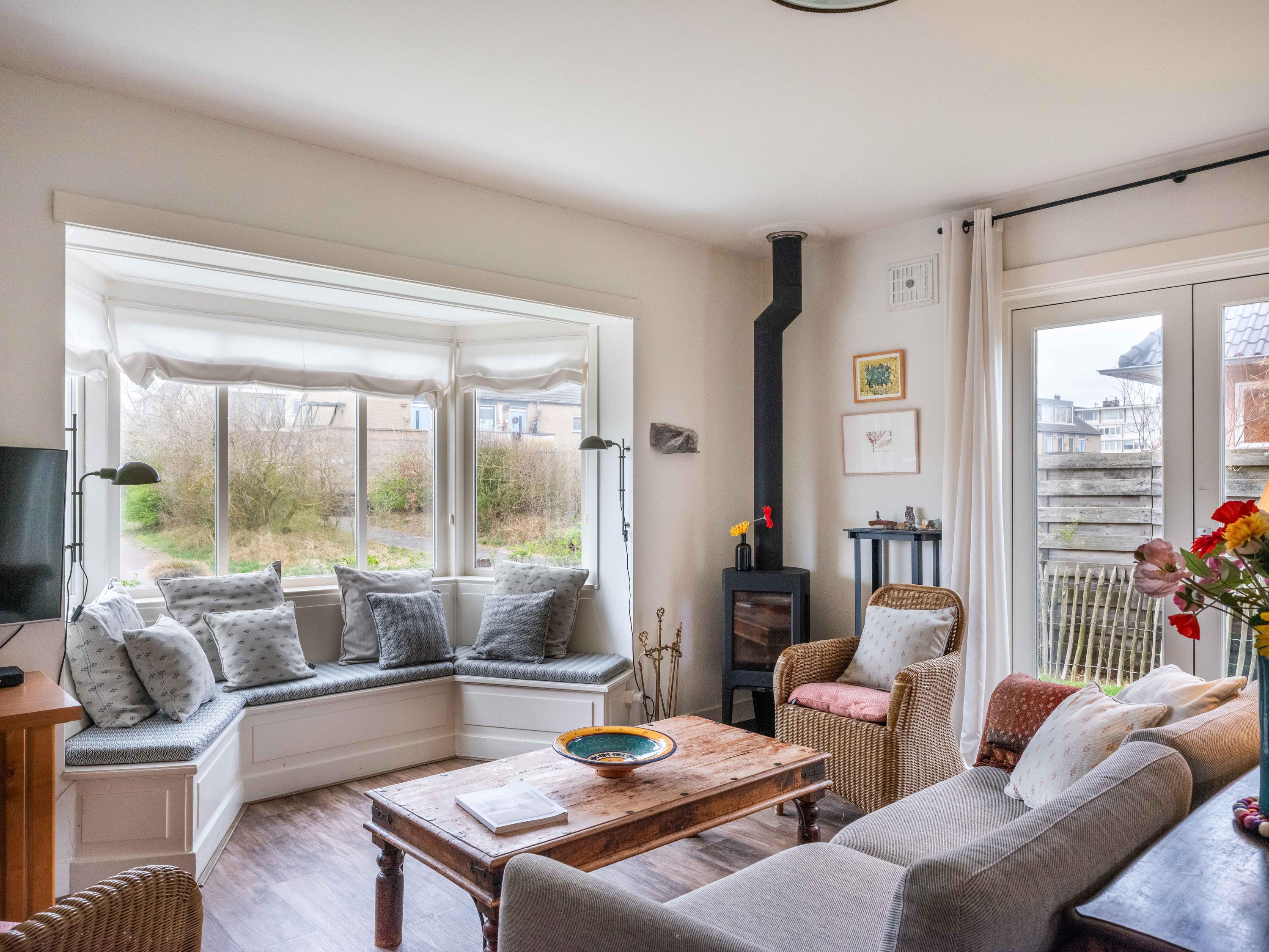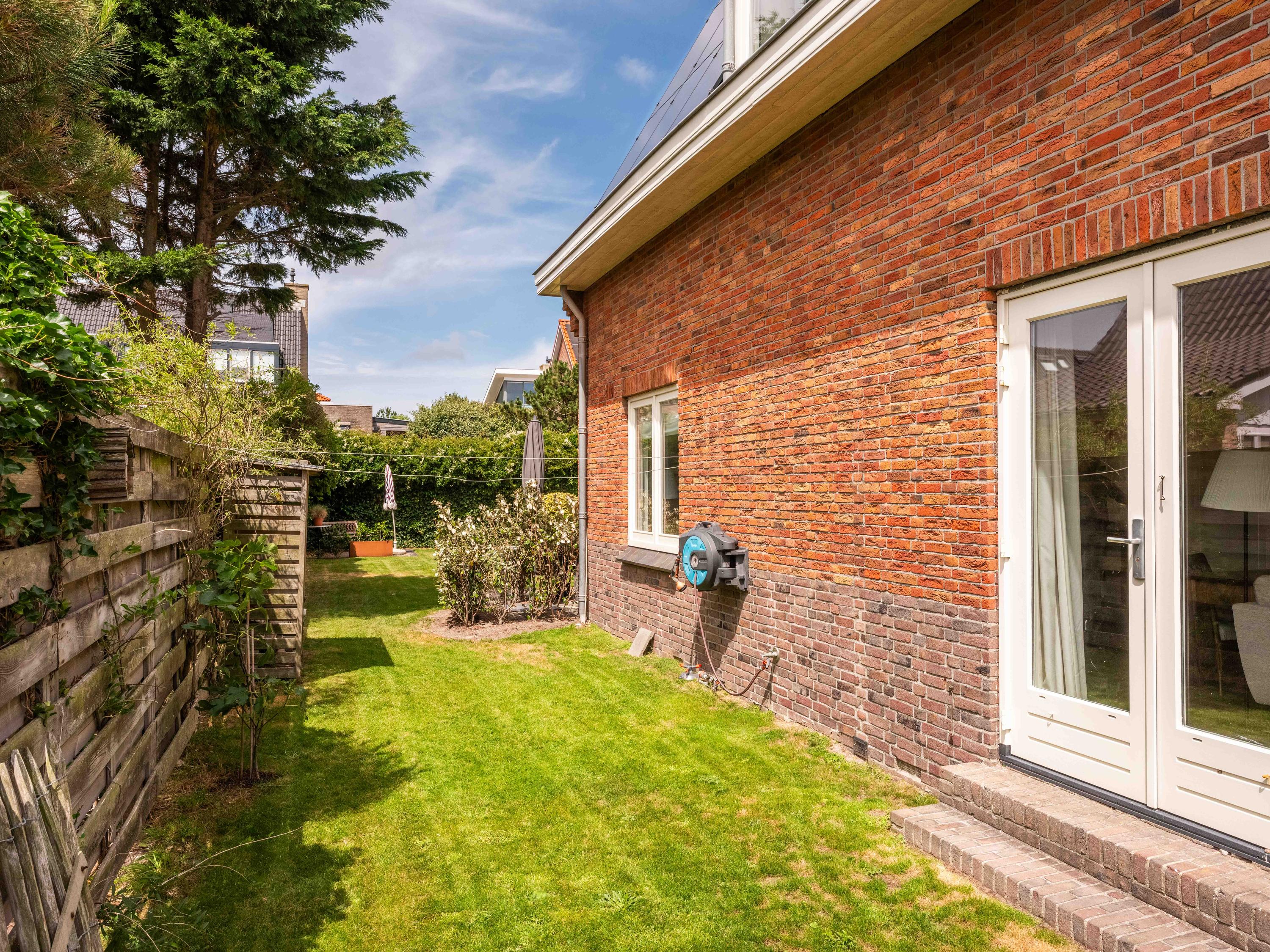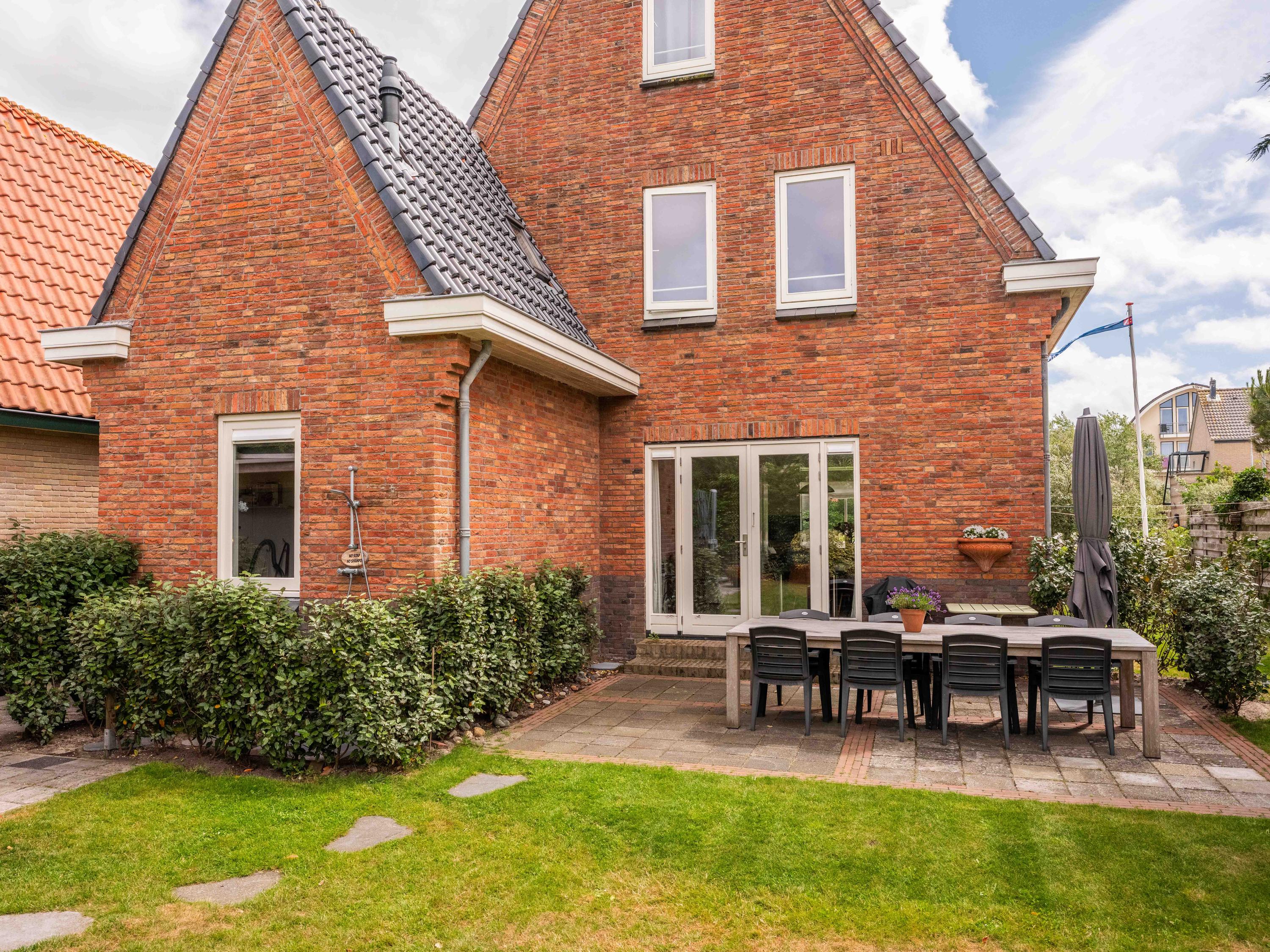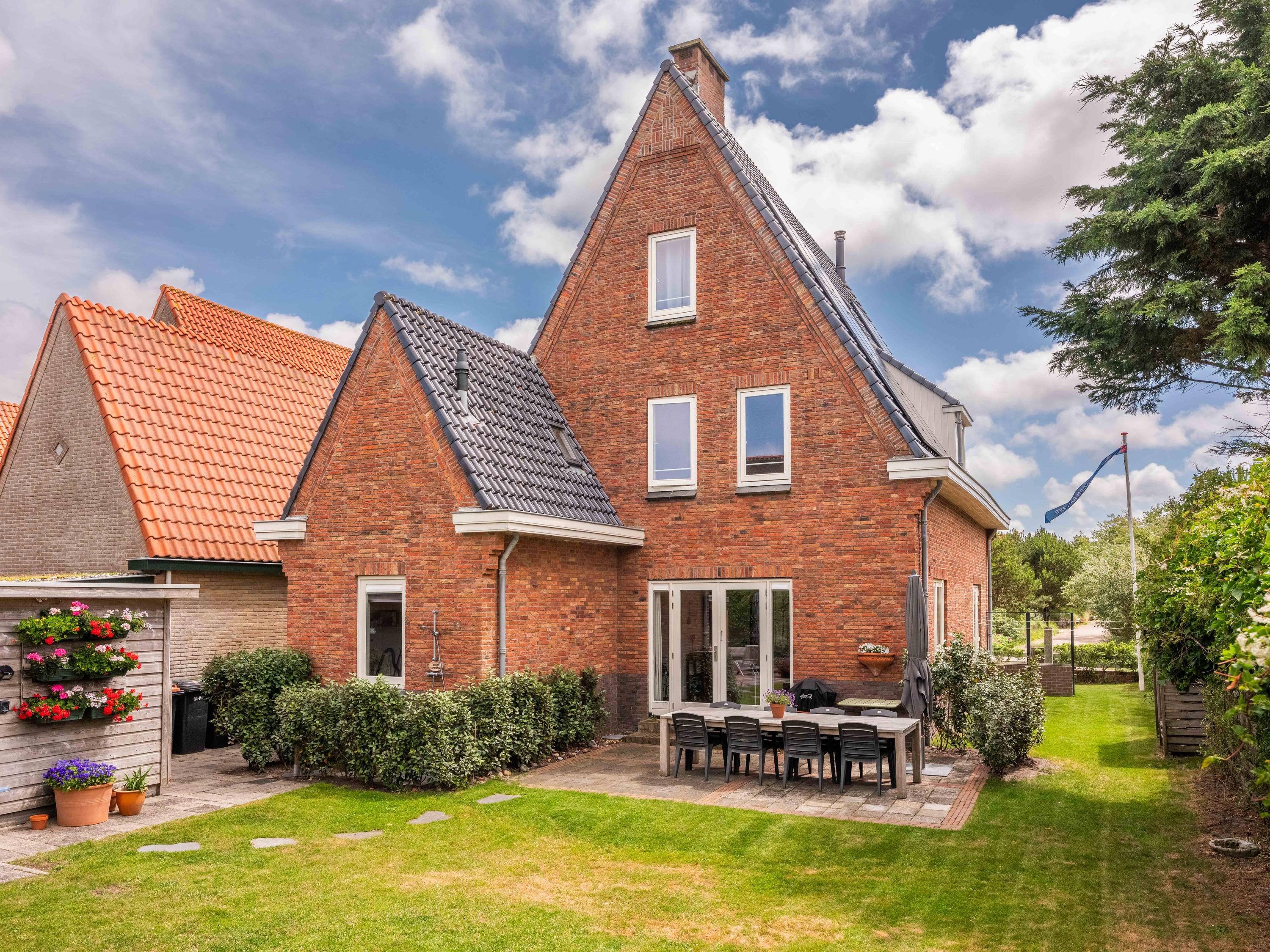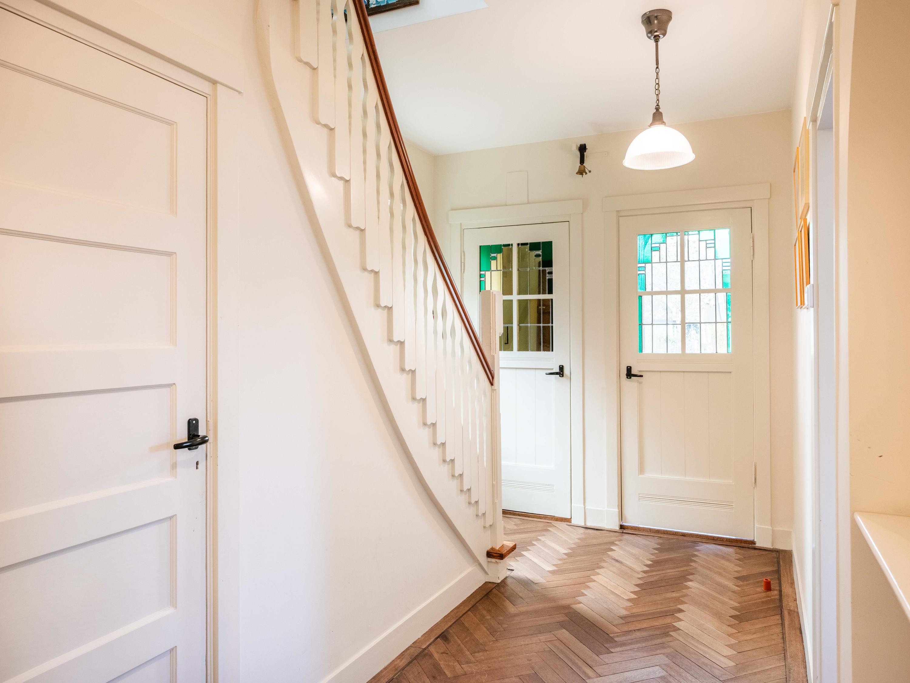 In quiet and green Bergen aan Zee stands this charming spacious 1930s house with original details such as stained-glass windows, beautiful brickwork and a ‘new Piet Zwart Bruynzeel’ kitchen. The house is surrounded by a well-kept garden with several terraces, has five bedrooms, three bathrooms and is equipped with 15 solar panels and a charging station for an electric car.