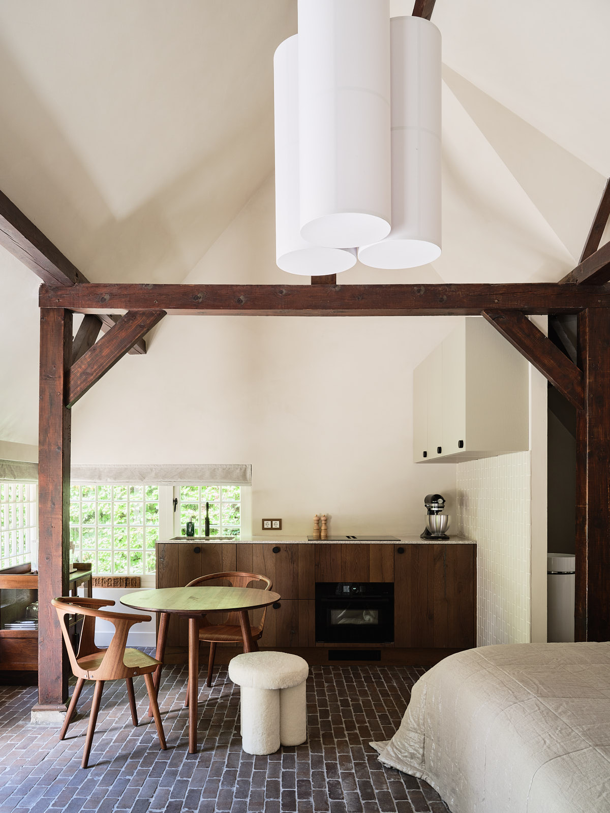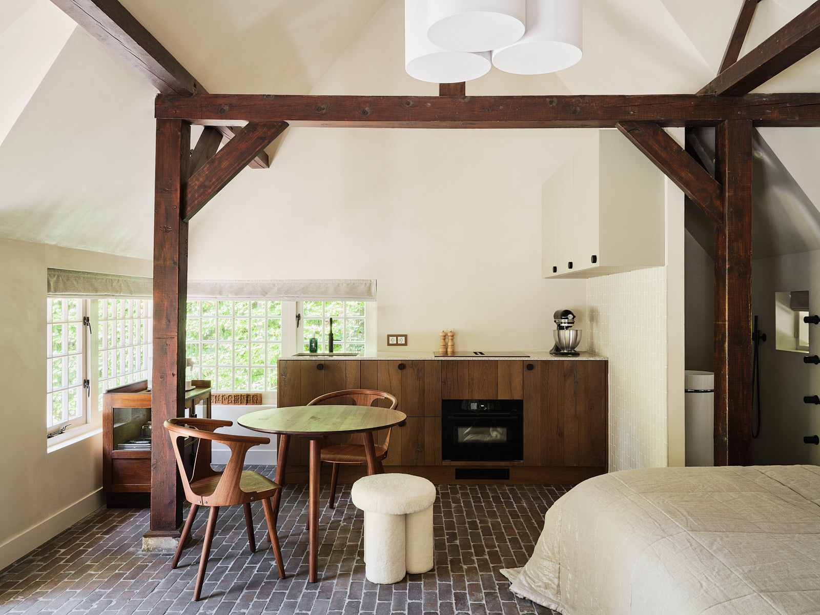 The former coach house has been converted into a luxurious, self-contained guest house with recreational facilities. This stylish studio features a living/sleeping area, a modern open-plan kitchen and a bathroom with a walk-in shower and separate toilet, and is also fitted with underfloor heating, a wood-burning stove and air conditioning, ensuring extra comfort.