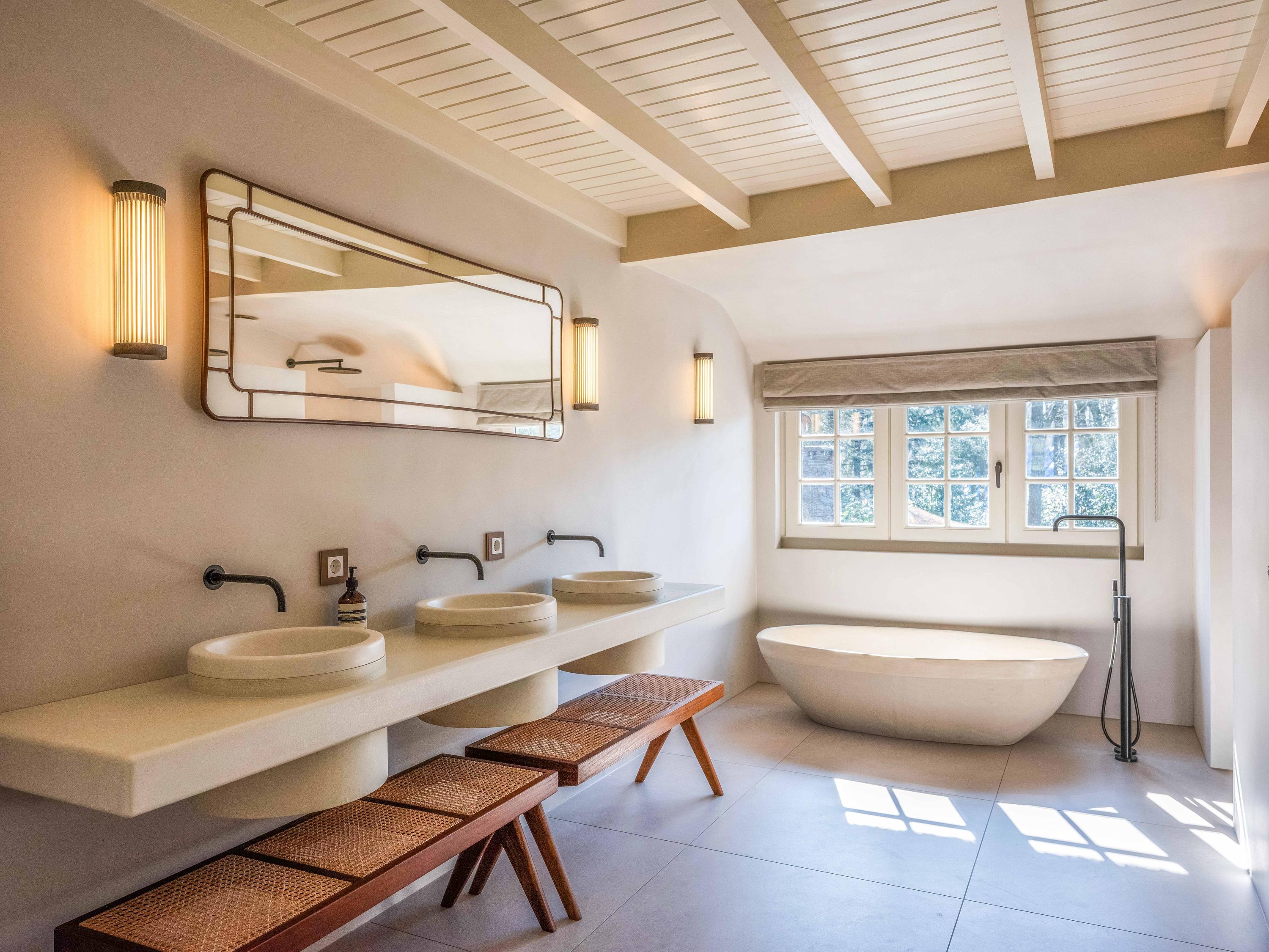 The living areas are divided into several comfortable seating areas. A cosy sitting room with a fireplace and a second, light-filled living room with French doors provide true luxury.
