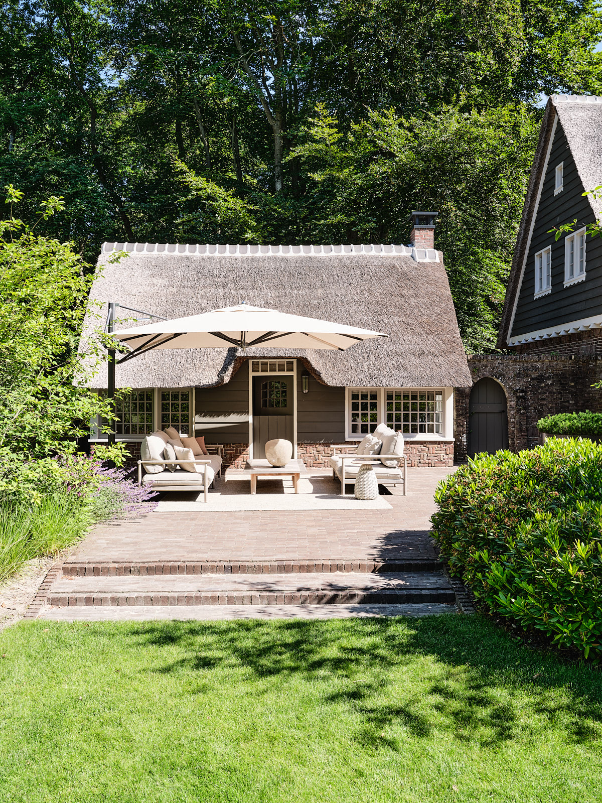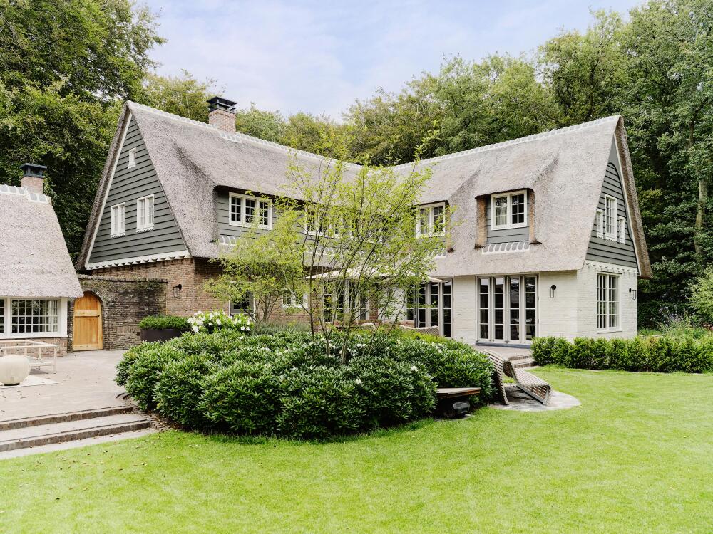 In one of Bergen’s most sought-after residential areas, directly opposite the famous Oude Hof and the local cinema, De Zwarte Schuur. The Berger Bos on the other side of Eeuwigelaan and a short distance from the town centre, lies this impressive thatched villa with a separate holiday home.