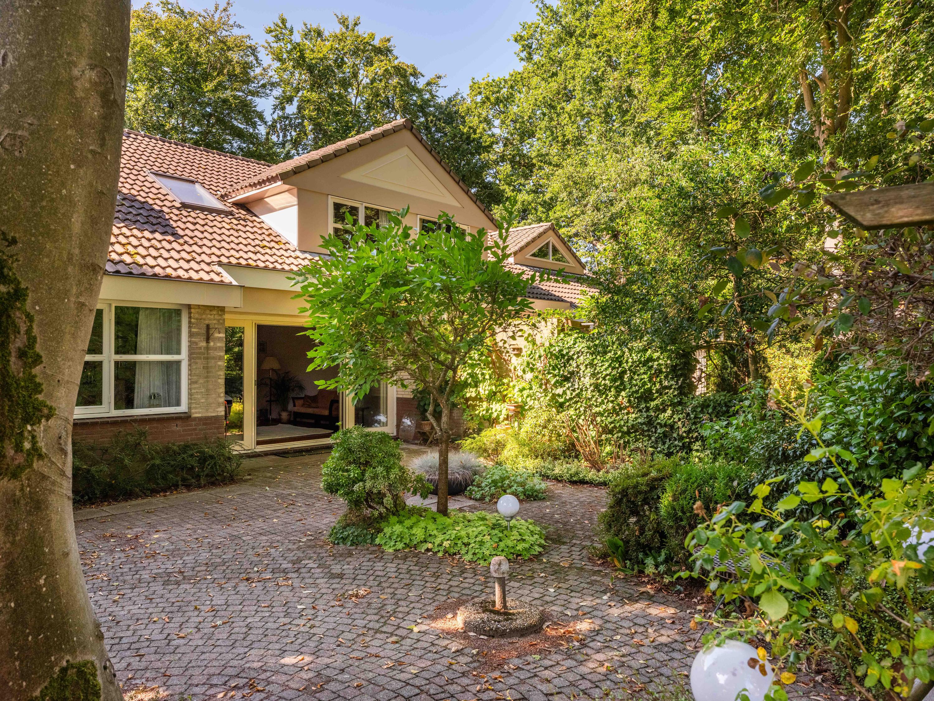 Through the large sliding doors, you step into the sunny, sheltered backyard, a wonderful place to enjoy peace and privacy, with a terrace and a view of the pond. The beautifully landscaped, sunny garden is an oasis of peace and privacy. The terrace borders the exclusive, communal park with ponds – a unique place where you can enjoy nature to the fullest. The park is exclusively accessible to local residents.