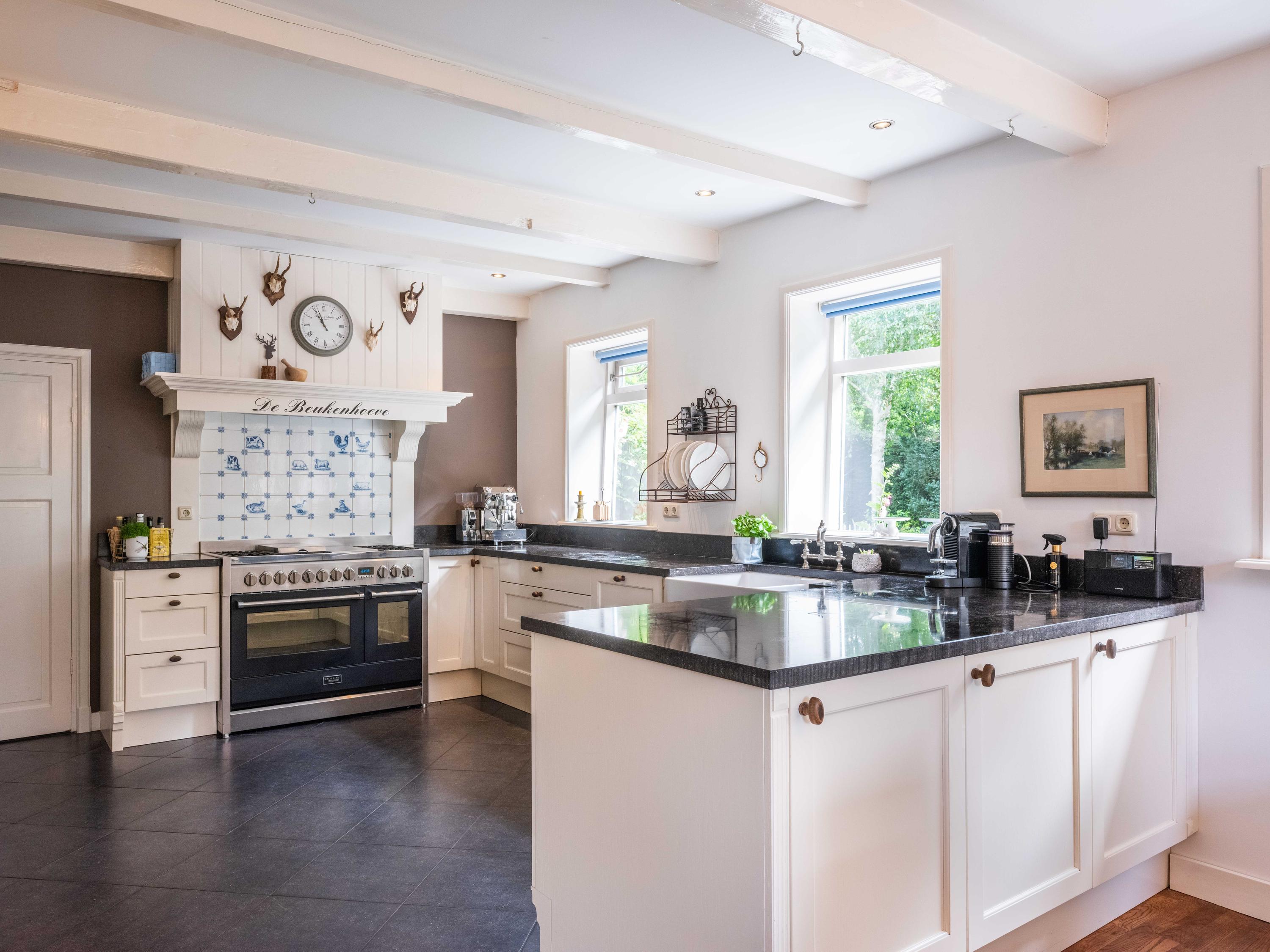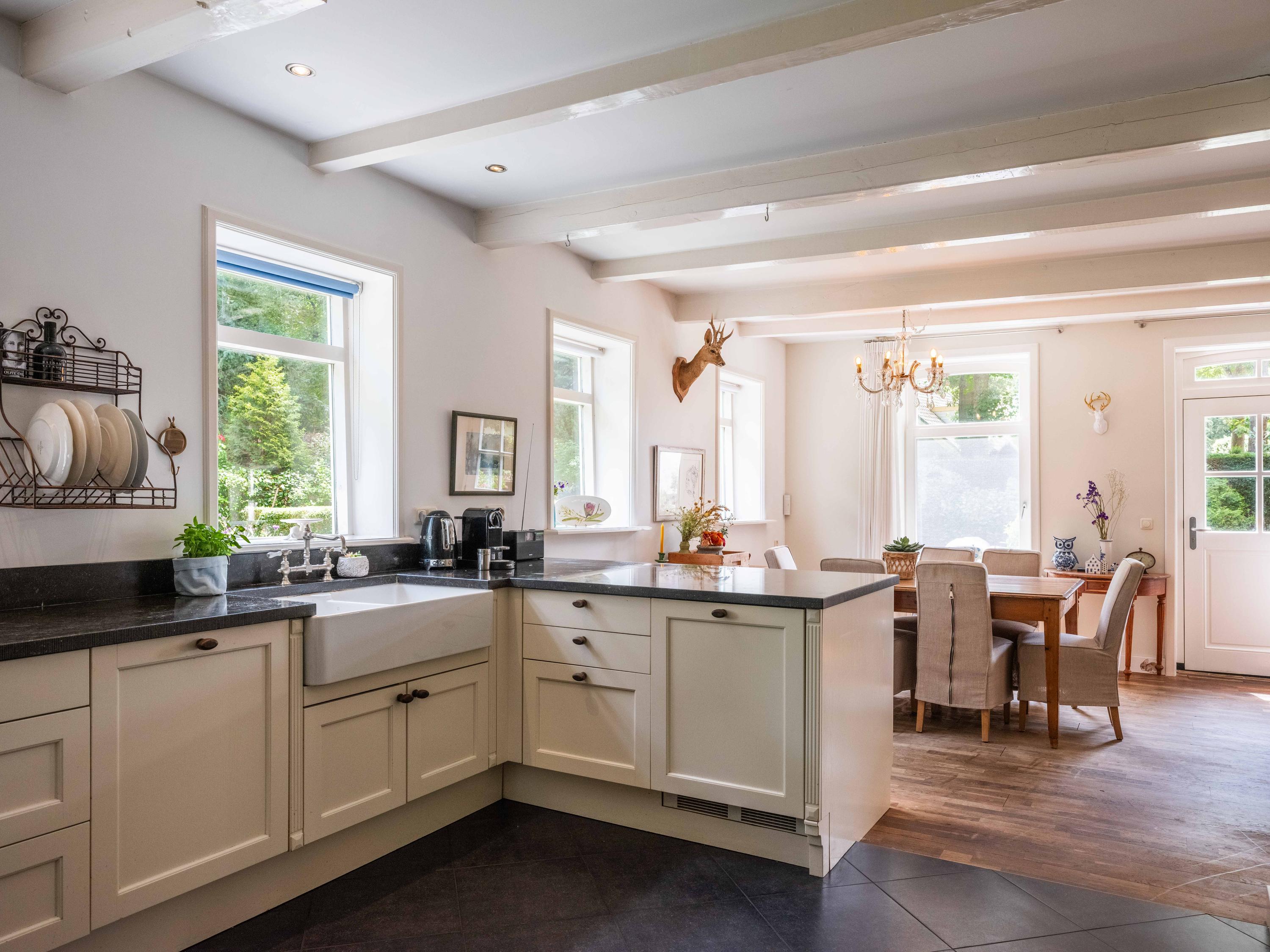 Beyond the main house, a holiday cottage stands behind the farmhouse, with a heated veranda, living area, open kitchen, three bedrooms and a private garden, creating opportunity for refined guest stays or rental income. Throughout, insulation, partial underfloor heating, natural ventilation and security reinforce daily comfort. A substantial wooden garage accommodates multiple cars, and sweeping lawns, terraces, and a greenhouse evoke a careful balance of form and rural tradition. This farmhouse Bergen Centre offers a rare equilibrium of history and present, privacy and village immediacy.