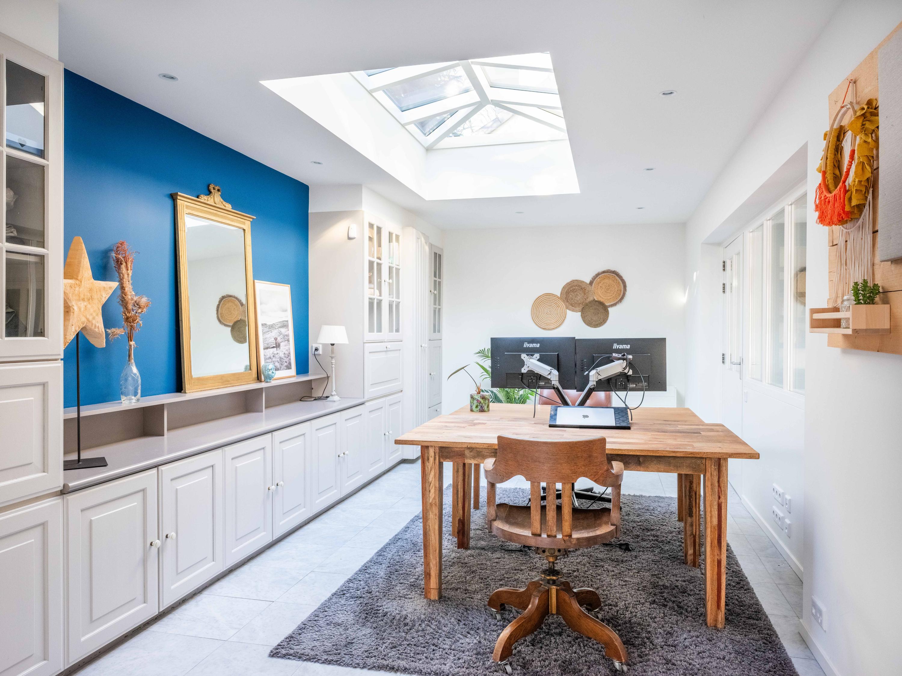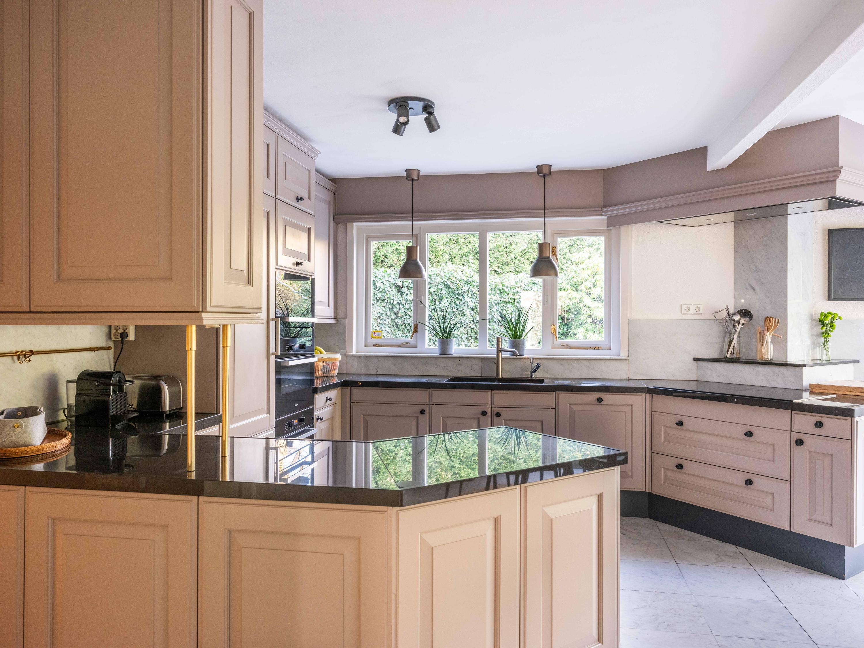 From the hall we enter the spacious kitchen, which is equipped with all kinds of appliances, such as a five-burner induction hob, quooker, steamer, two combi ovens etc. The cooking enthusiast can have a great time here.