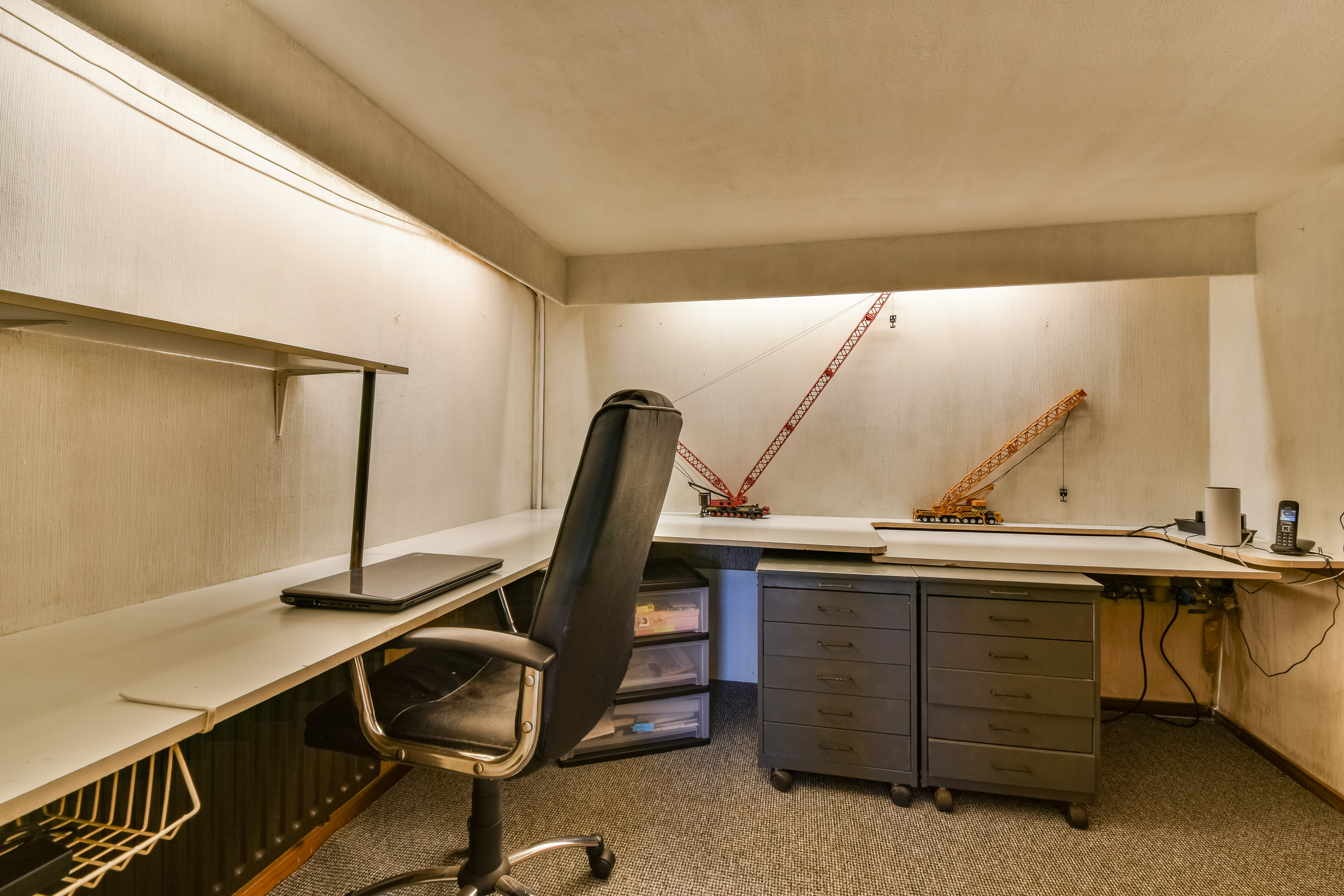 Large storage room with access to the garage. The office space is accessible from the storage room.