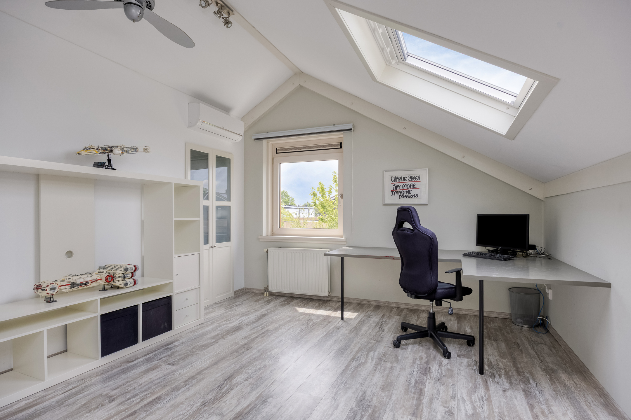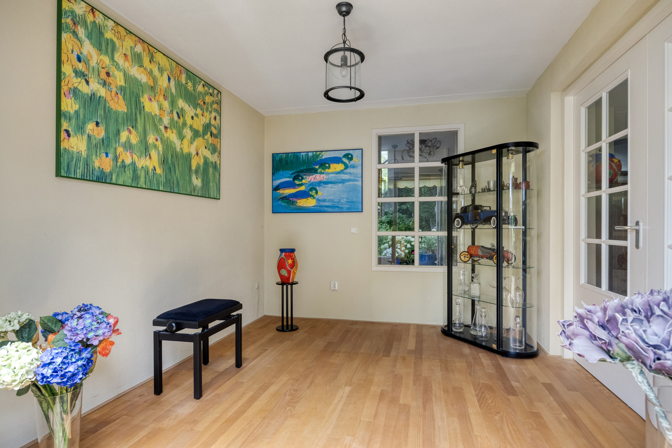 Sustainable features include 10 solar panels, a solar water heater, and high-grade insulation. Modern comforts such as air conditioning, mechanical ventilation, and a fiber-optic connection enhance daily rhythm. Each bedroom offers built-in storage, the main suite with a walk-in closet.