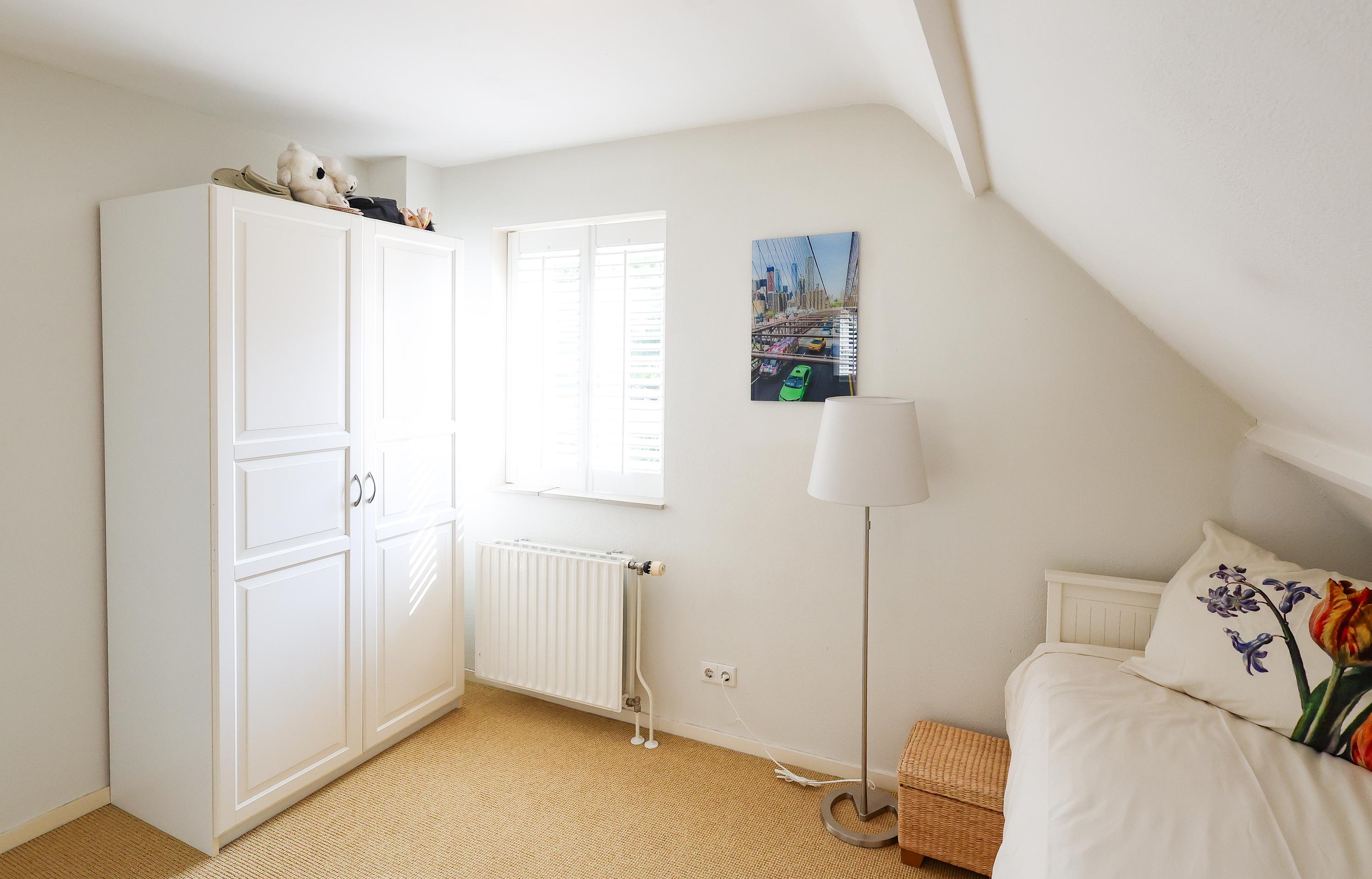 Upstairs, you’ll find a spacious master bedroom with vaulted ceiling, built-in wardrobes, and French doors opening onto the balcony. There are two additional bedrooms, one currently used as a walk-in closet, a study and a modern bathroom featuring underfloor heating, a walk-in shower/steam cabin, second toilet, and vanity unit with ample storage.