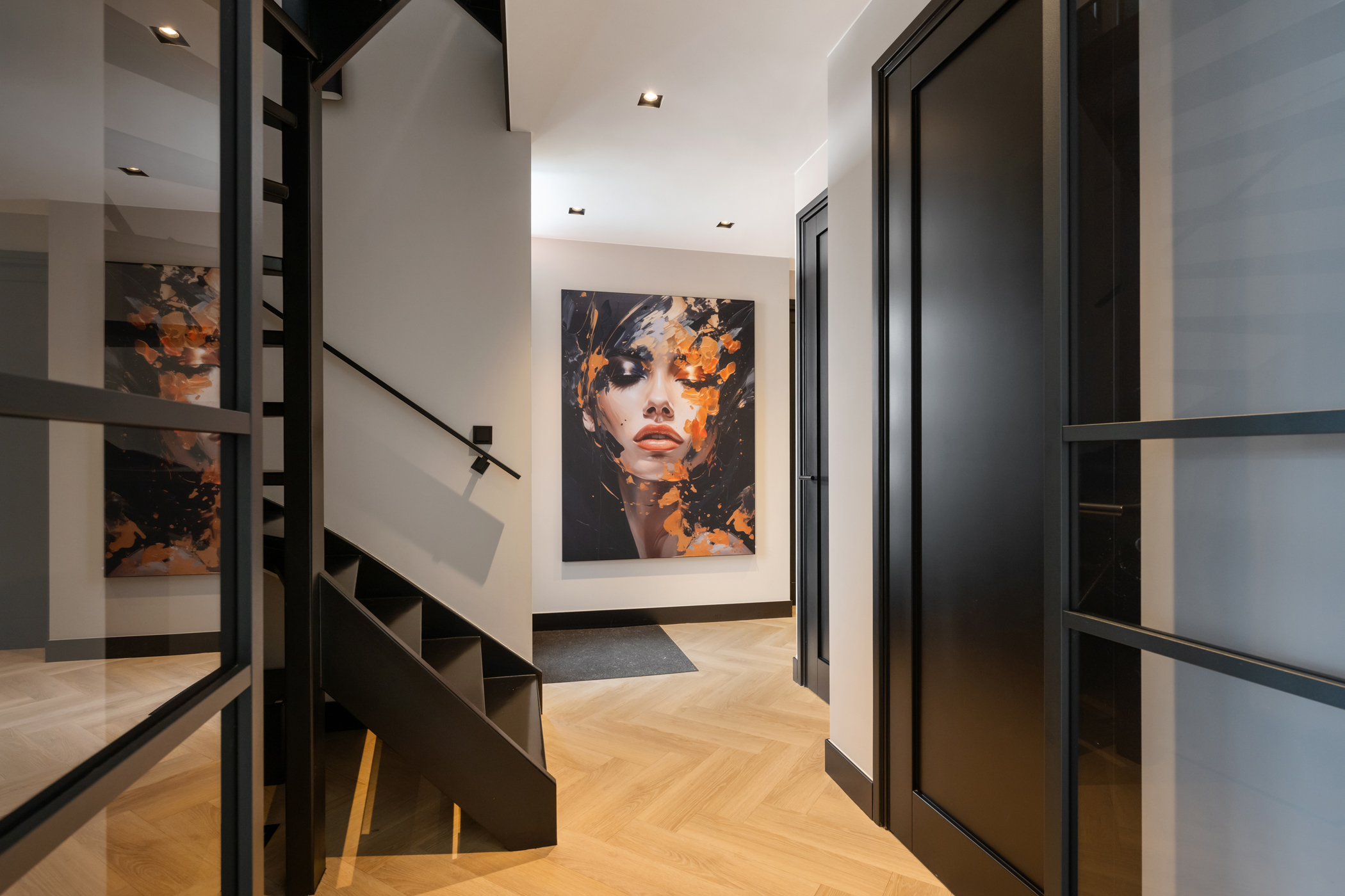 As soon as you enter the home, it immediately feels welcoming. The hallway provides access to the garage (with connections for a washing machine and dryer), the staircase to the first floor, the toilet, the meter cupboard and the living room.