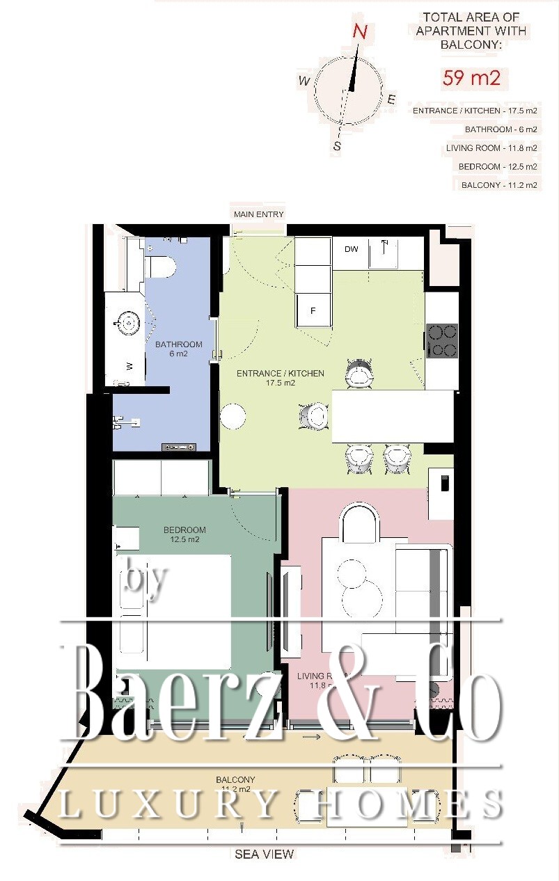 The project has 8 floors, while this apartment is on the 2nd floor. There will be a hotel within the project. It will have many additional amenities: an indoor and outdoor pool, a 2 level casino, a gym, a private beach, wellness and spa and retail spaces (a vibrant selection of restaurants, cafes, bars and boutique shops). There will also be an option of managed rental option of the apartment while the owner is away. Underground garage spots are available to be purchased. The building is connected by an asphalt road to the main road. The project will be finished in December 2026. Maintenance is 6,90€ per square meter a month.