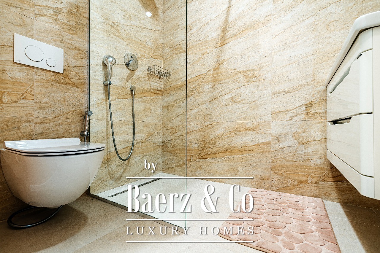 The building has 14 floors, while the apartment is on the 11th floor. It offers outstanding amenities, including an indoor and outdoor pool, three different saunas (Russian, Finnish, and Swedish), a gym, a spa center, a restaurant, and is part of a luxurious 5-star hotel. The building has reception area for tenants and guest management. It is connected by an asphalt road to the main road.