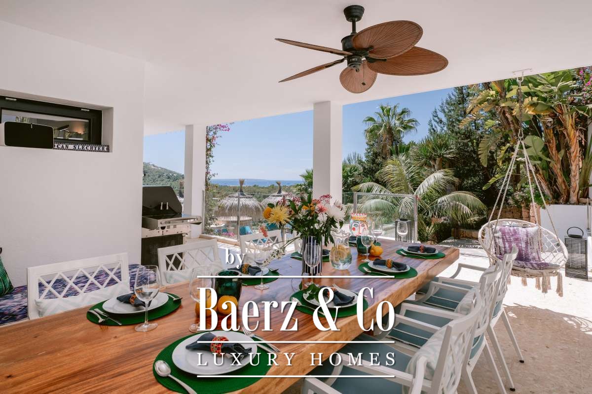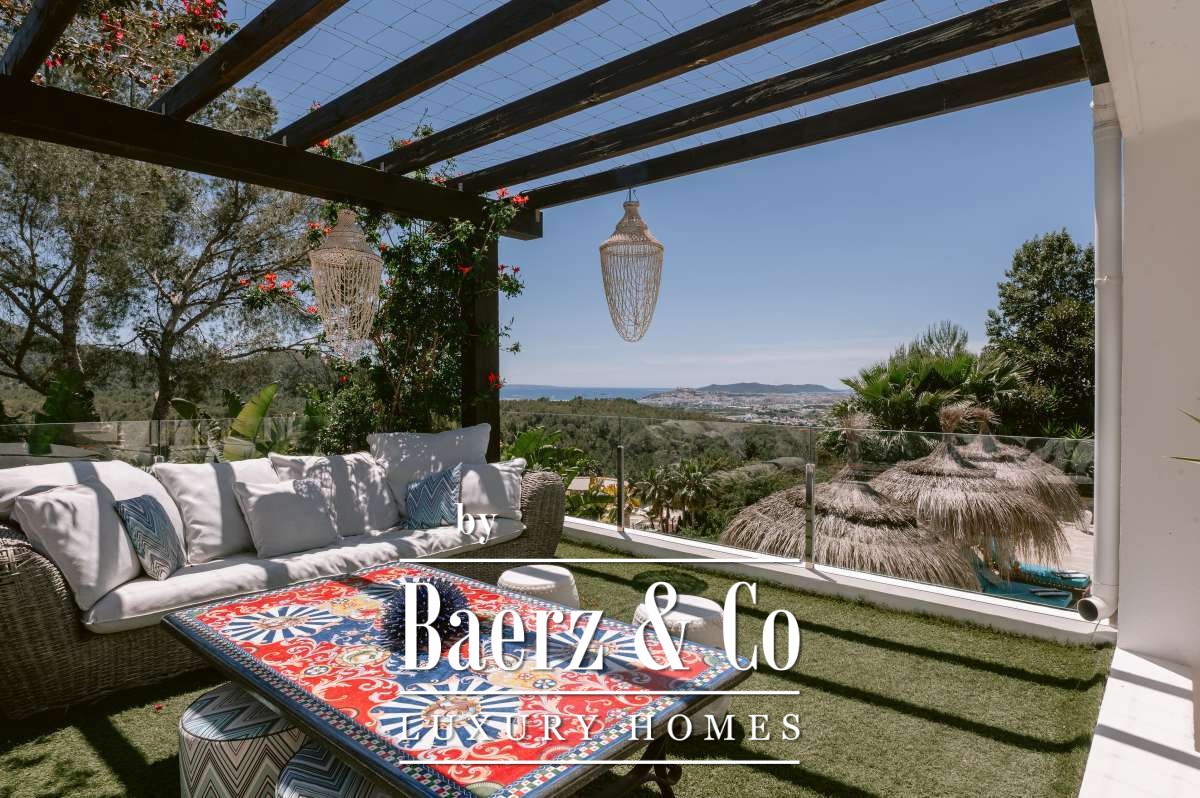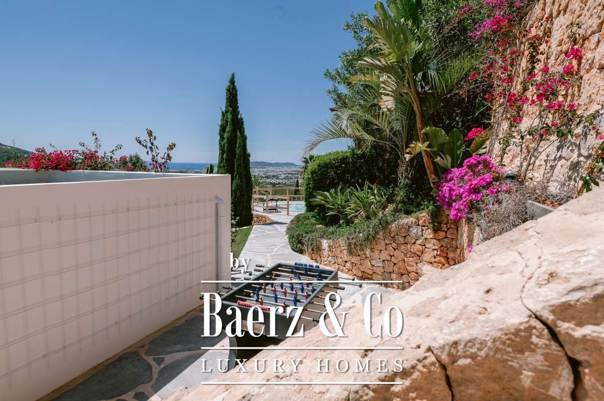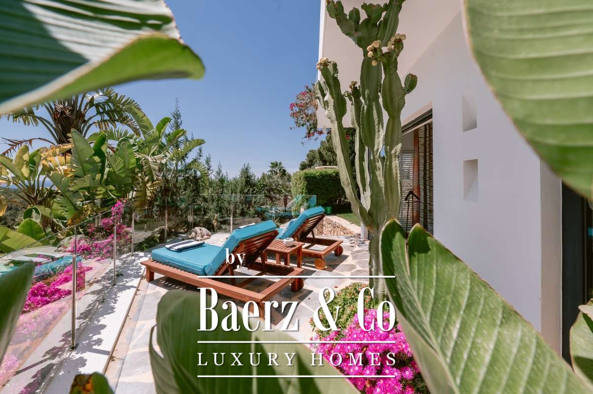 Villa Can Furnet with panoramic sea views offers an elevated perspective on Ibiza living, uniting privacy with immediate proximity to Ibiza Town. Positioned in one of the island's most exclusive gated communities, this 471 m² villa is set on a 2,313 m² plot, ensuring serenity while just 10 minutes from the pulse of Marina Botafoch and the historic skyline of Dalt Vila.