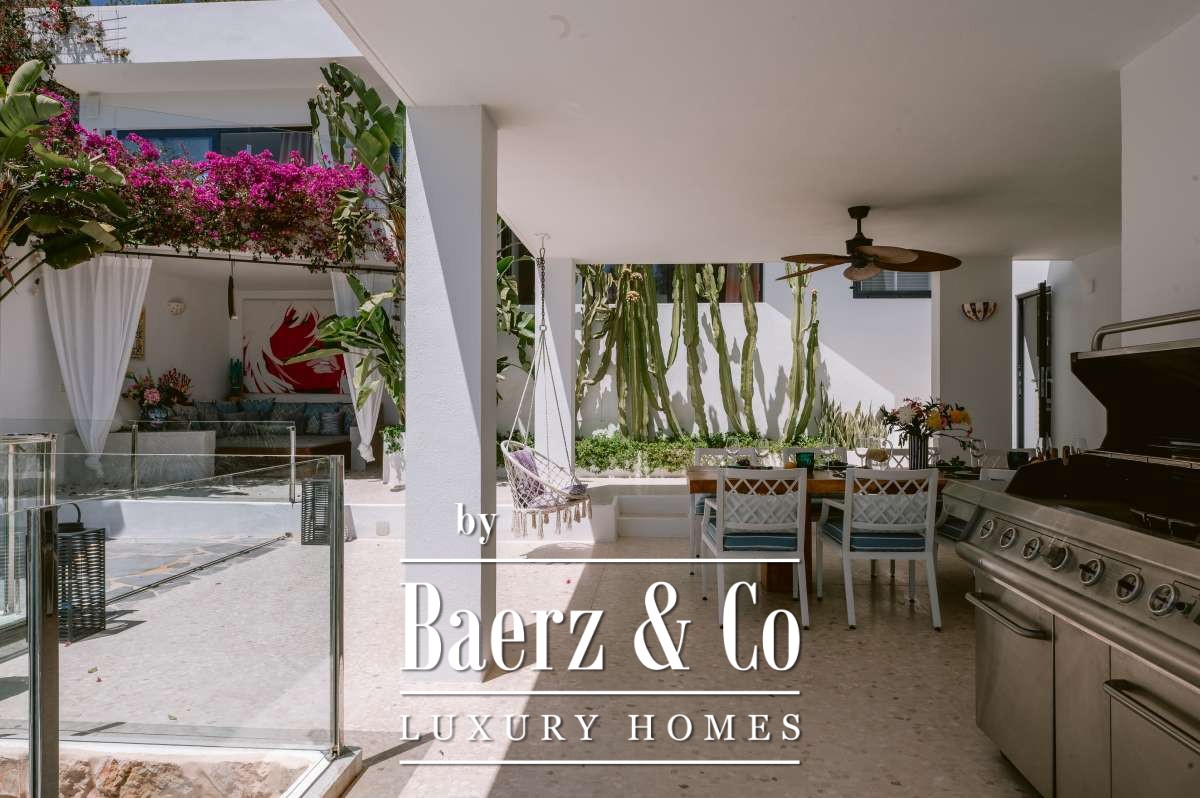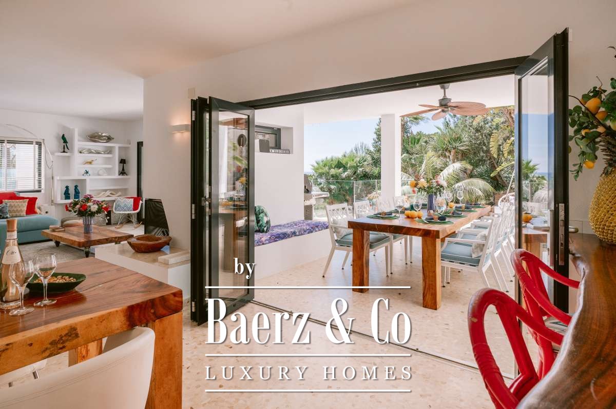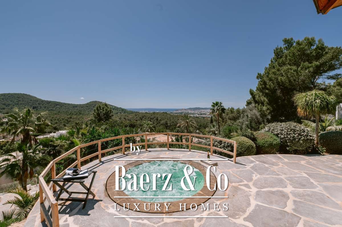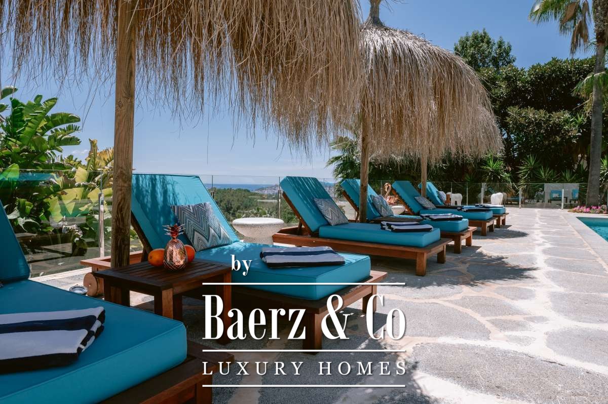Villa Can Furnet with panoramic sea views offers an elevated perspective on Ibiza living, uniting privacy with immediate proximity to Ibiza Town. Positioned in one of the island's most exclusive gated communities, this 471 m² villa is set on a 2,313 m² plot, ensuring serenity while just 10 minutes from the pulse of Marina Botafoch and the historic skyline of Dalt Vila.