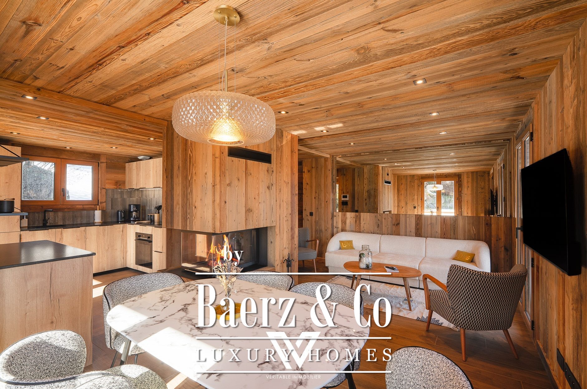 Chalet Combloux facing Mont Blanc is an exceptional residence reimagined with meticulous attention to detail and environmental responsibility. Renovated throughout using high-quality eco-friendly materials, the 147 m² chalet blends refined features with a palpable warmth, set on a plot of 785 m² in this renowned alpine setting.