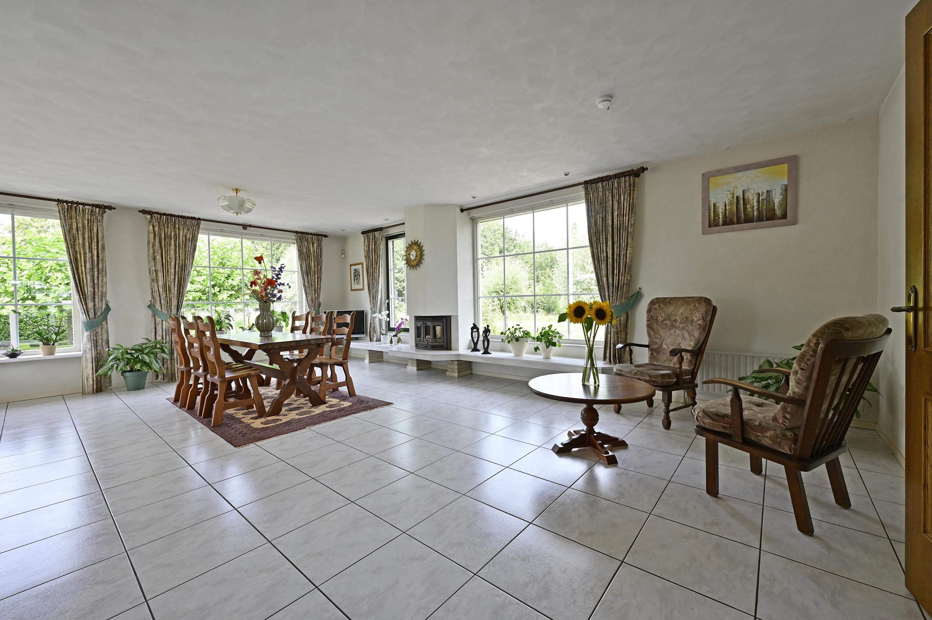 The beautifully landscaped garden surrounding the villa is a true haven for nature lovers and outdoor enthusiasts. The front garden is elegantly arranged with gravel and mature planting, lending a calm, refined appearance in harmony with the home’s charm.