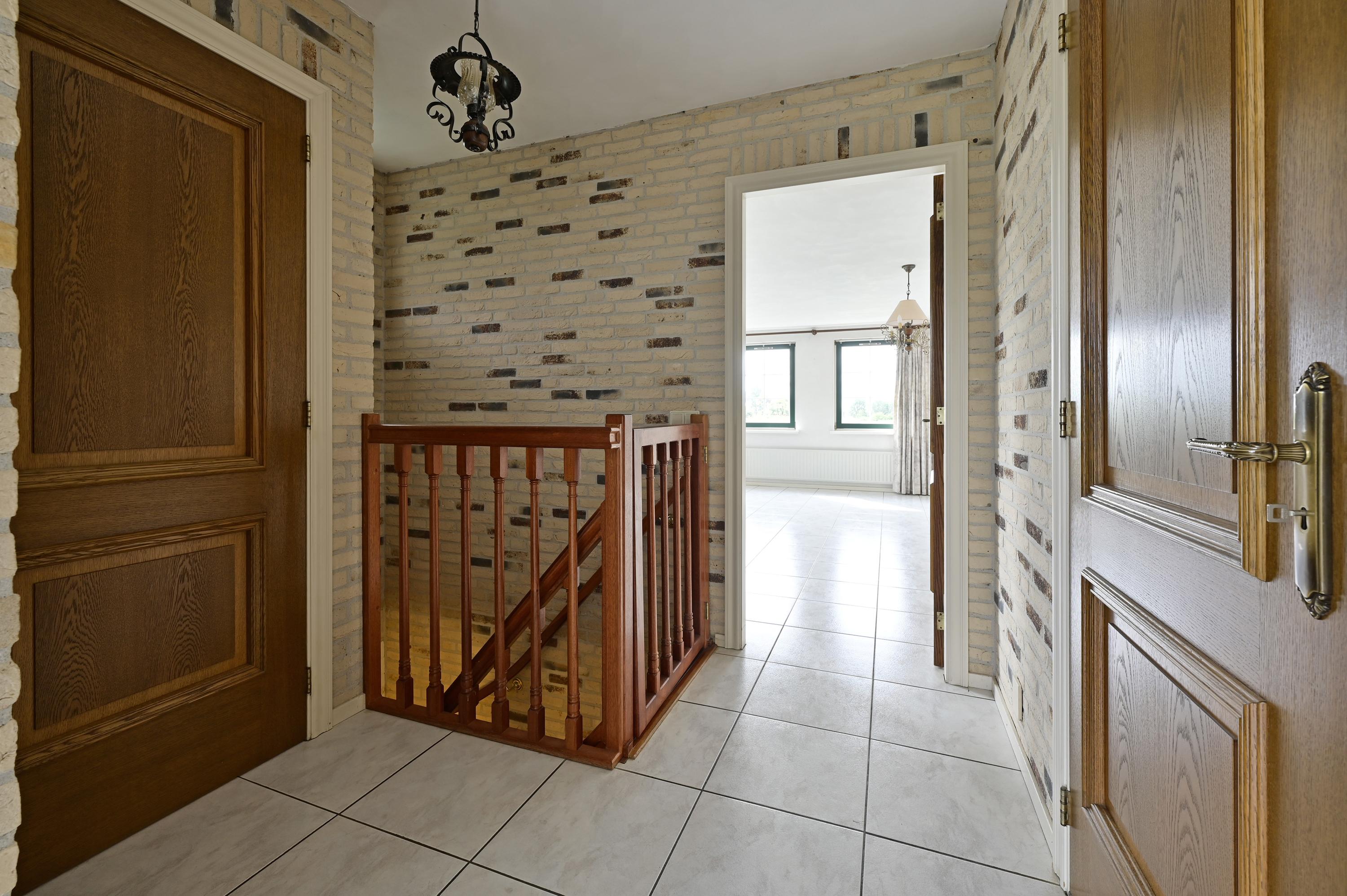A charming little bridge takes you to the gated entrance of the estate. The gate is both elegant and practical: a wide double gate for vehicles and a separate pedestrian door provide both welcoming and functional access. The pile-founded driveway, crafted in high-quality concrete with a stylish design, leads along the side of the villa. First, you’ll pass the ramp that provides access to the integral garage – ideal for everyday use or as a practical workspace. Further along lies the main entrance, also positioned at the side, while the driveway continues seamlessly into the rear garden. An entrance with true allure, perfectly matching the solid and refined character of this remarkable villa.