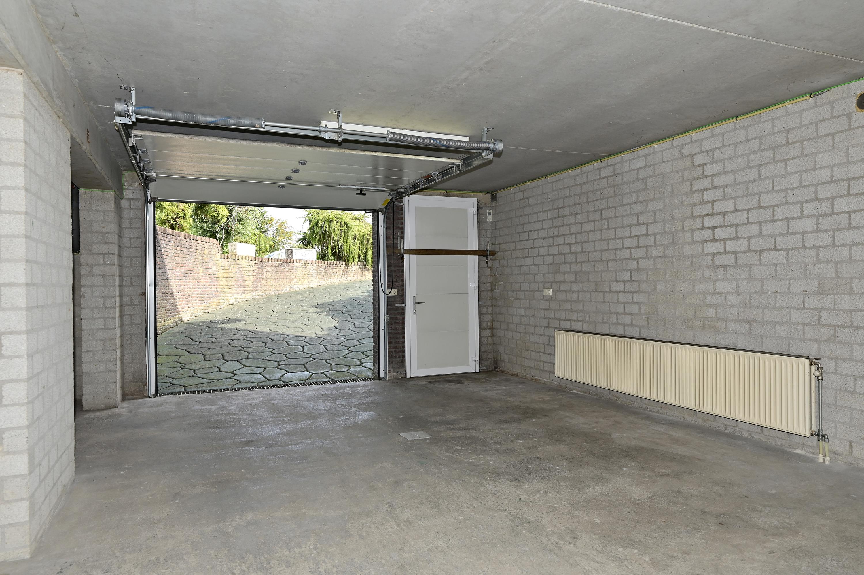 Another door from the hall opens into the impressive garage. With a robust concrete floor, natural light via a window well, and capacity for at least five vehicles, this is a dream come true for car enthusiasts, hobbyists, or entrepreneurs. Accessible via a manually operated roller door and a separate side entrance, the garage also houses several technical features, including the central vacuum system (connected to inlets throughout the house) and the inverter for the rooftop solar panels.