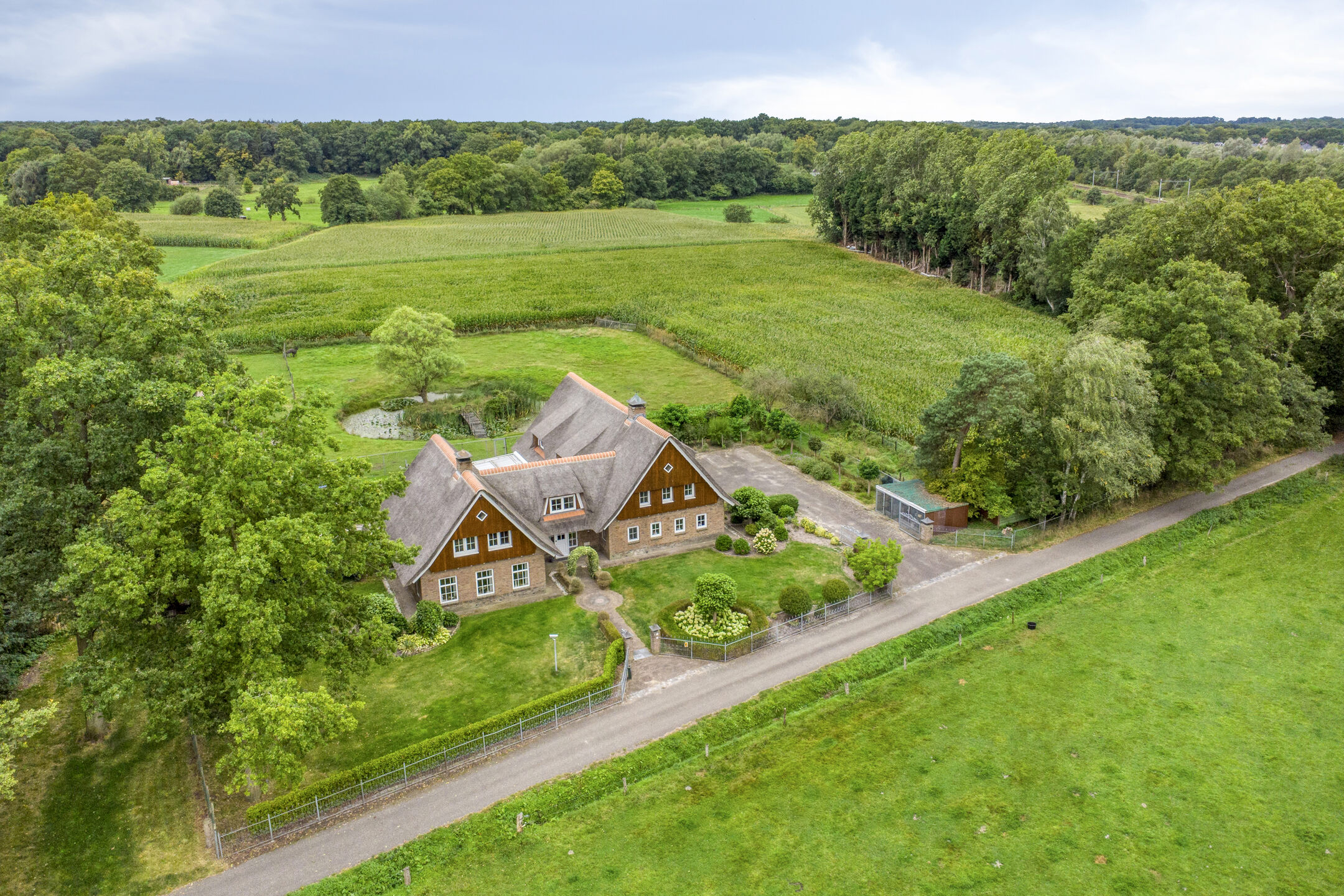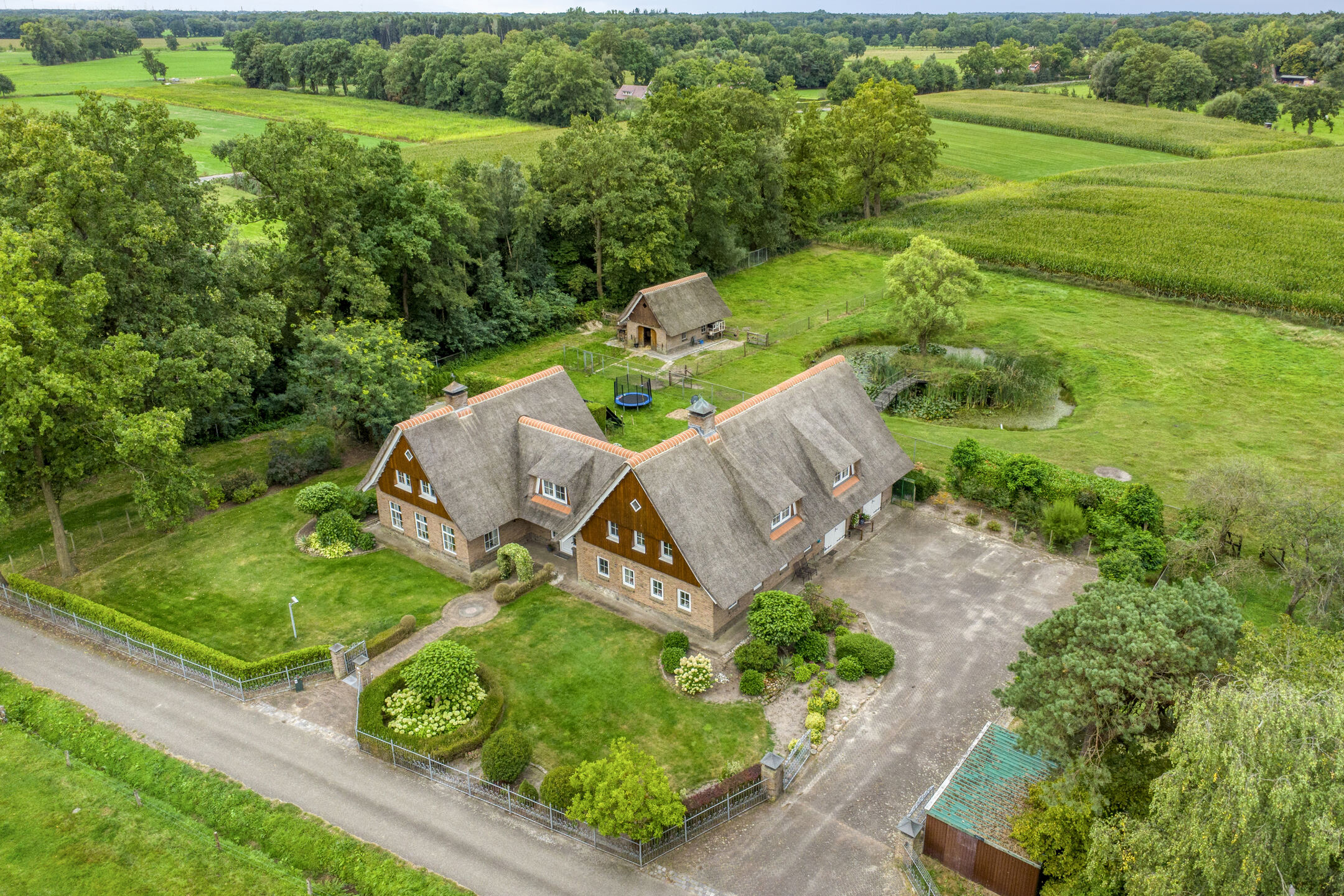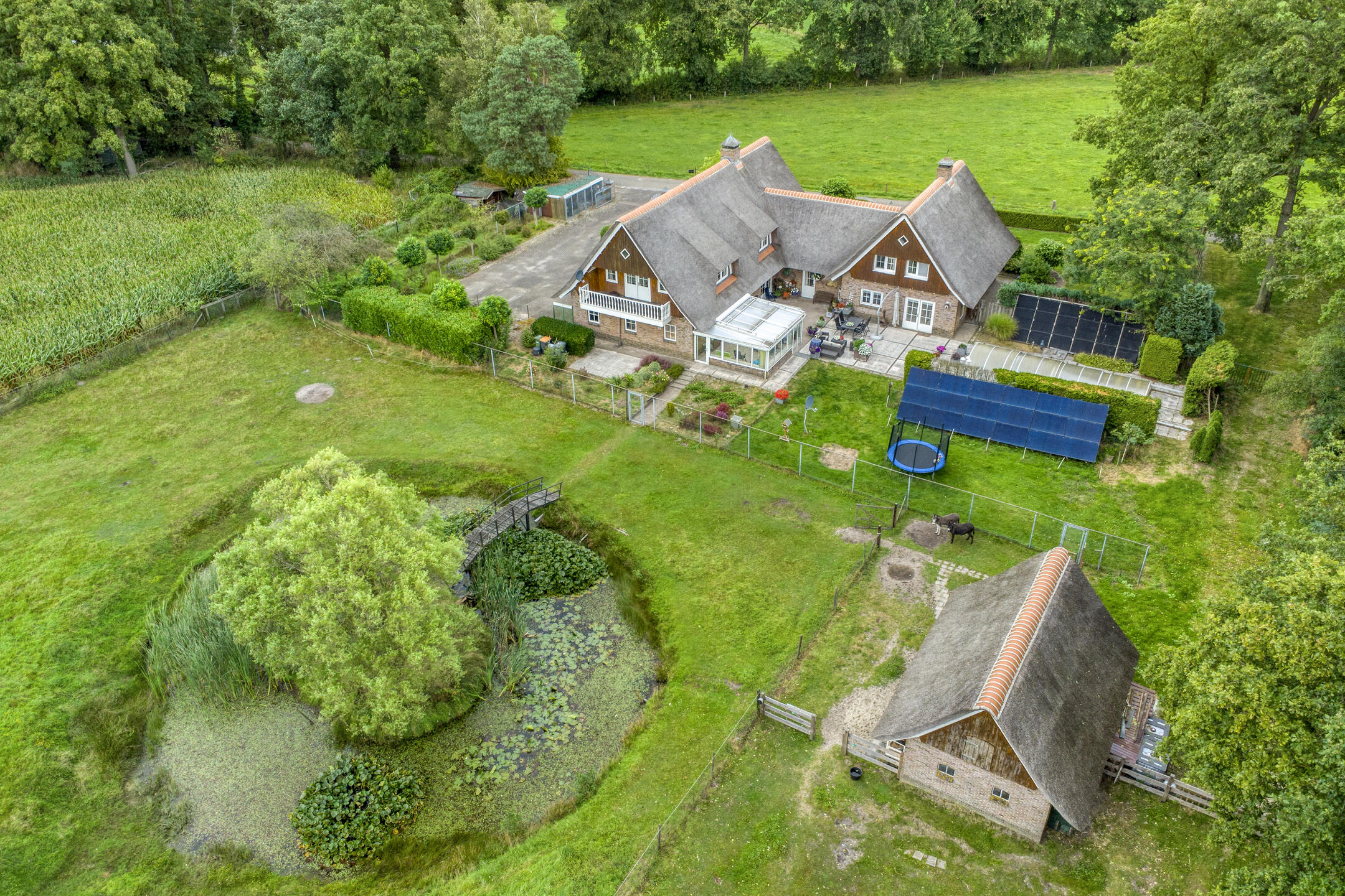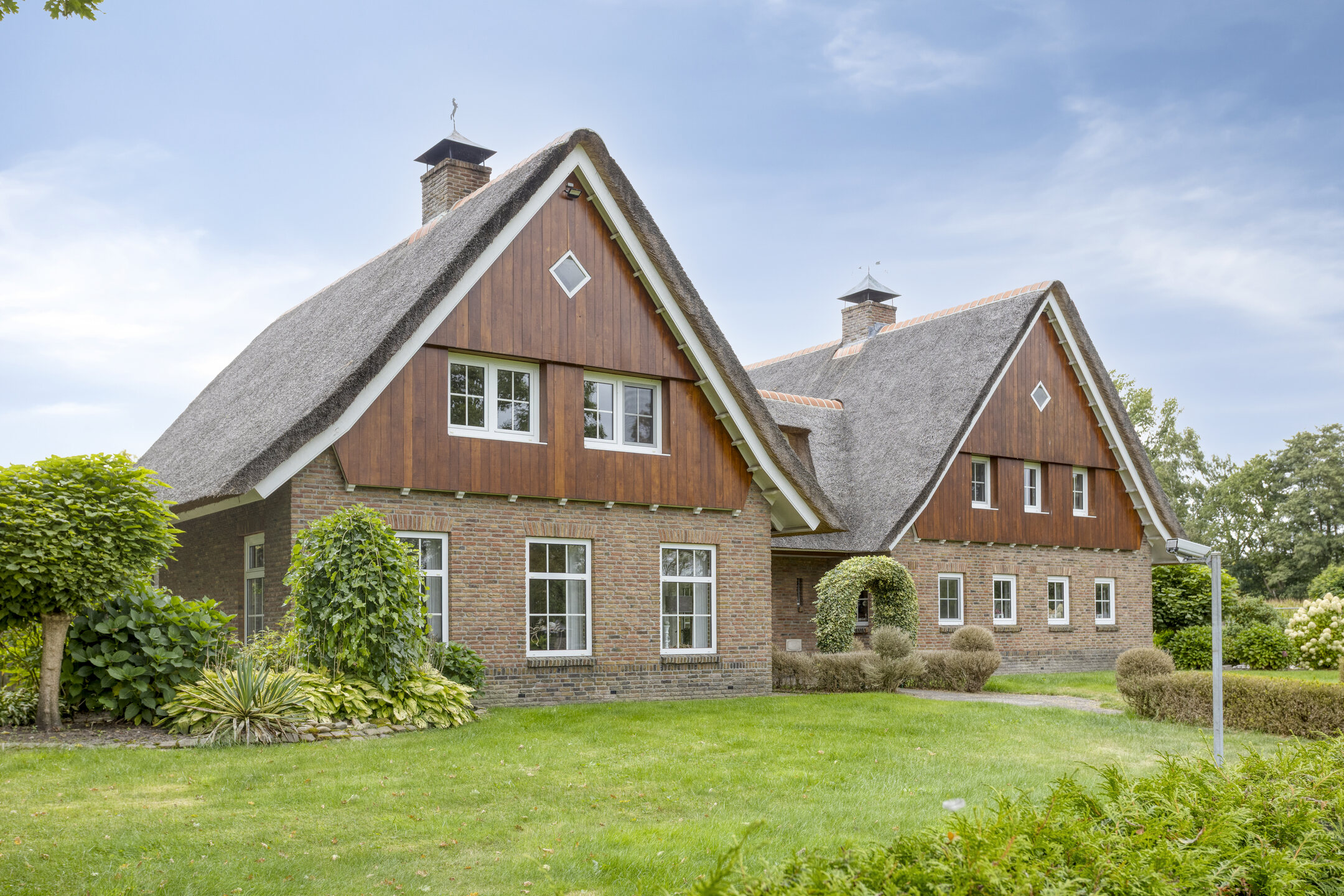 Attractive, space, peace & relaxation — just a few words to emphasize the living comfort of this home. A beautiful, spacious thatched country house (roof renewed in 2022) of 1,324 m³, wonderfully situated in the countryside, just a stone’s throw from the village of De Lutte, with outbuildings on a plot of 7,560 m². The house is equipped with no fewer than 18 solar panels and has energy label A!