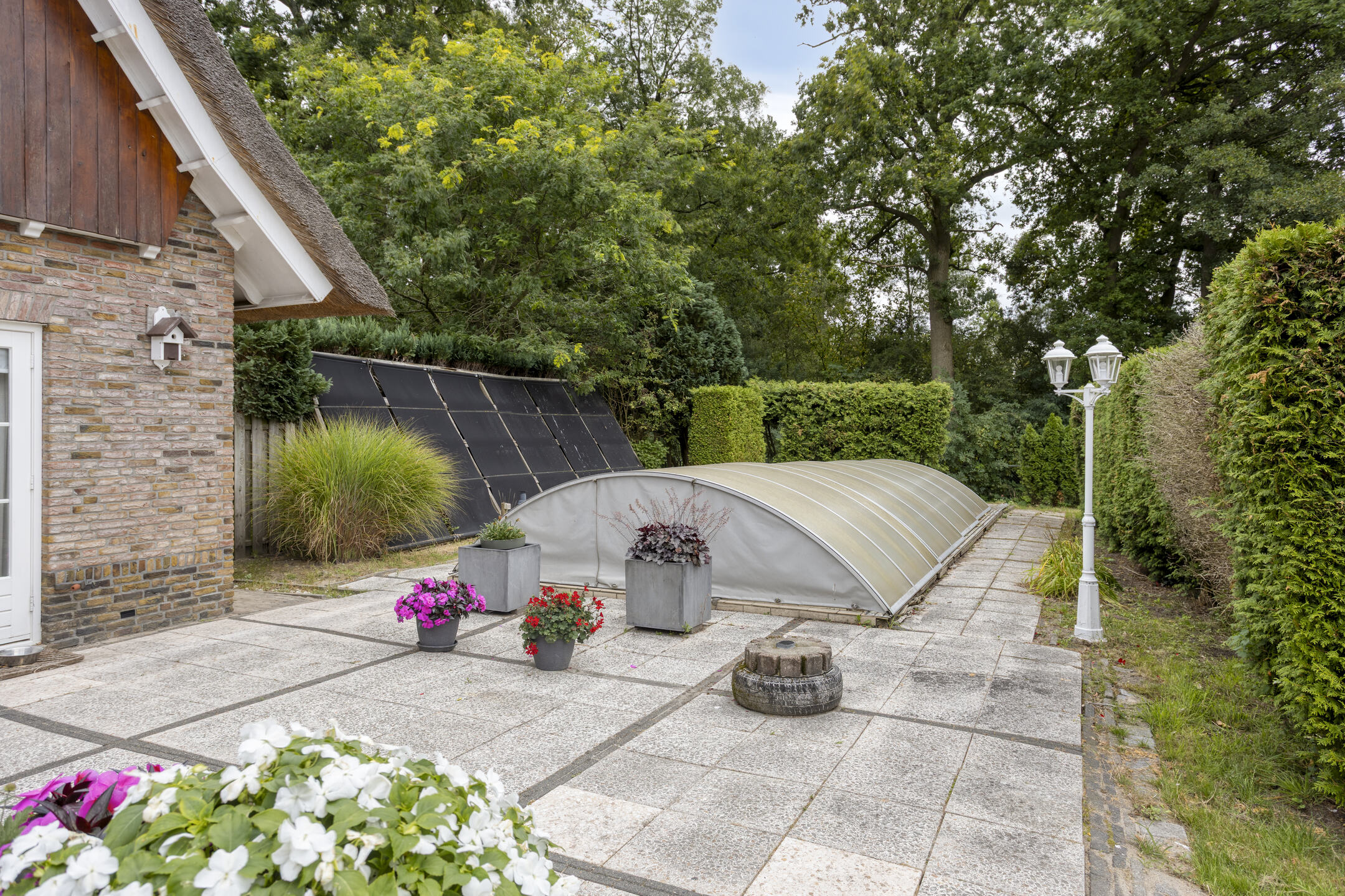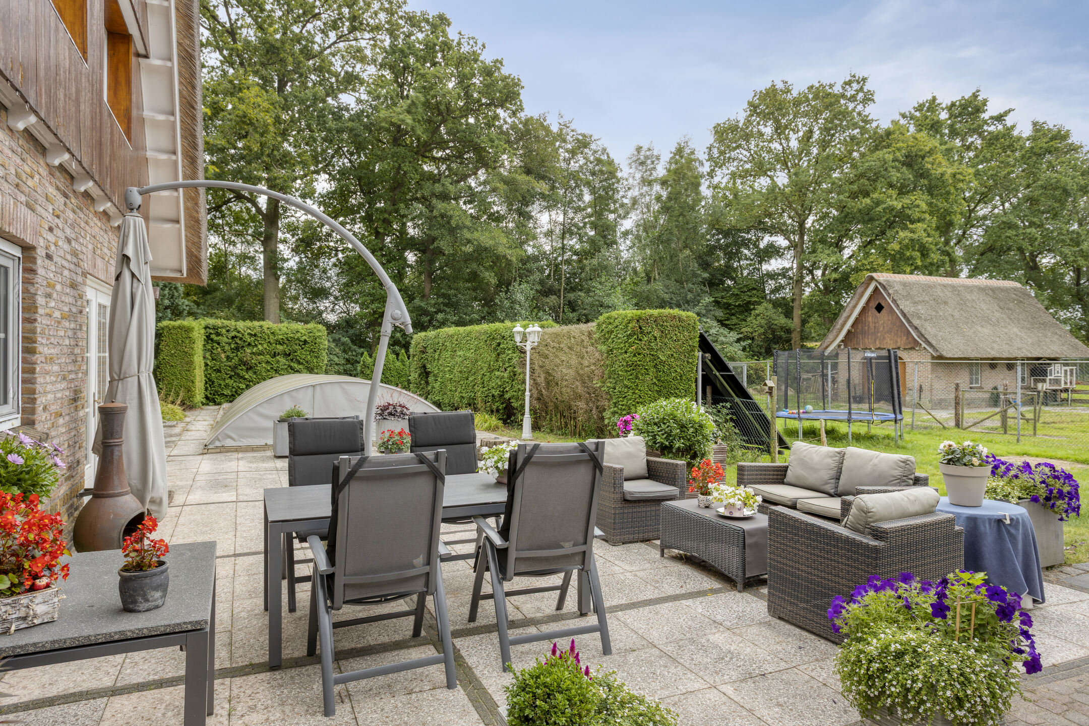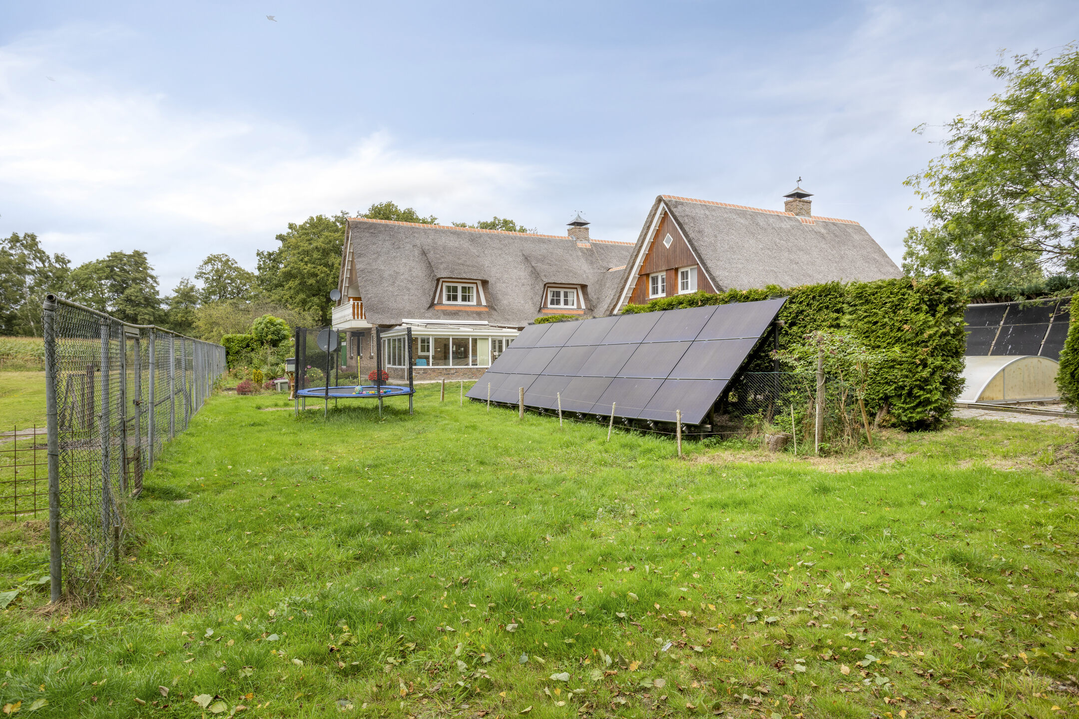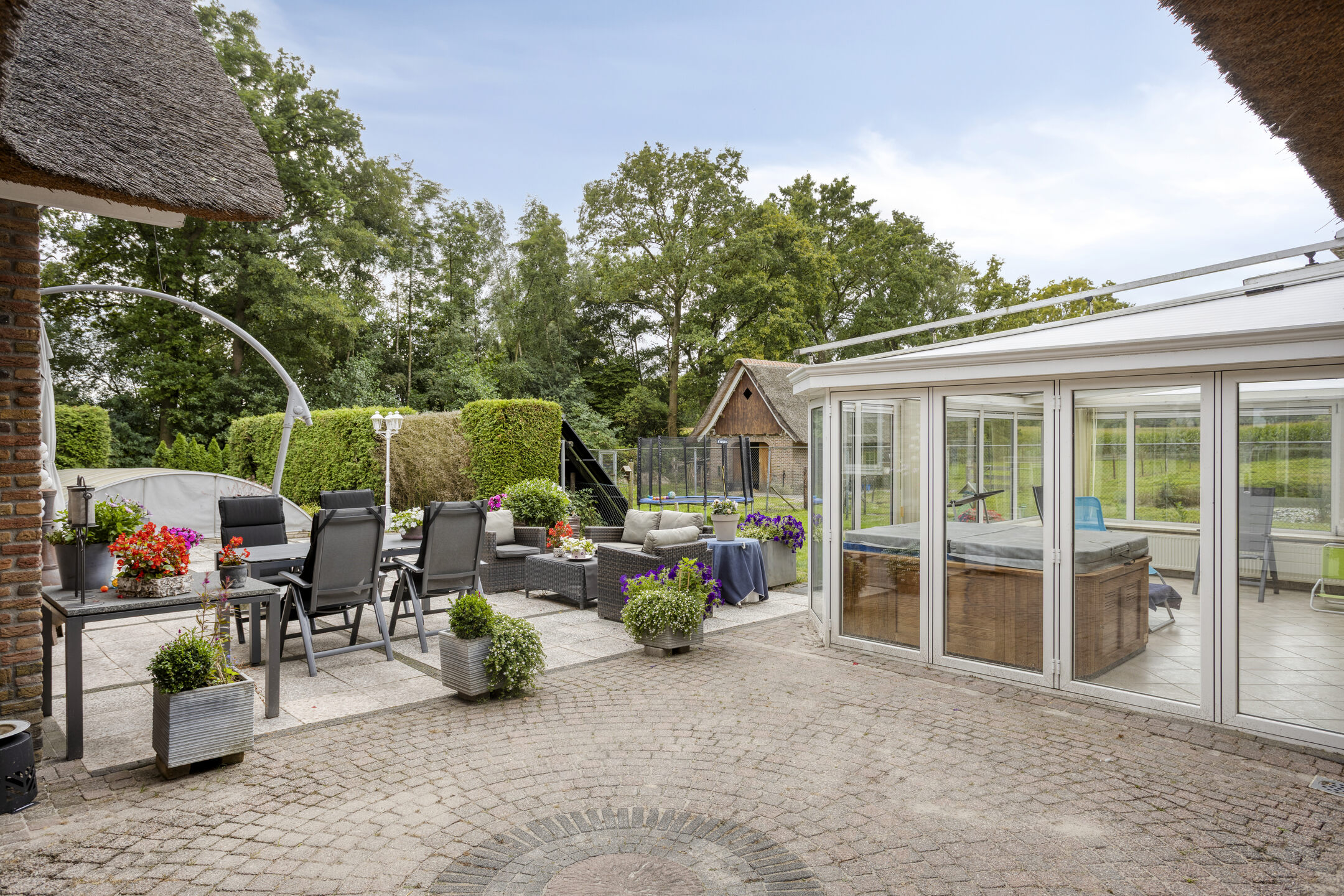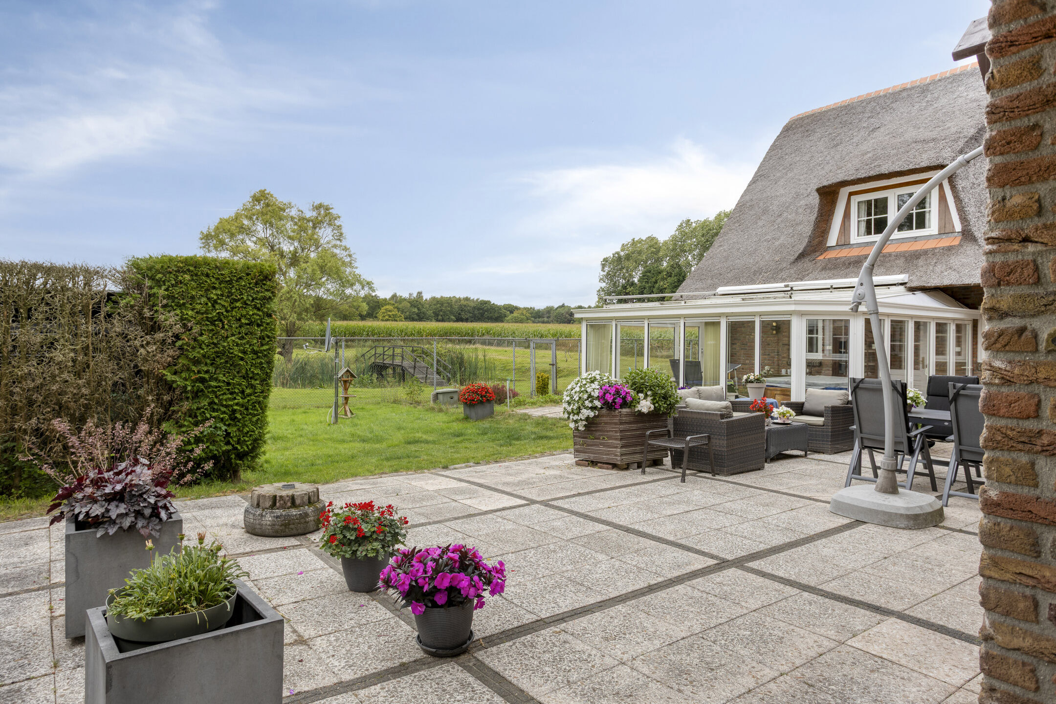 Attractive, space, peace & relaxation — just a few words to emphasize the living comfort of this home. A beautiful, spacious thatched country house (roof renewed in 2022) of 1,324 m³, wonderfully situated in the countryside, just a stone’s throw from the village of De Lutte, with outbuildings on a plot of 7,560 m². The house is equipped with no fewer than 18 solar panels and has energy label A!