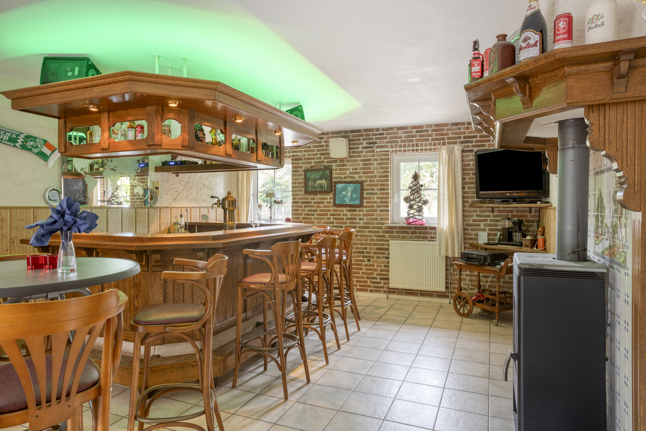The property was architect-designed and built in 1991 and features a heated swimming pool (10 x 4 meters), sauna area, conservatory with jacuzzi, and even an authentic “brown café” — all for optimal living pleasure. Around the house lies a neatly landscaped garden enclosed by fencing with gates. At any time of the year, you’ll find a spot where you can simply relax and dream away.
