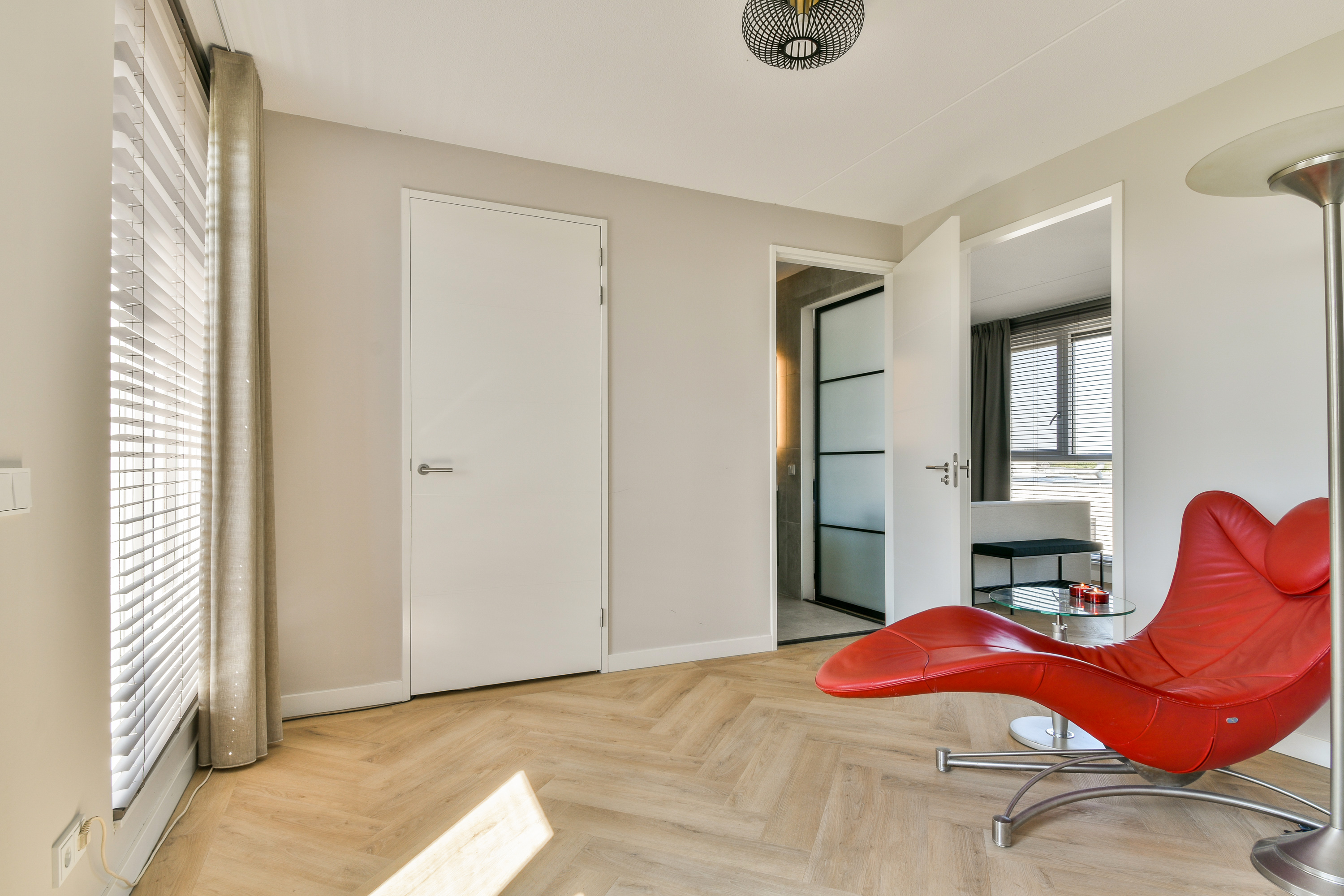 Living Room (~3.65 x 7.65 m): Positioned on the first floor to make the most of the panoramic river views and the developing Wervenpark, which will become a tidal zone connecting to the Biesbosch National Park. Floor-to-ceiling windows flood the space with light. Finished with high-quality herringbone PVC flooring.