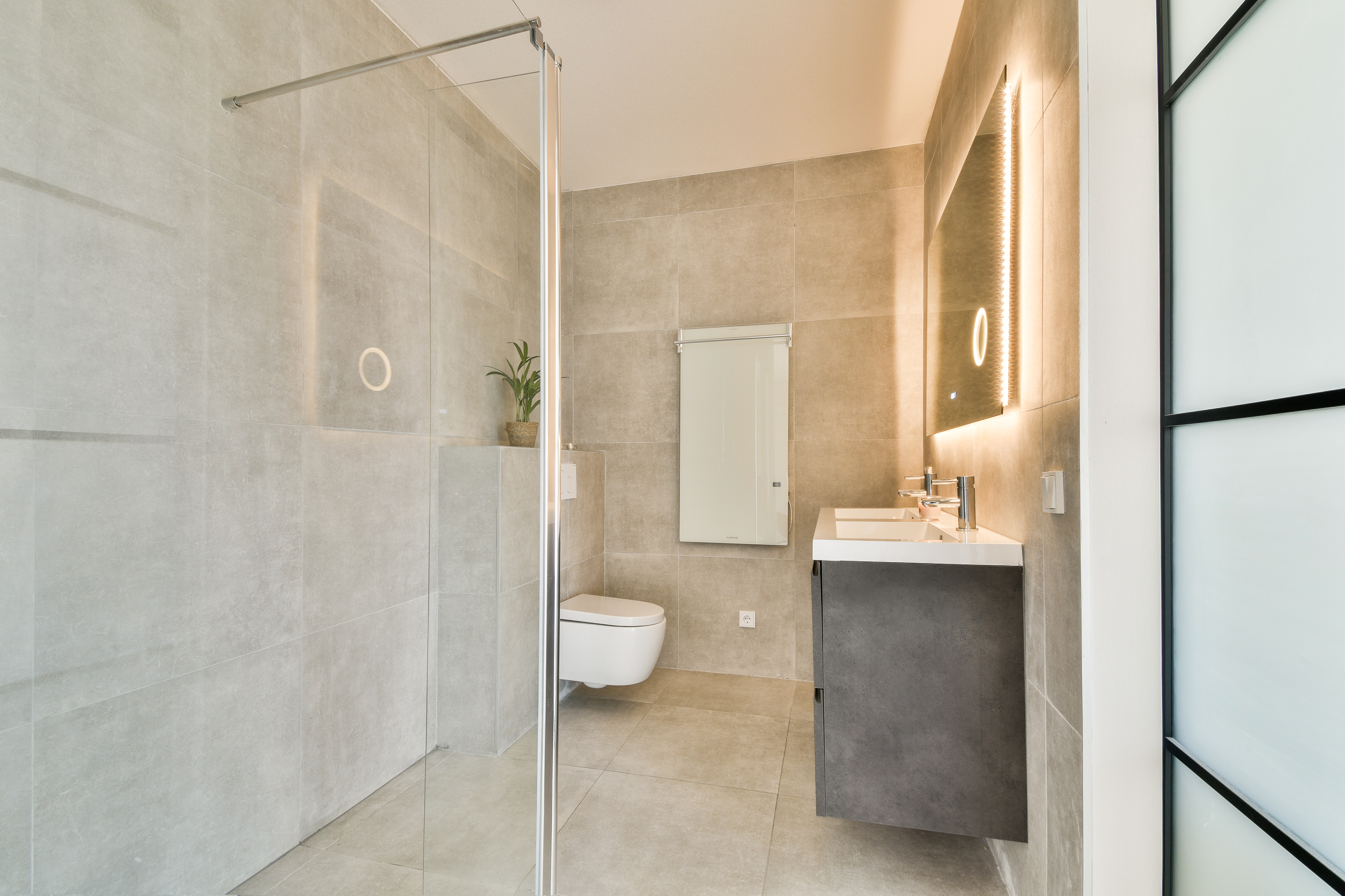 * Walk-in rain shower with thermostat