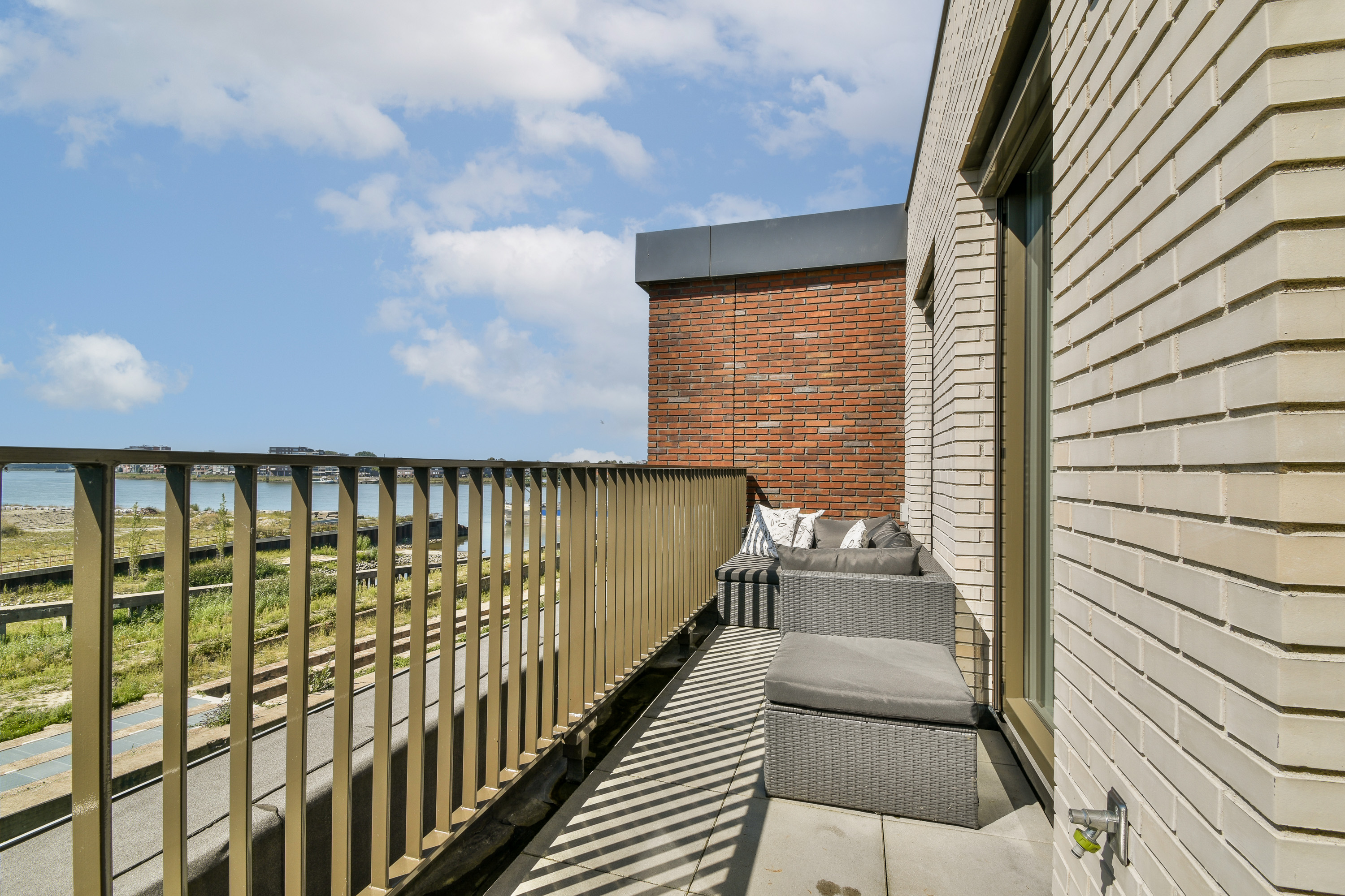 Terrace 2 (~1.46 x 7.07 m): Private rooftop terrace with no adjacent neighbors, providing privacy and stunning views over the river, Wervenpark, and Stadswerven district toward Dordrecht’s city center.