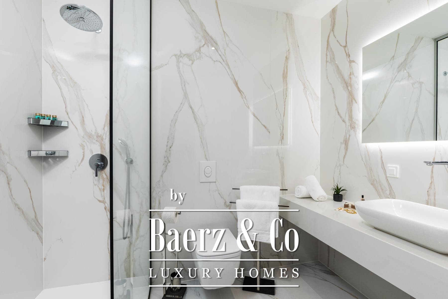 The apartment features three bedrooms and three bathrooms, each space crafted with a focus on light, flow, and comfort. A spacious open-concept living room, dining area, and kitchen create a luminous atmosphere accentuated by the south-west orientation, ensuring natural daylight throughout the day. Attention to detail is evident in the choice of high-quality materials, supporting both enduring elegance and energy efficiency.