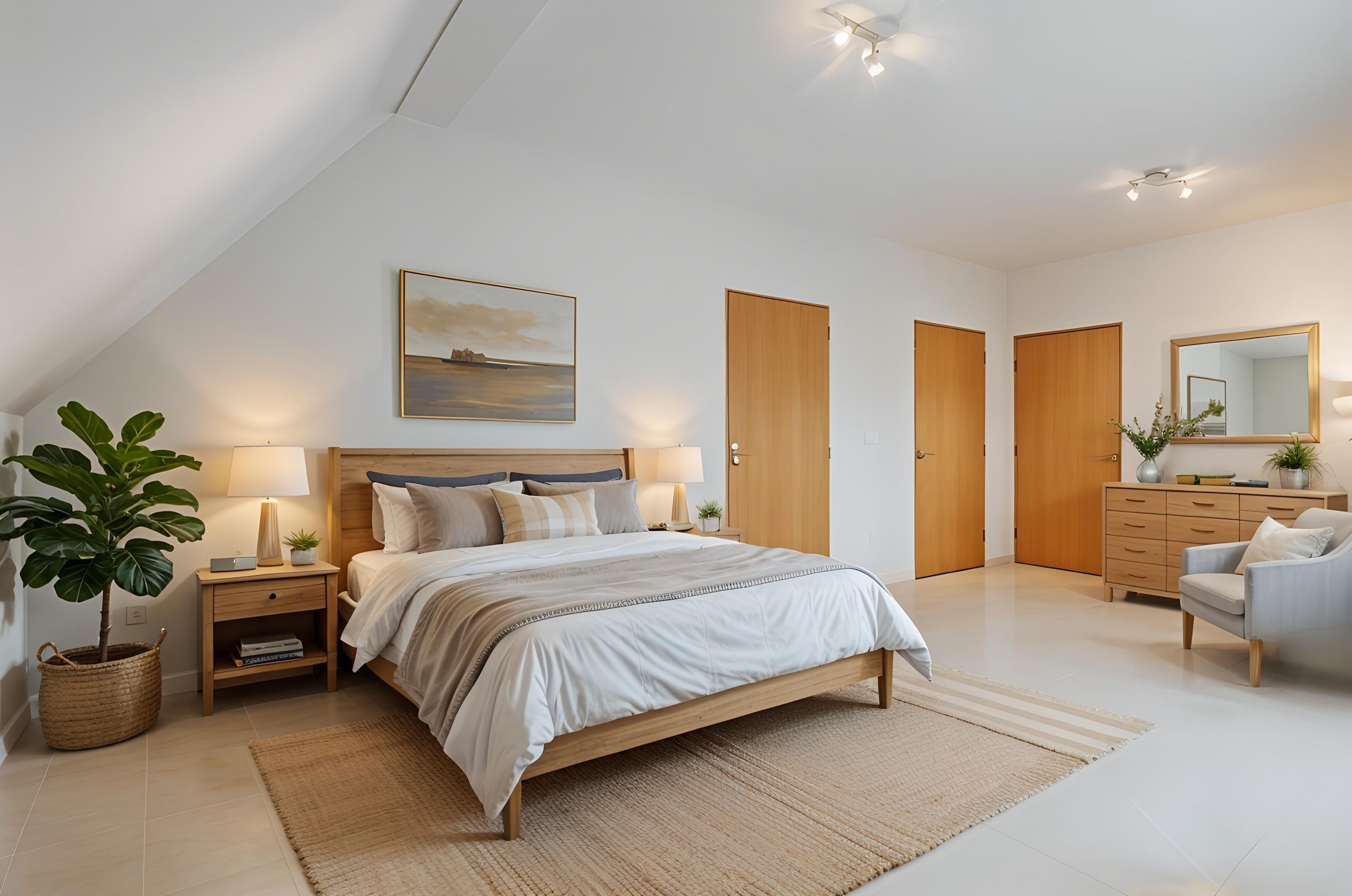 The master bedroom includes bespoke fitted wardrobes, double doors to the balcony and a luxurious en-suite bathroom. This spacious suite offers a walk-in shower and a second shower with a non-slip floor—ideal for residents with reduced mobility. A double washbasin unit and wall-hung toilet complete the design.