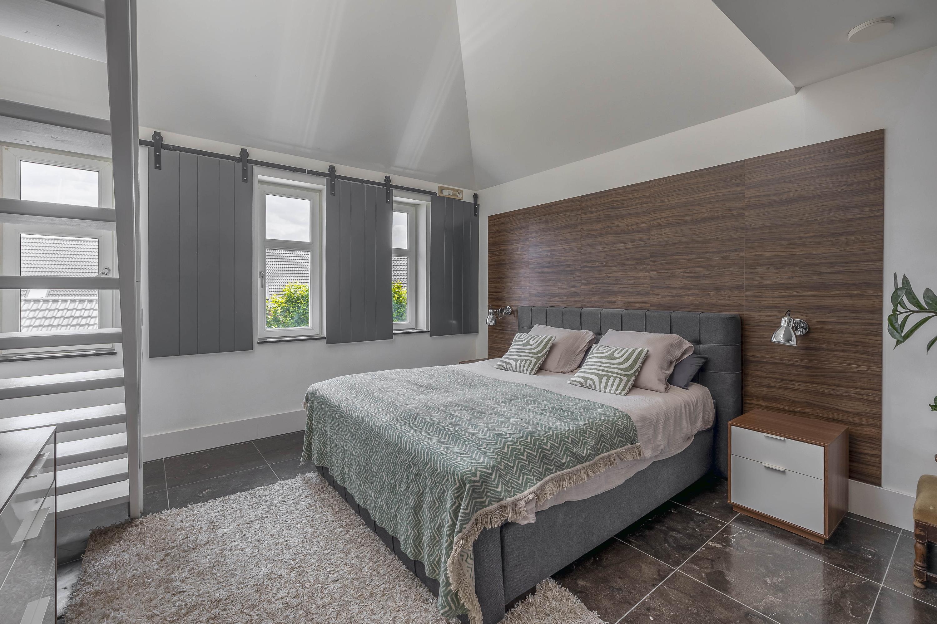 Bedroom 1 is a beautiful master bedroom with en-suite bathroom and a staircase to the second floor. Here you experience a sense of luxury and space, thanks to the high ridge and tasteful finish.