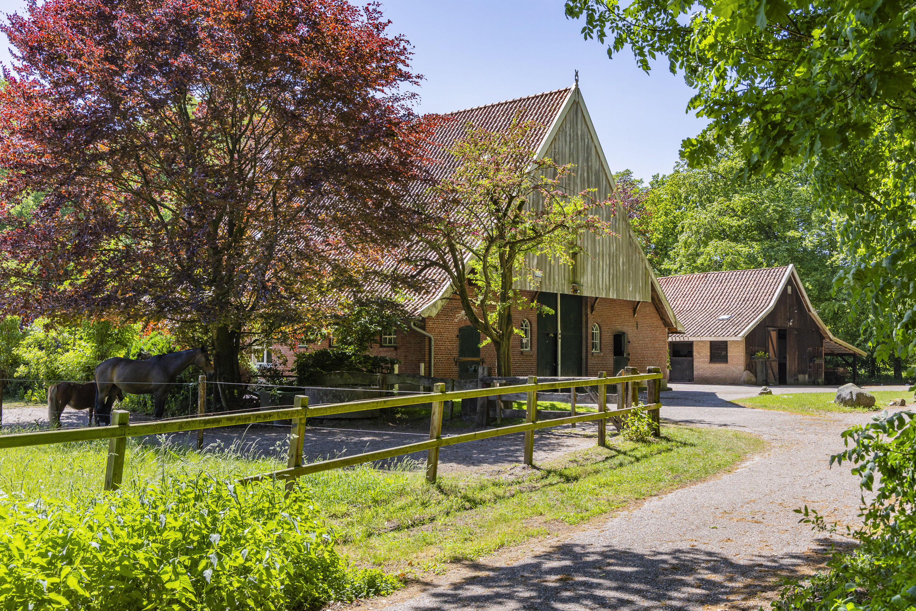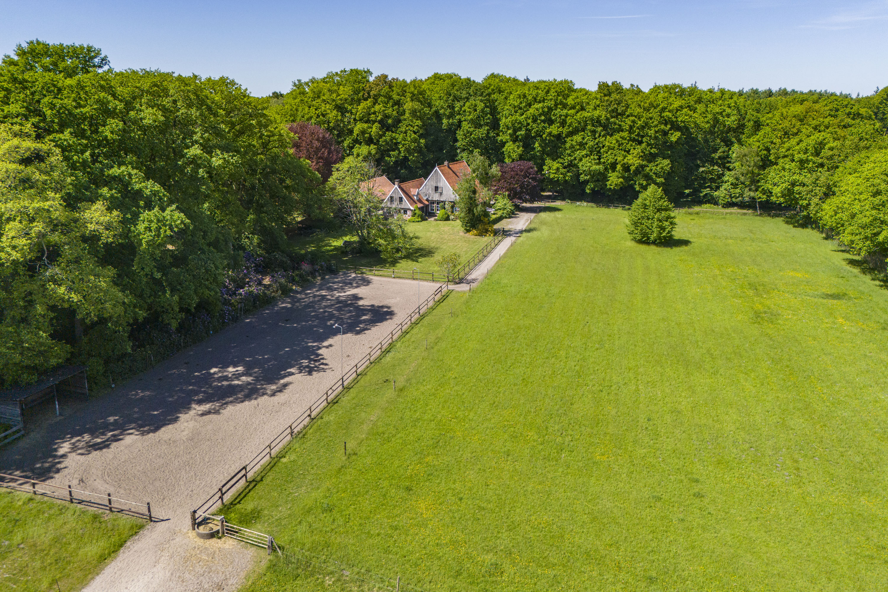 Estate Wienenbleek spans approximately 7.24 hectares, consisting of around 4.5 hectares of meadows, bordered by about 2.4 hectares of forest and hedgerows. The meadows, which include a riding arena, are ideal for horses or other livestock, but can also be left natural to serve as a beautiful transition to the forest.