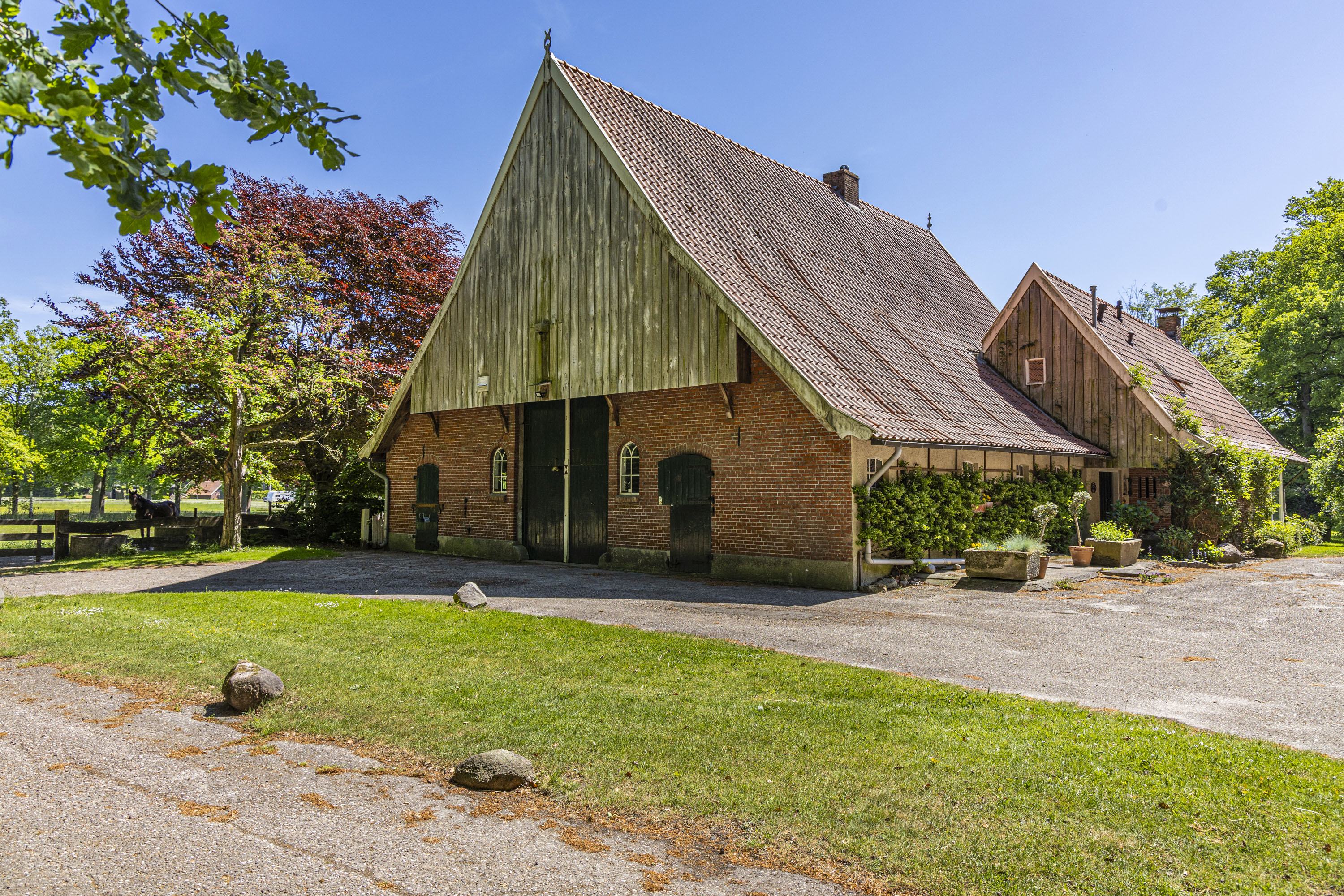 Next to the farmhouse is a large barn (225 m²), built in Saxon style with brick walls and wooden gables. It is currently used for equestrian purposes, containing several stables.
