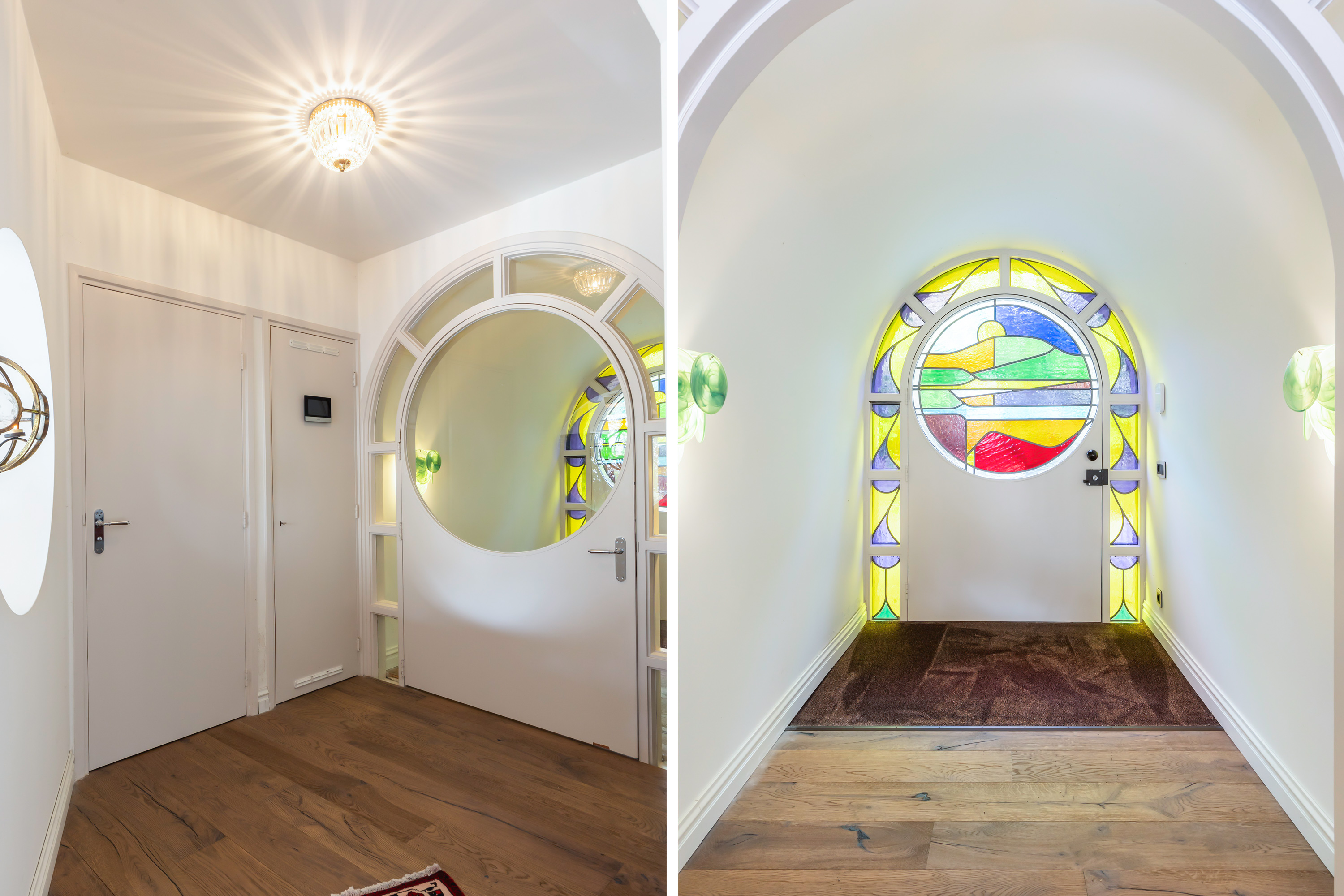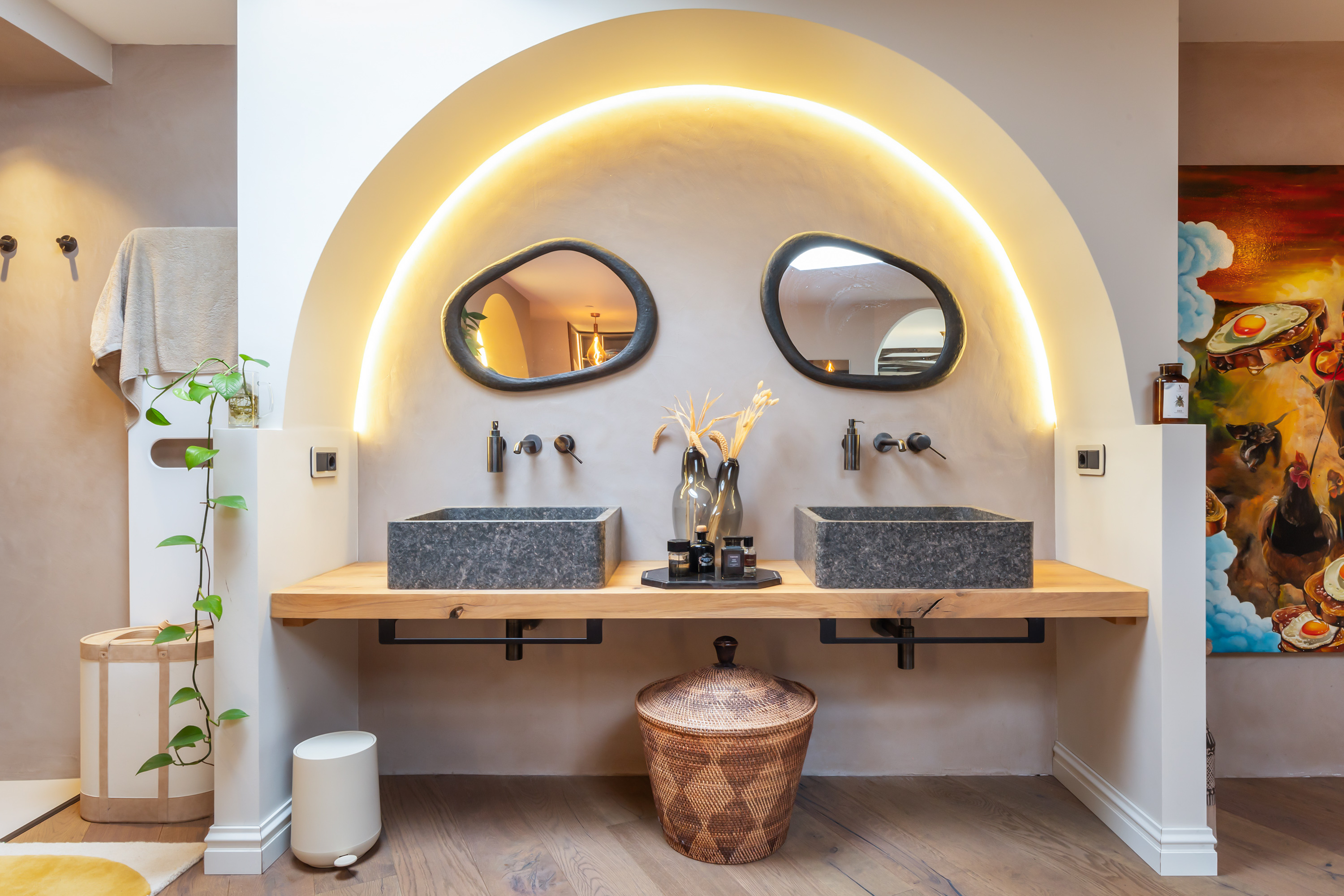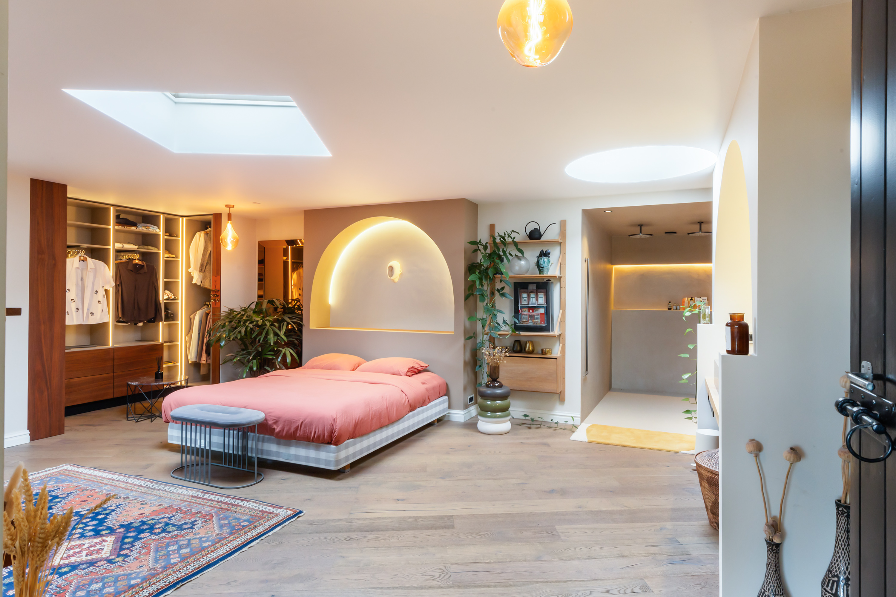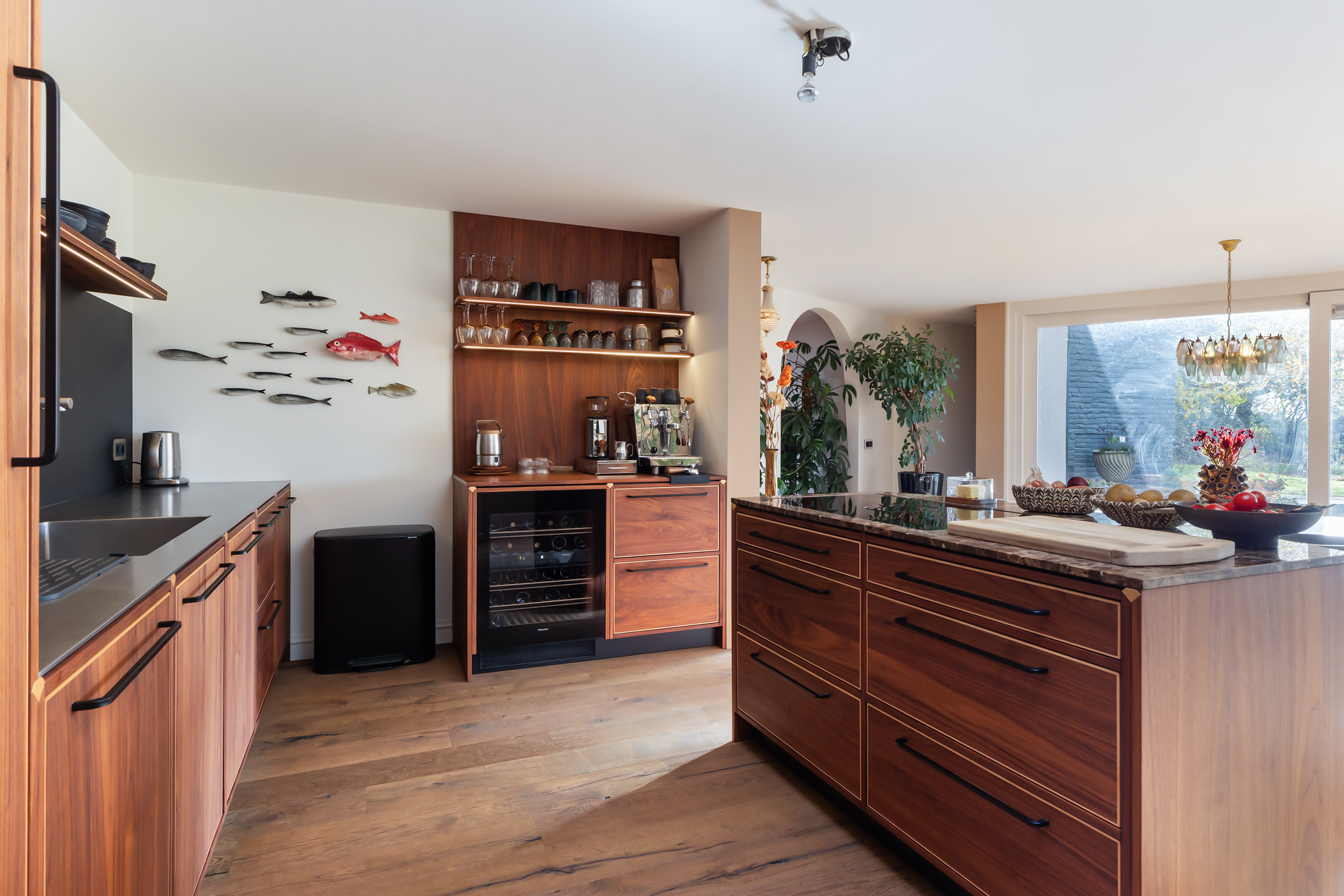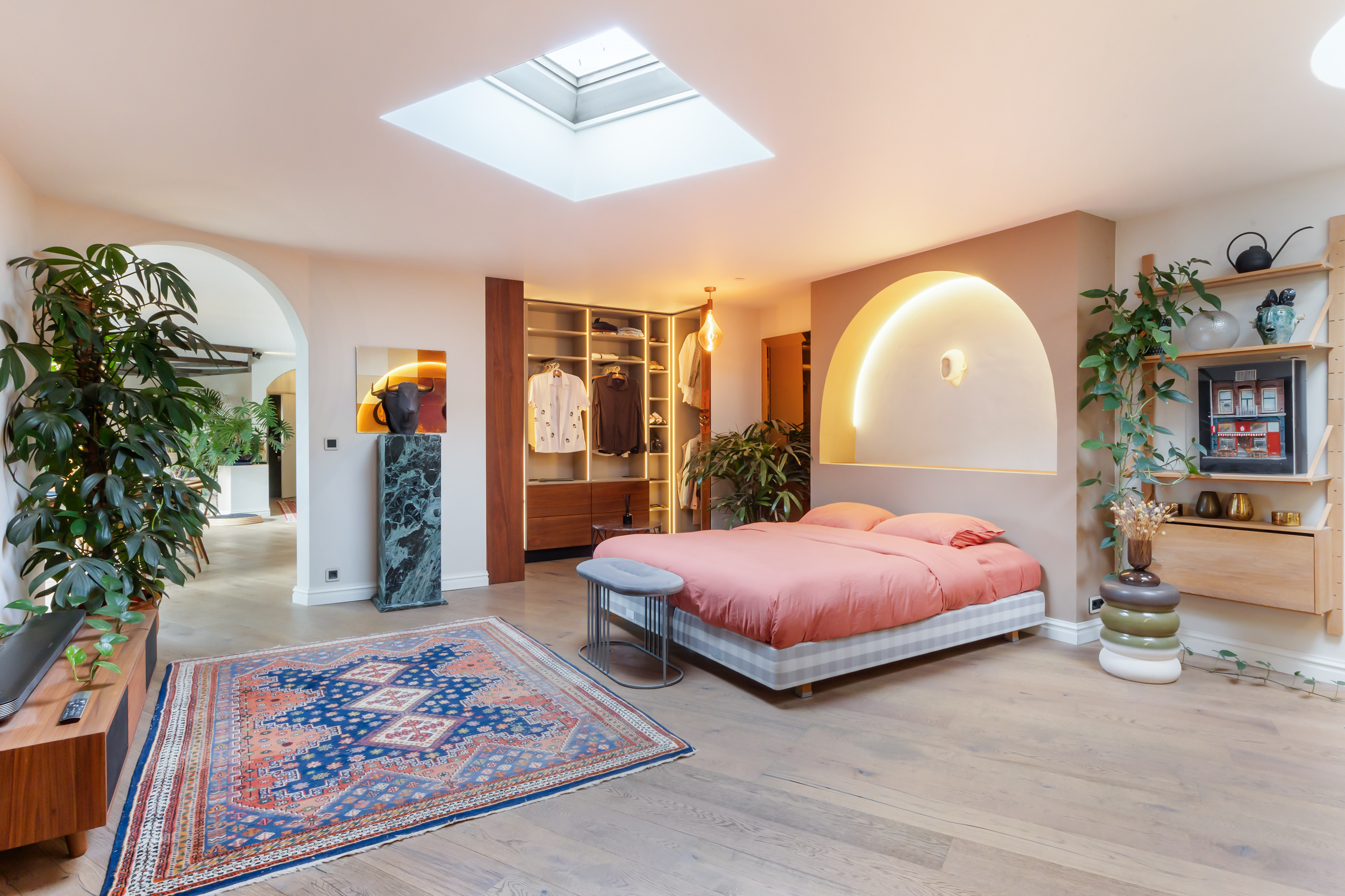 Built atop its 1875 origins and expanded in 1992 by architect Antony Williams, the residence underwent a complete transformation in 2023. Durable materials, bespoke joinery and atmospheric lighting define the hotel-chic ambiance, where south-facing terraces and roof decks immerse daily life in landscape and light. The entire ensemble is gas-free and exceptionally energy efficient, featuring a Thermia ground-source heat pump, 46 solar panels, underfloor heating, and triple-glazed windows, all reaching energy class A_PPP. Water flows from a private 76-metre well with purification, ensuring autonomy.