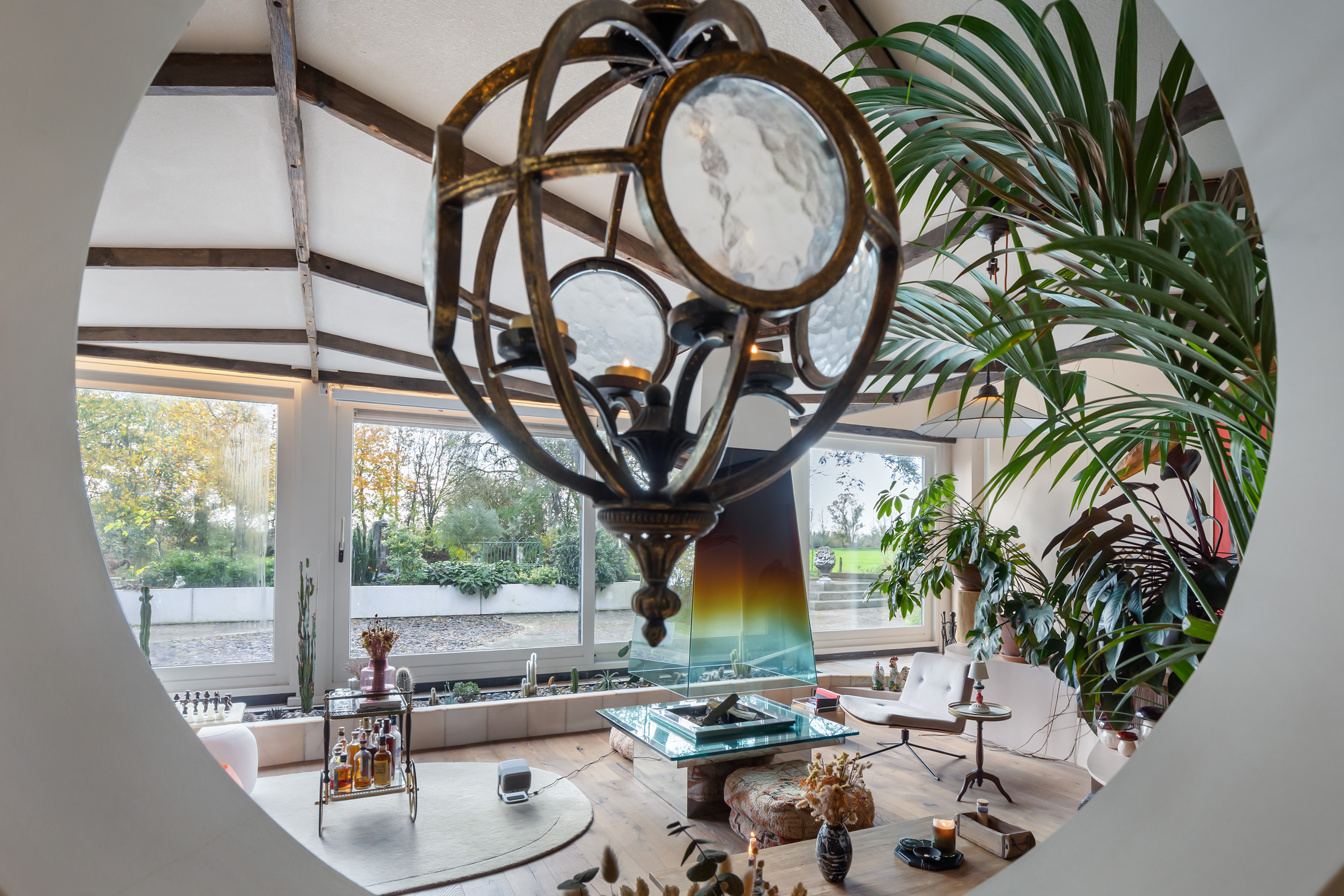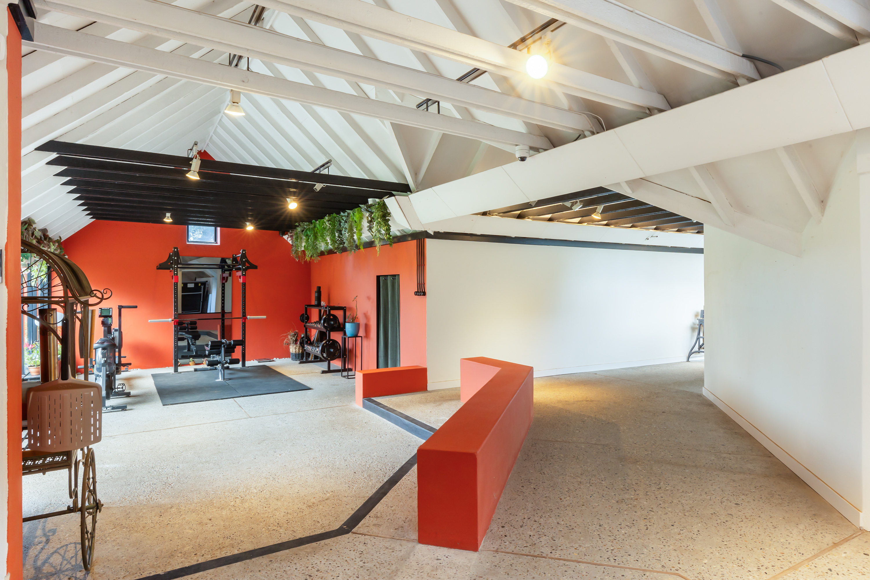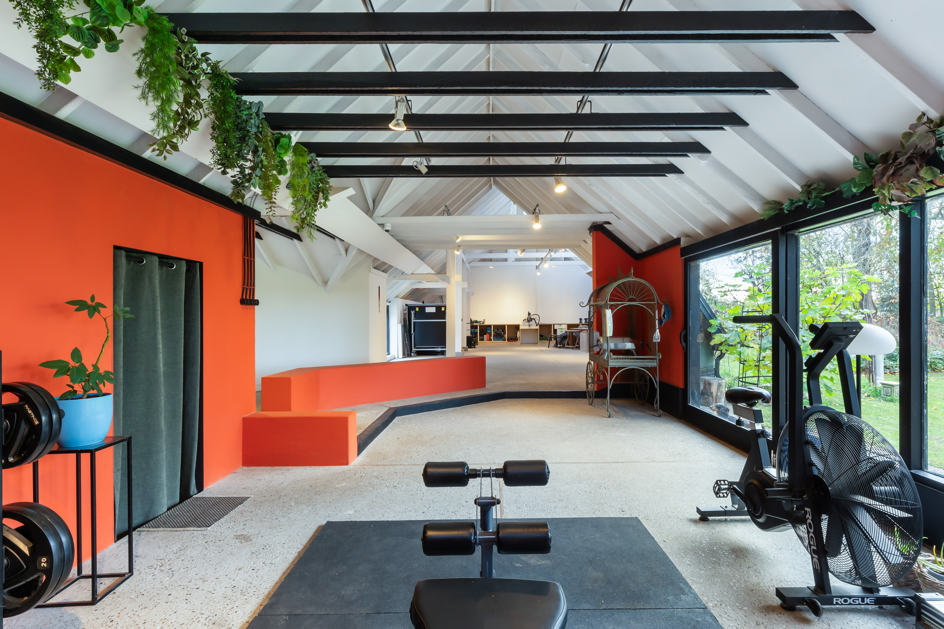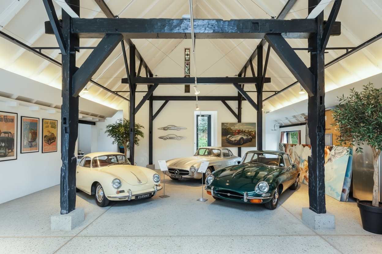 The adjoining commercial space offers further scope for atelier, showroom or guest accommodation, its black timber trusses and generous windows showcasing craftsmanship and presence. Outside, the garden merges with farmland and includes a gazebo, floating terrace and secluded deck, offering a sanctuary of privacy. Mature trees and thoughtful landscaping enhance the sense of calm.