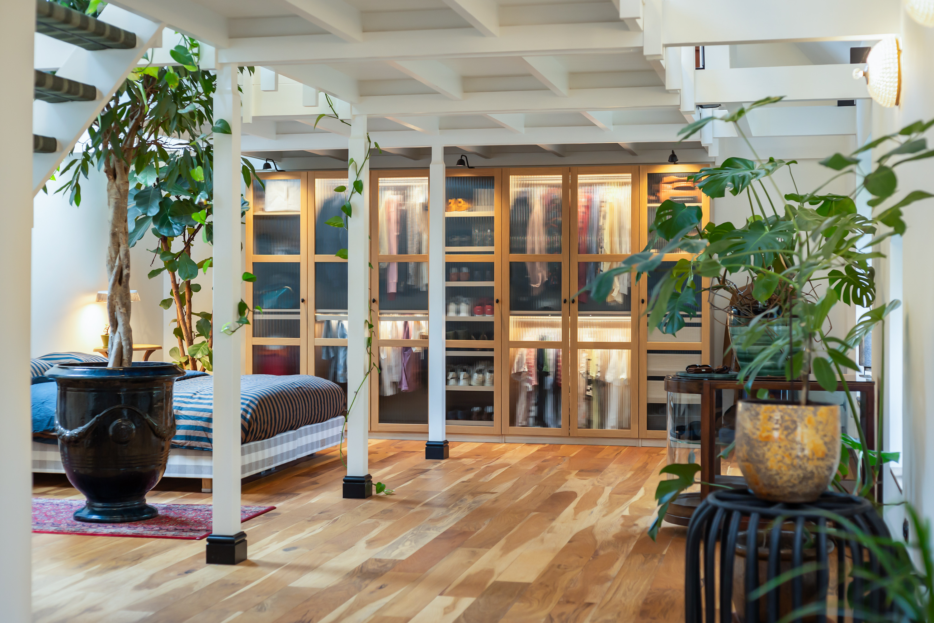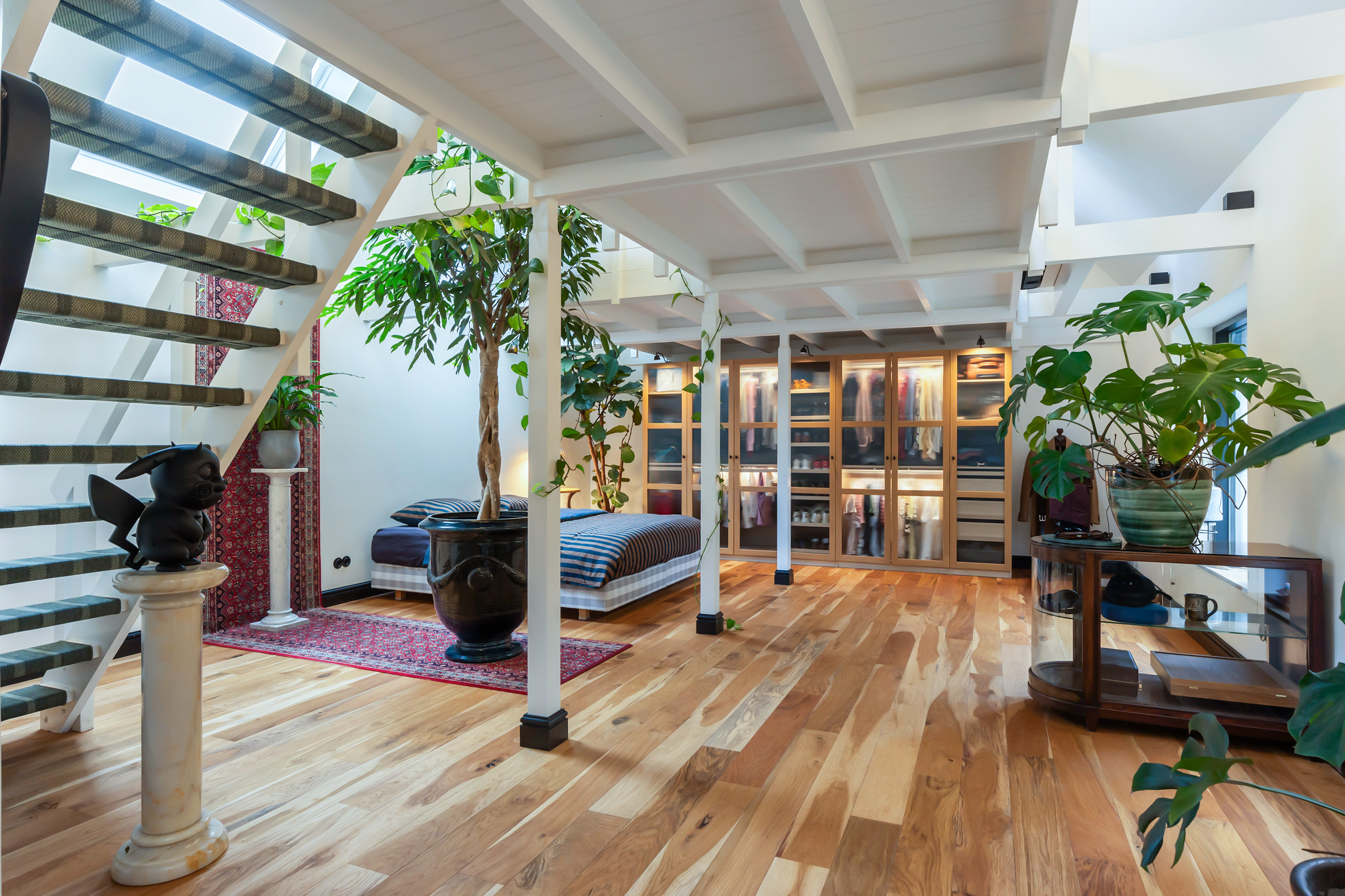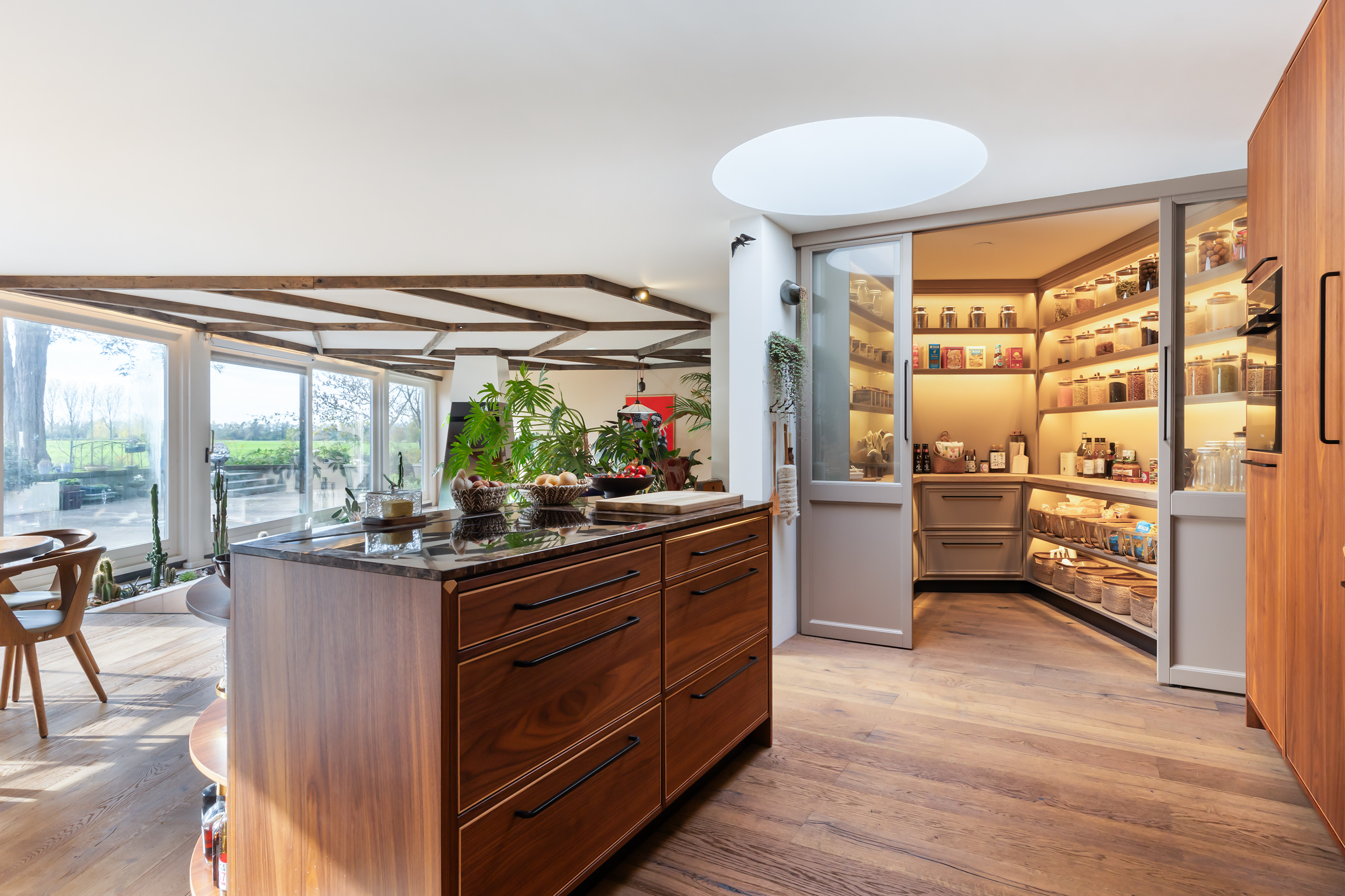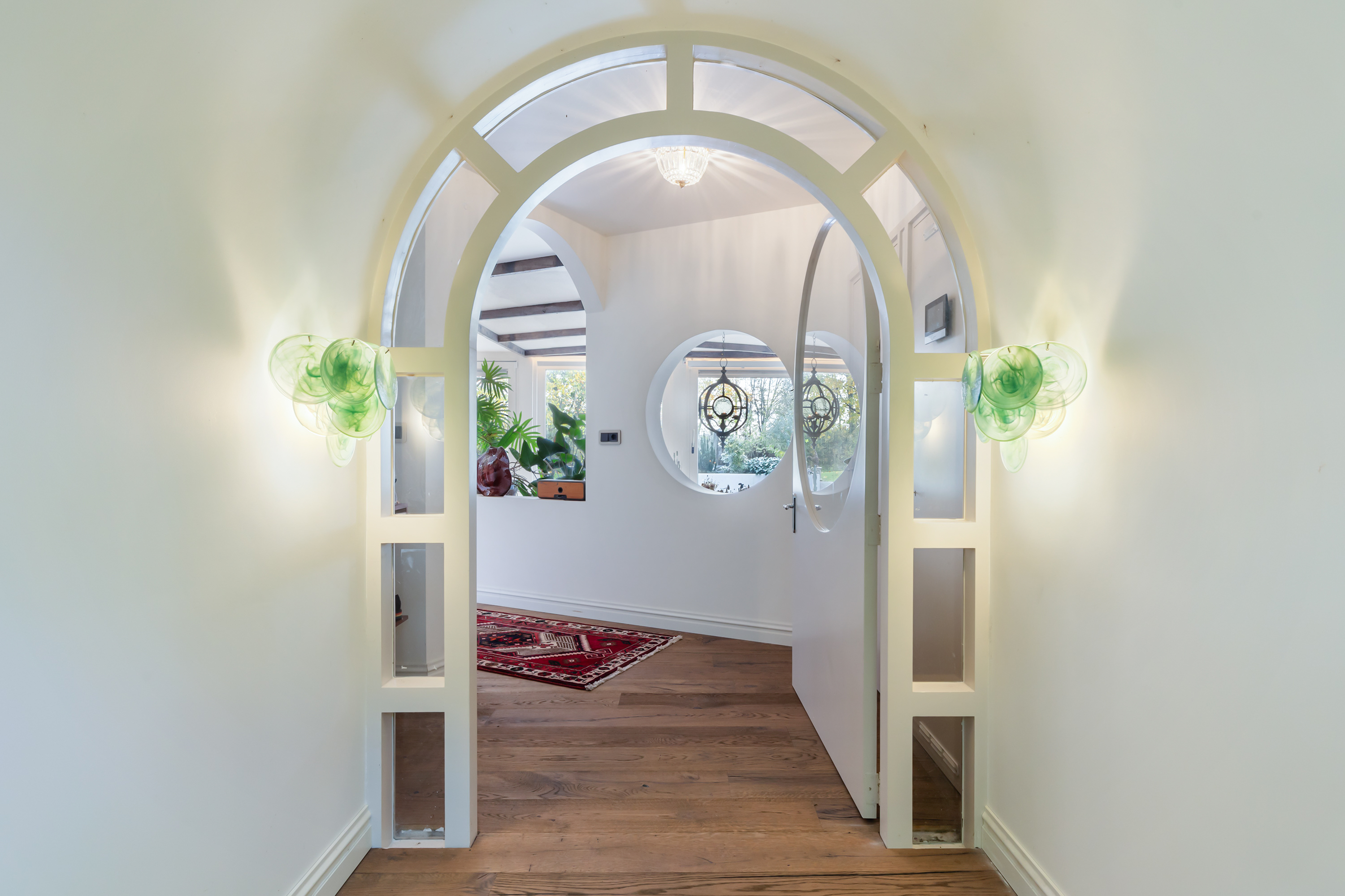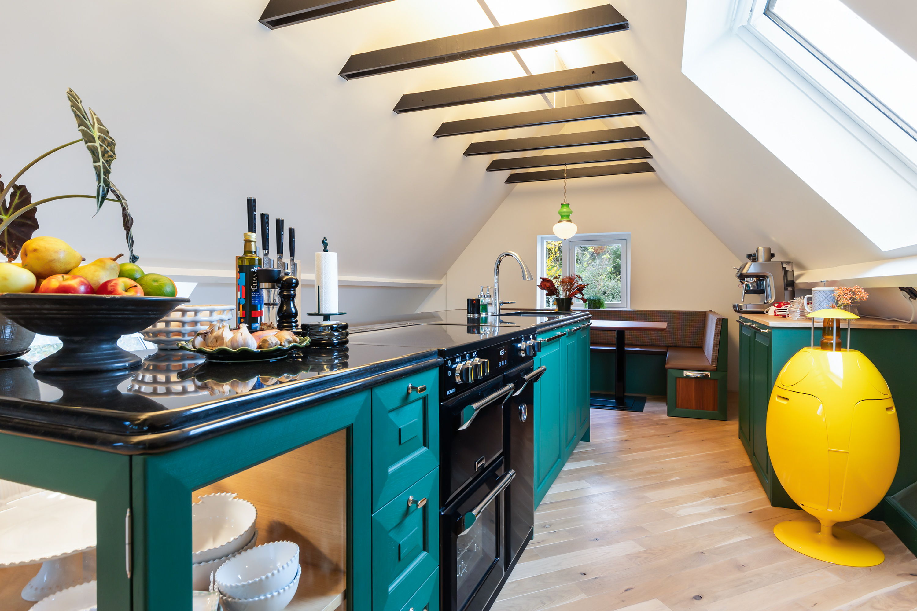 The adjoining commercial space offers further scope for atelier, showroom or guest accommodation, its black timber trusses and generous windows showcasing craftsmanship and presence. Outside, the garden merges with farmland and includes a gazebo, floating terrace and secluded deck, offering a sanctuary of privacy. Mature trees and thoughtful landscaping enhance the sense of calm.