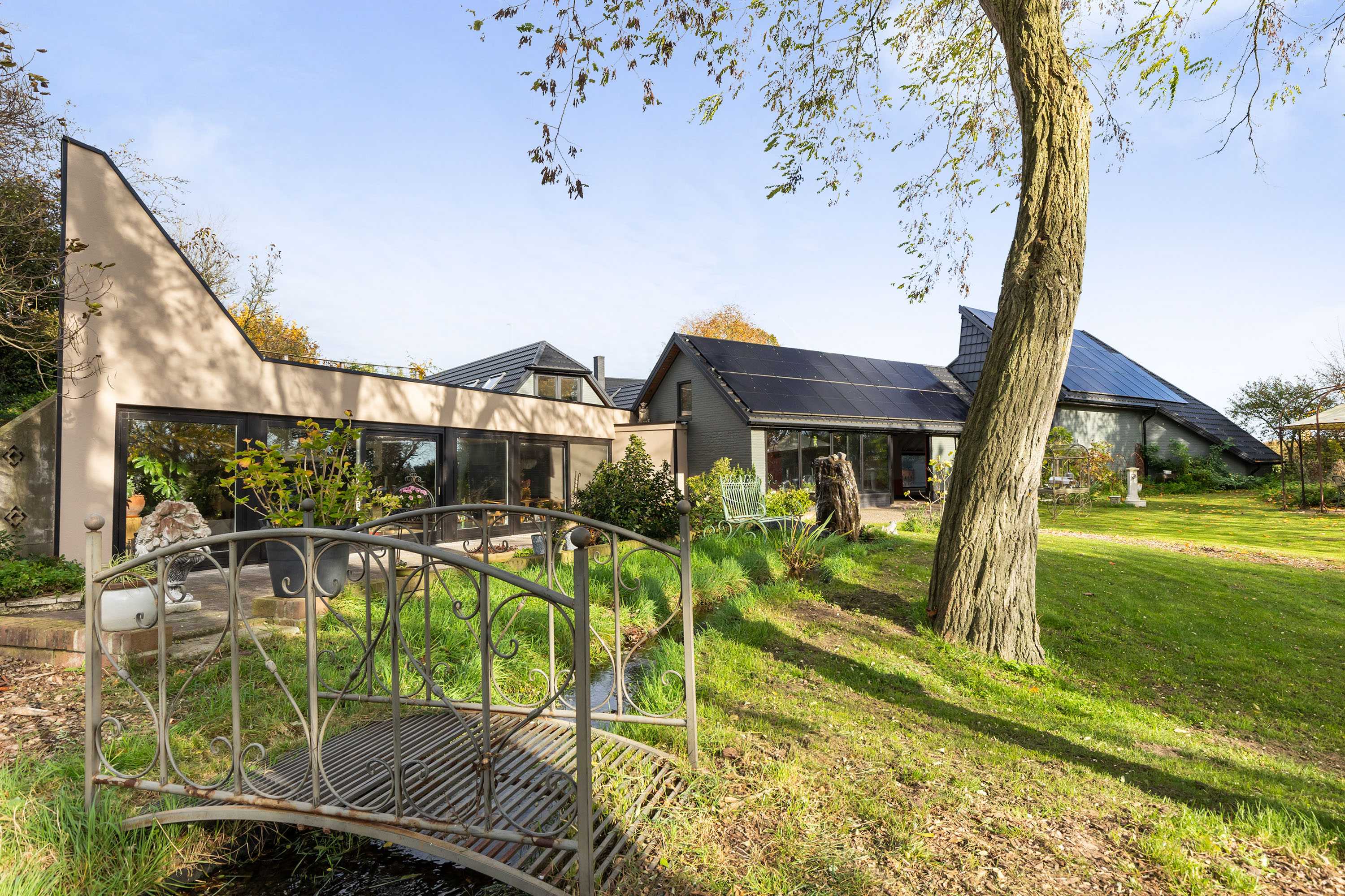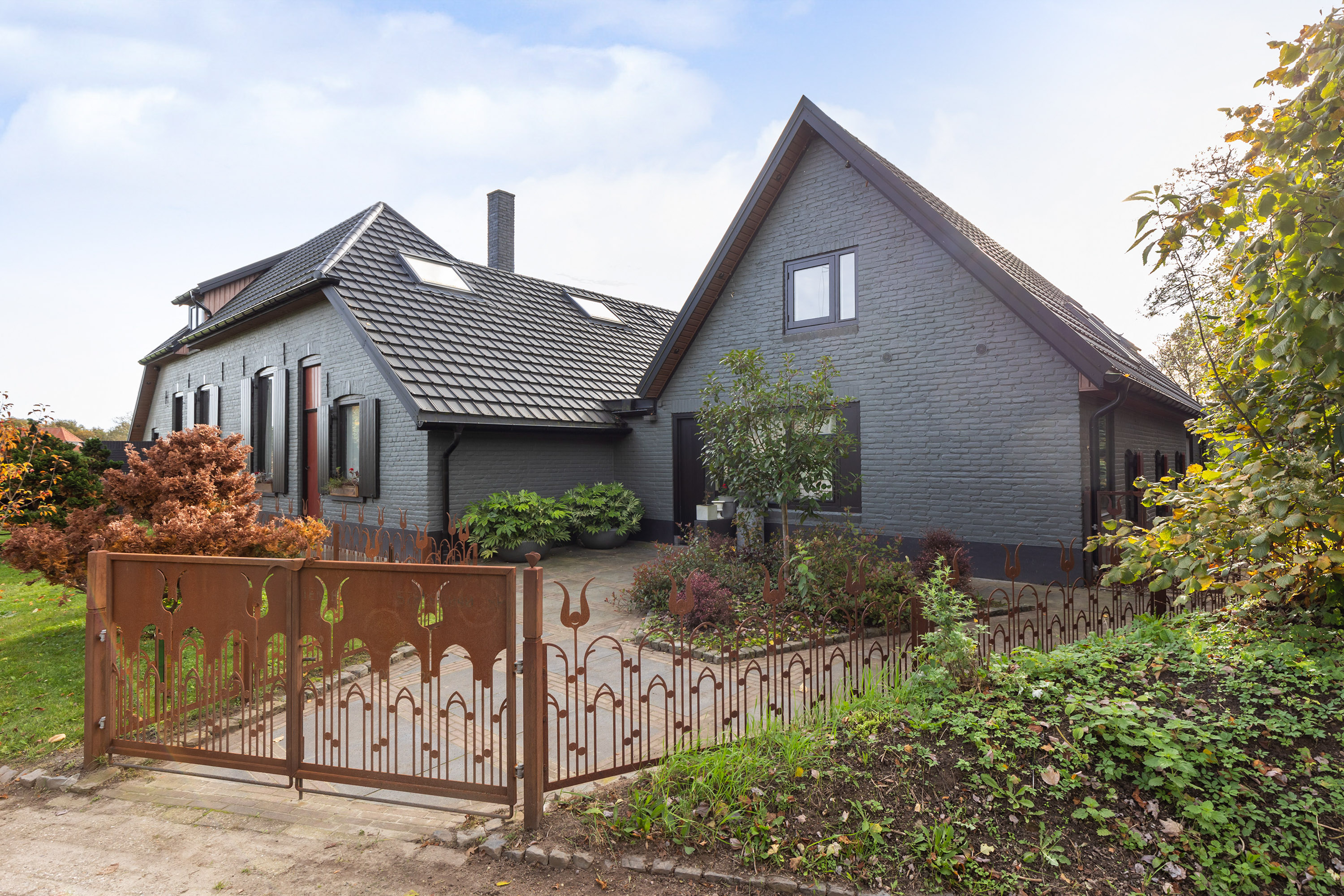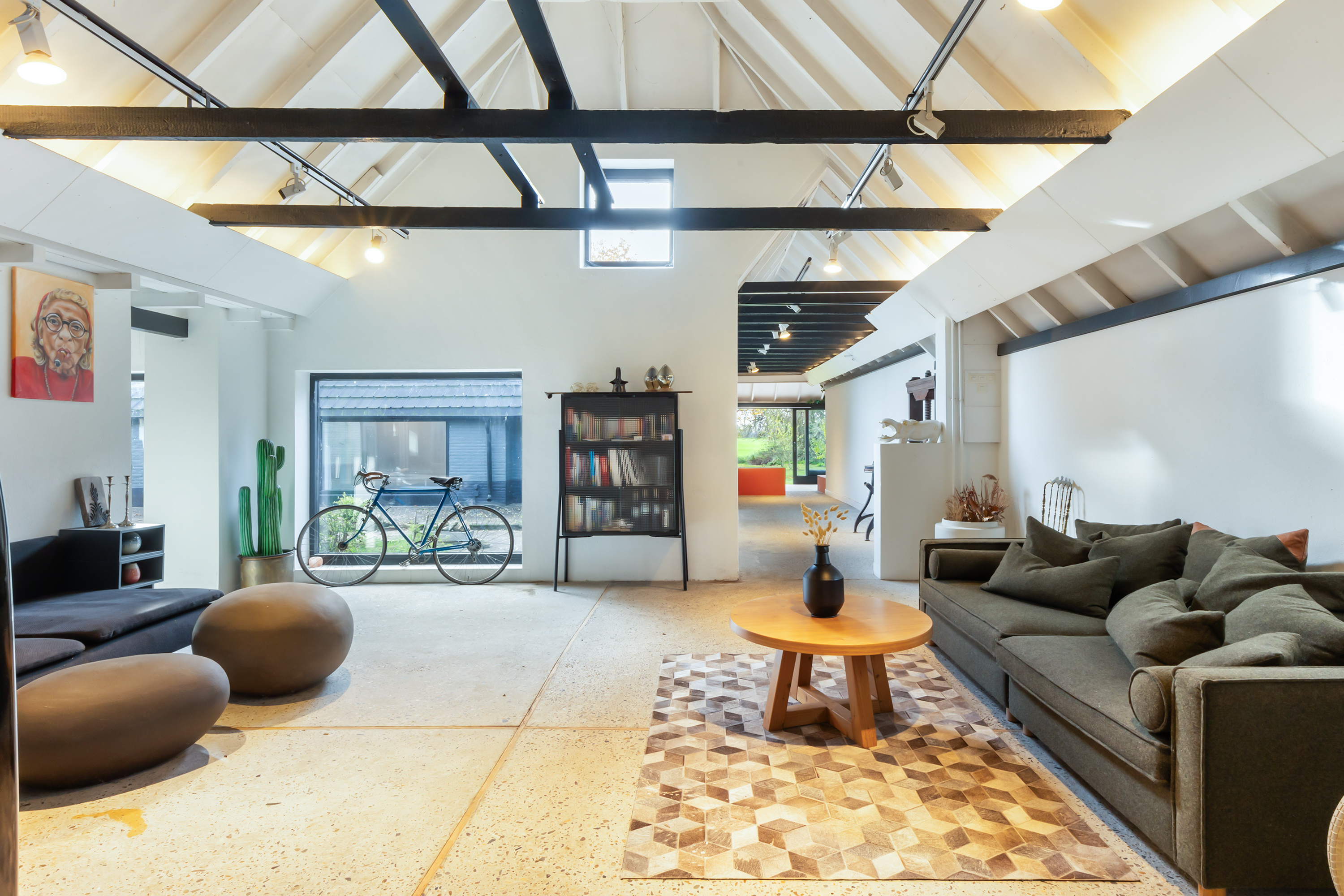 Farmhouse with contemporary bungalow Epse presents an extraordinary synthesis of history, modernity and sustainable vision. This property encompasses approximately 330 m² of elegant living space, enriched by a 445 m² commercial building, positioned amid open fields near Deventer with a highly visible presence along the A1. Together, the main residence and an independent secondary dwelling offer three bedrooms and three bathrooms over 314 m² within interiors that balance authentic detail and contemporary luxury.