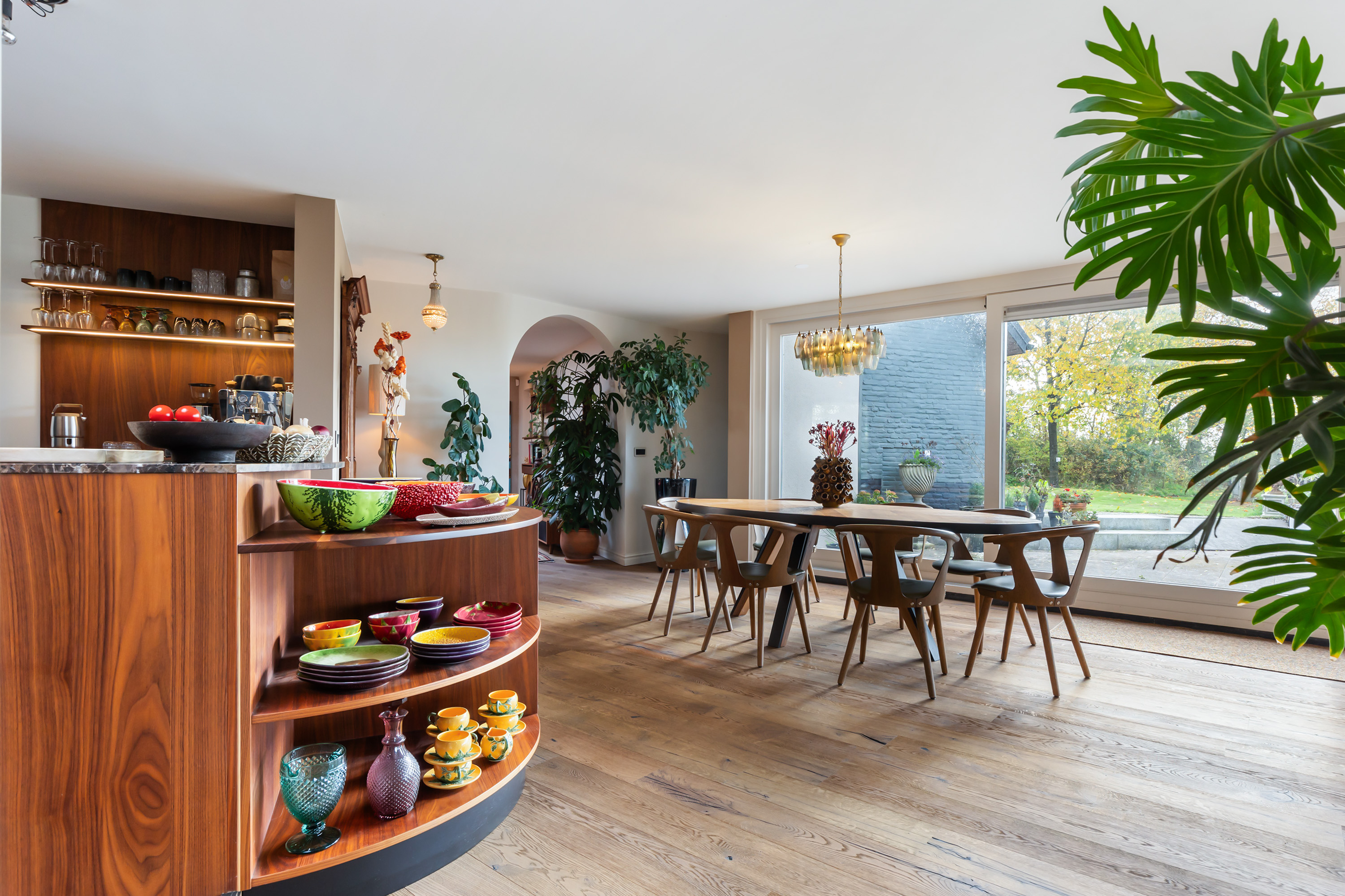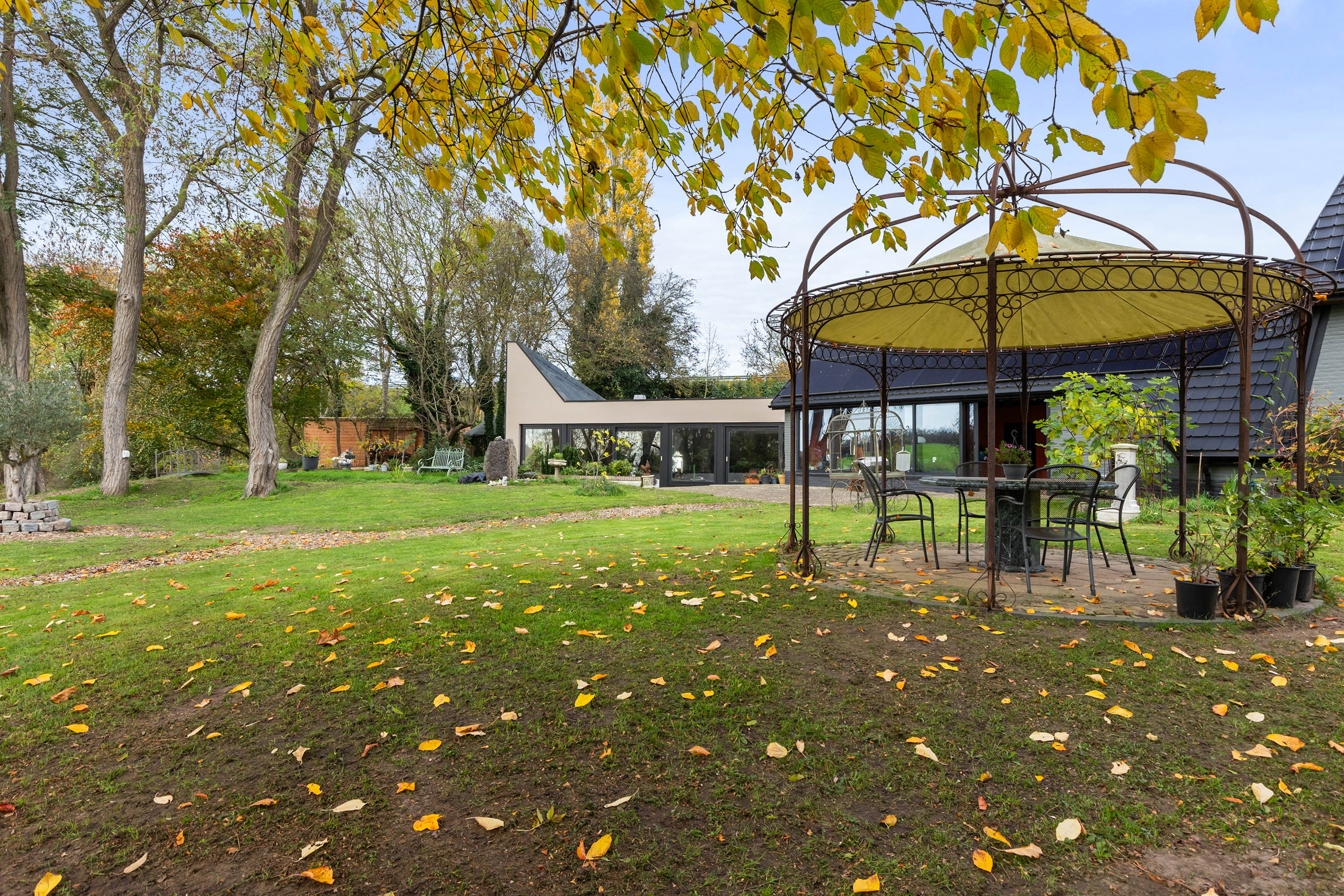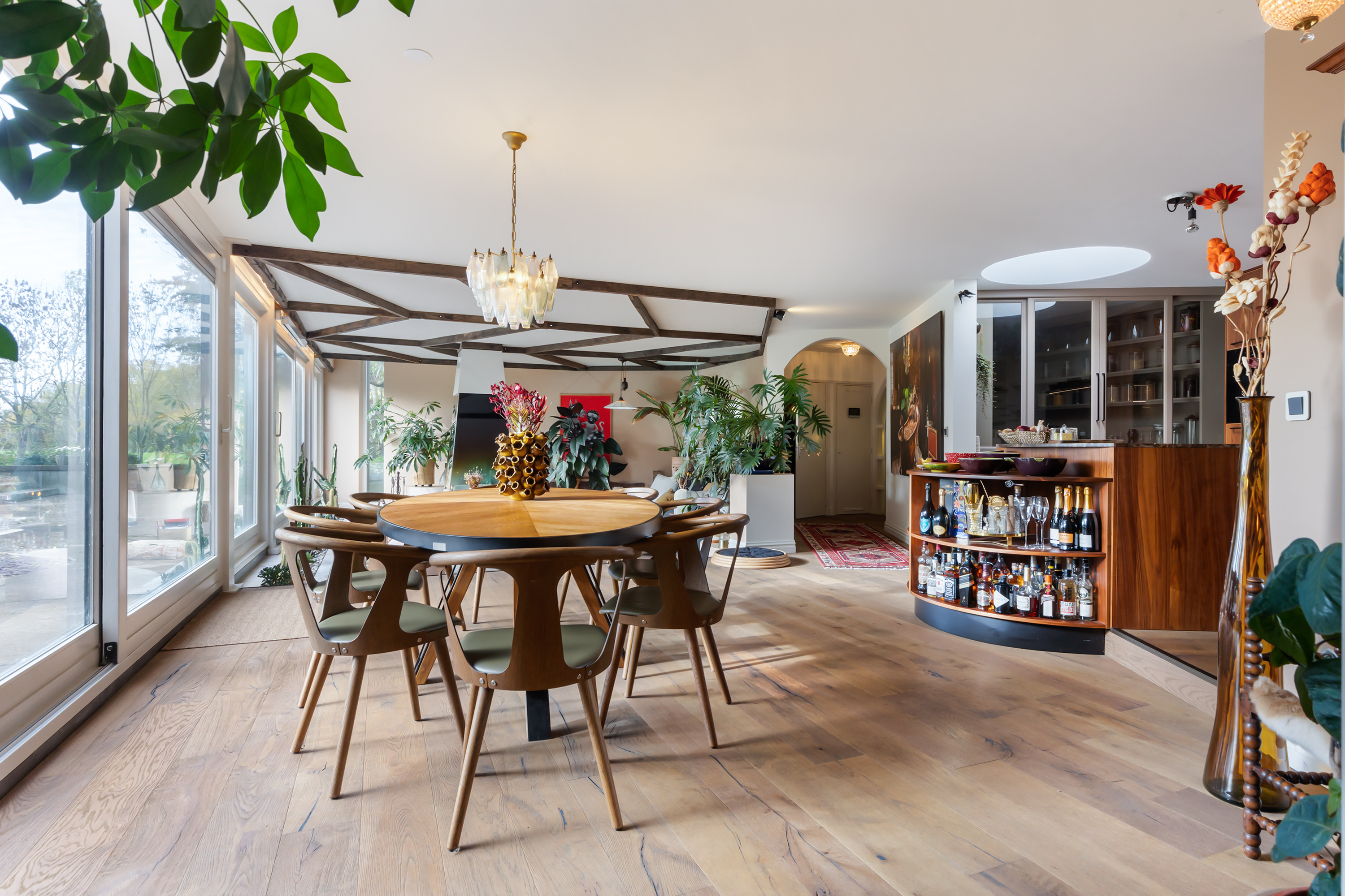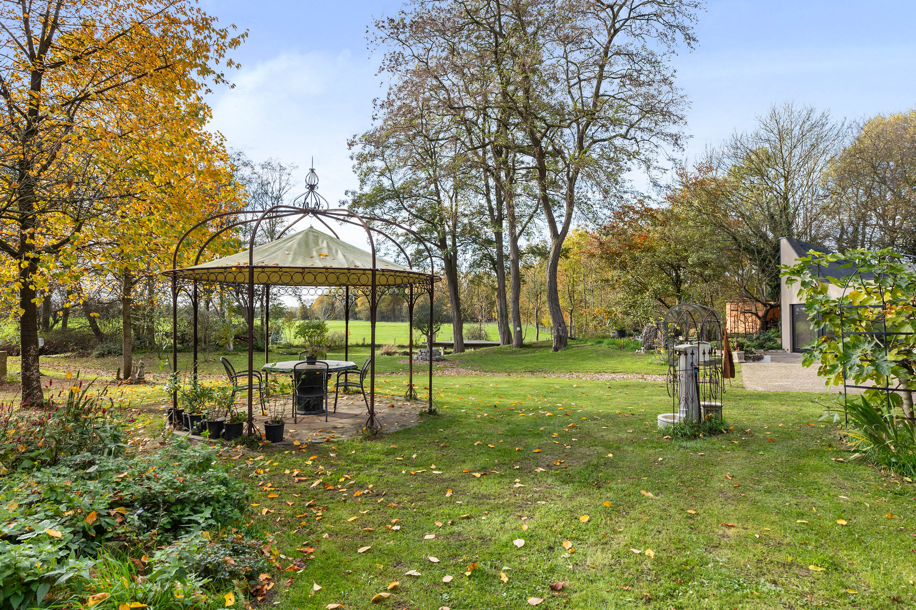 Farmhouse with contemporary bungalow Epse presents an extraordinary synthesis of history, modernity and sustainable vision. This property encompasses approximately 330 m² of elegant living space, enriched by a 445 m² commercial building, positioned amid open fields near Deventer with a highly visible presence along the A1. Together, the main residence and an independent secondary dwelling offer three bedrooms and three bathrooms over 314 m² within interiors that balance authentic detail and contemporary luxury.