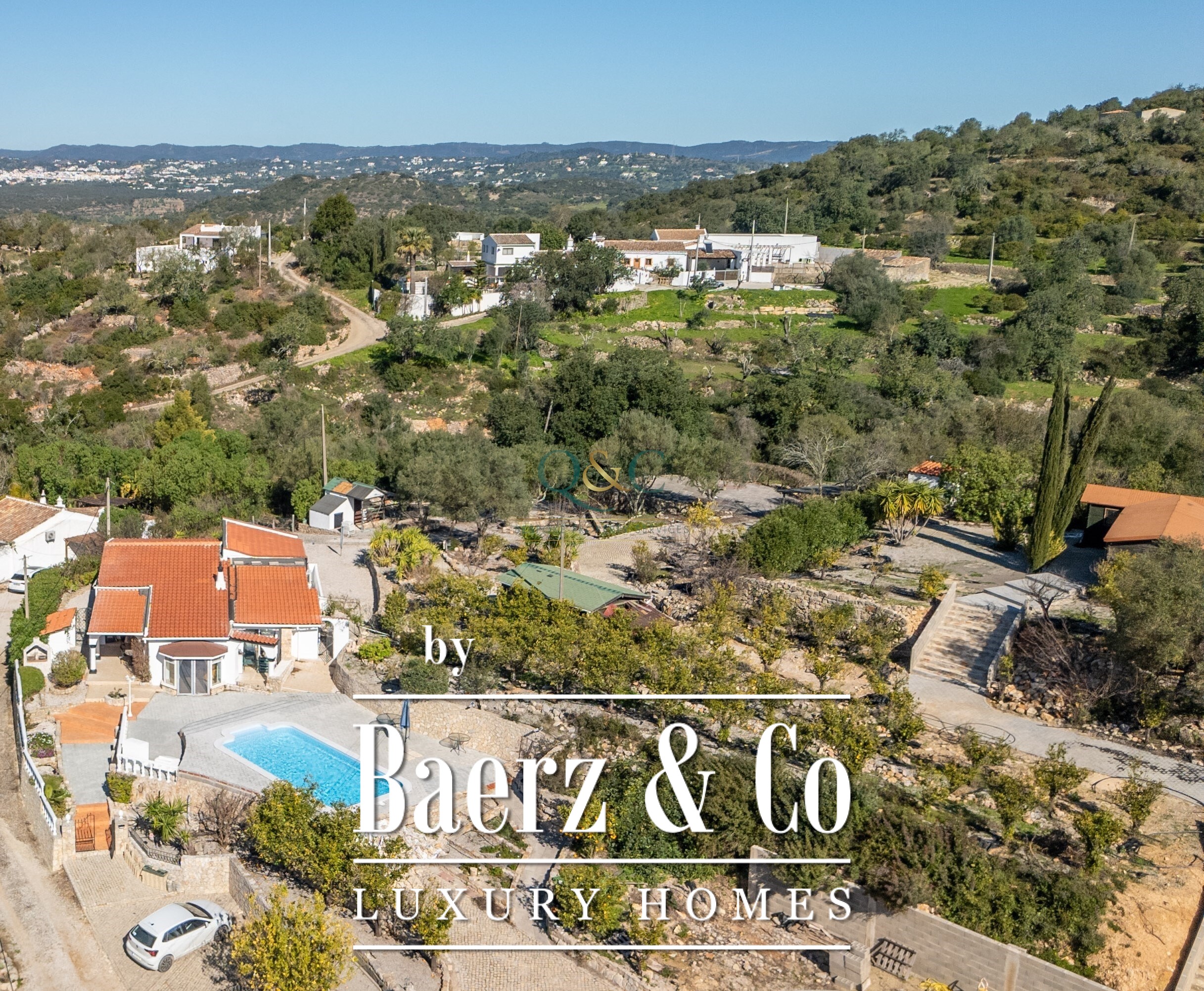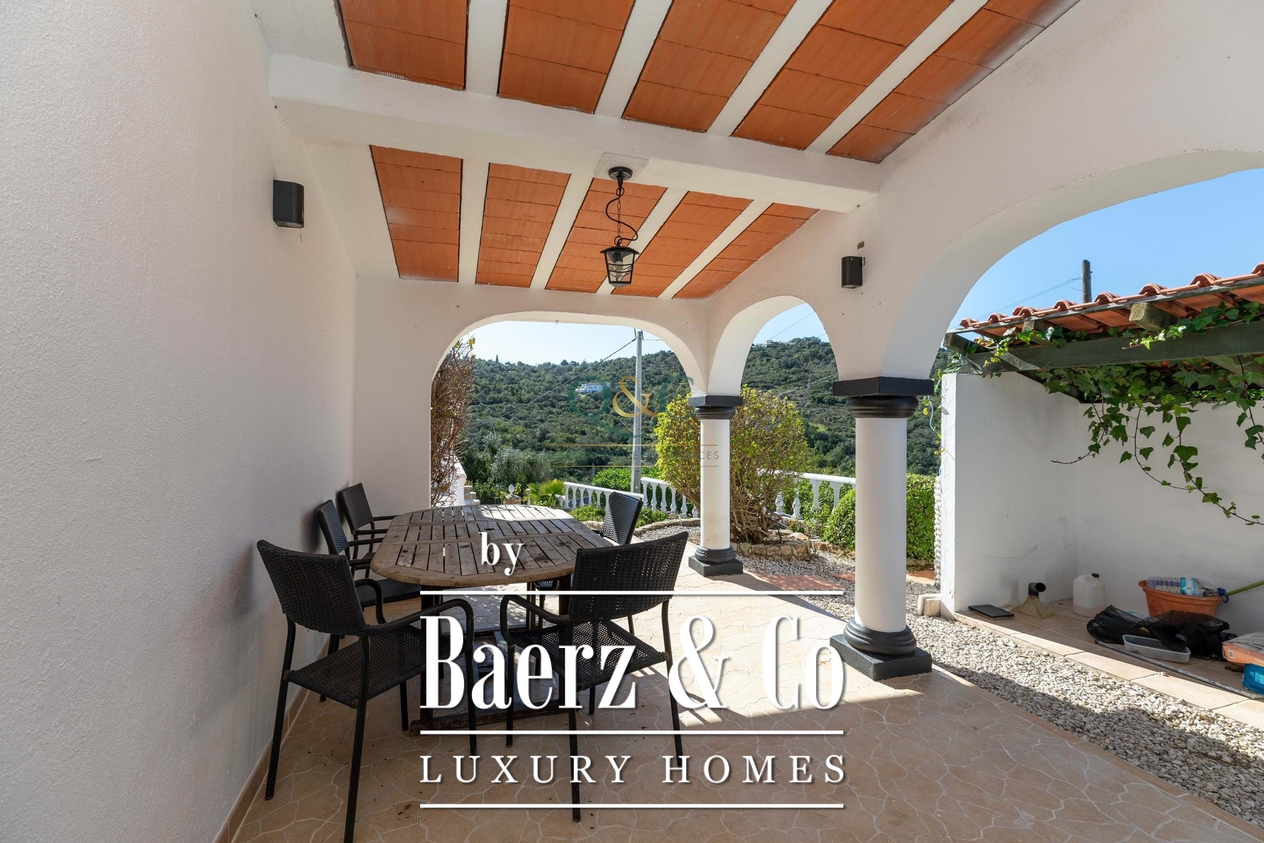 Outdoors, the 7,560 m² plot is thoughtfully landscaped, with citrus trees, newly built terraces, and a saltwater pool creating multiple zones for relaxation and entertaining. An external kitchen area and barbecue extend the possibilities for alfresco living. Privacy is preserved by a designated natural area, and the grounds are serviced by a private well and shared borehole, automatic irrigation, and double gated access. Positioned within easy reach of Estoi, São Brás de Alportel, and Faro, and just fifteen minutes from the coast and international airport, this villa balances rural calm with essential connections. Detached villa Estoi offers a rare invitation to experience Algarve life with both seclusion and convenience.