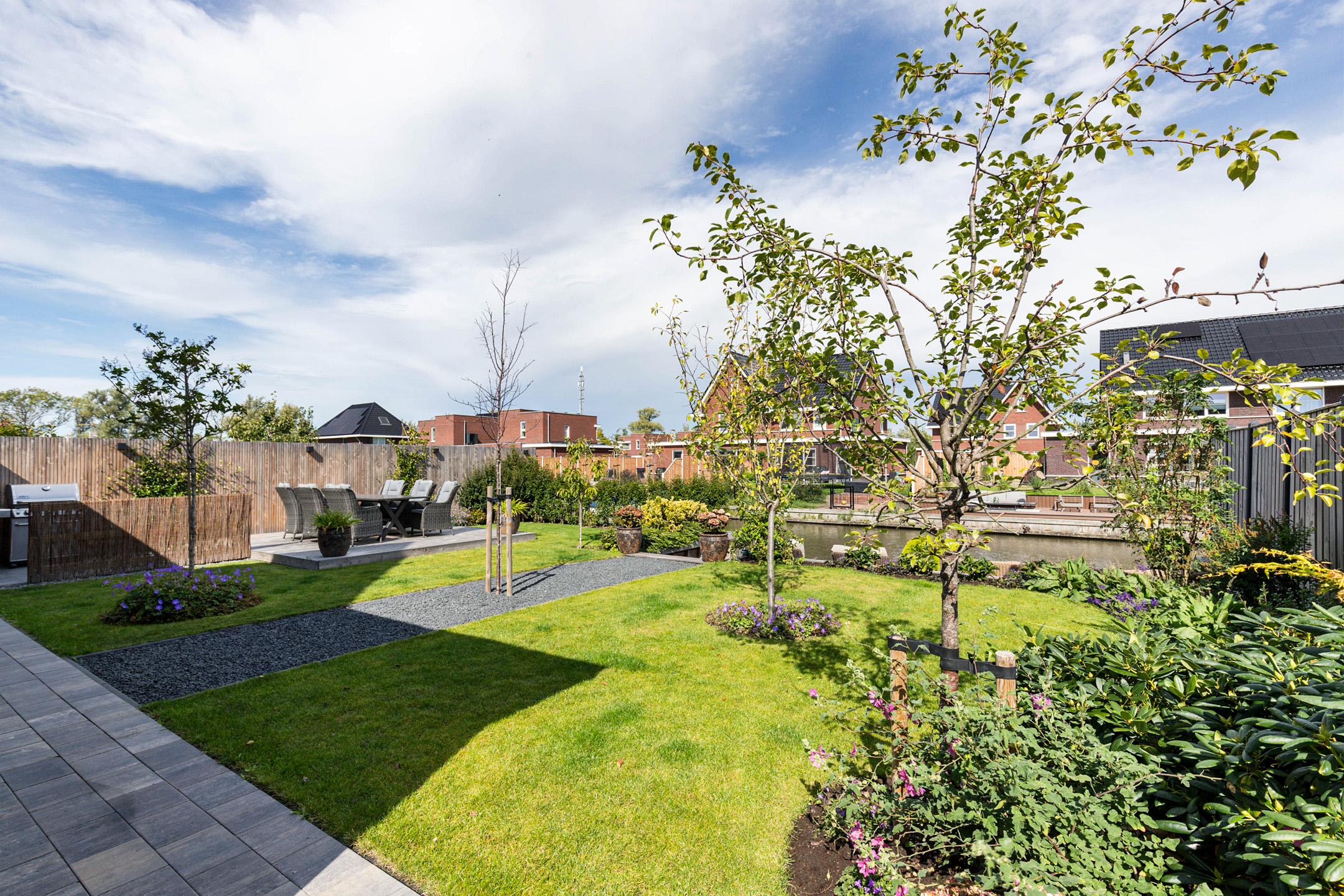 The 15-metre hardwood jetty, set slightly lower for easy access, is a true highlight – ideal for mooring your boat, enjoying water sports, or creating a private waterfront lounge. Thanks to the lush greenery, the garden guarantees both seclusion and a perfect balance of sun and shade.