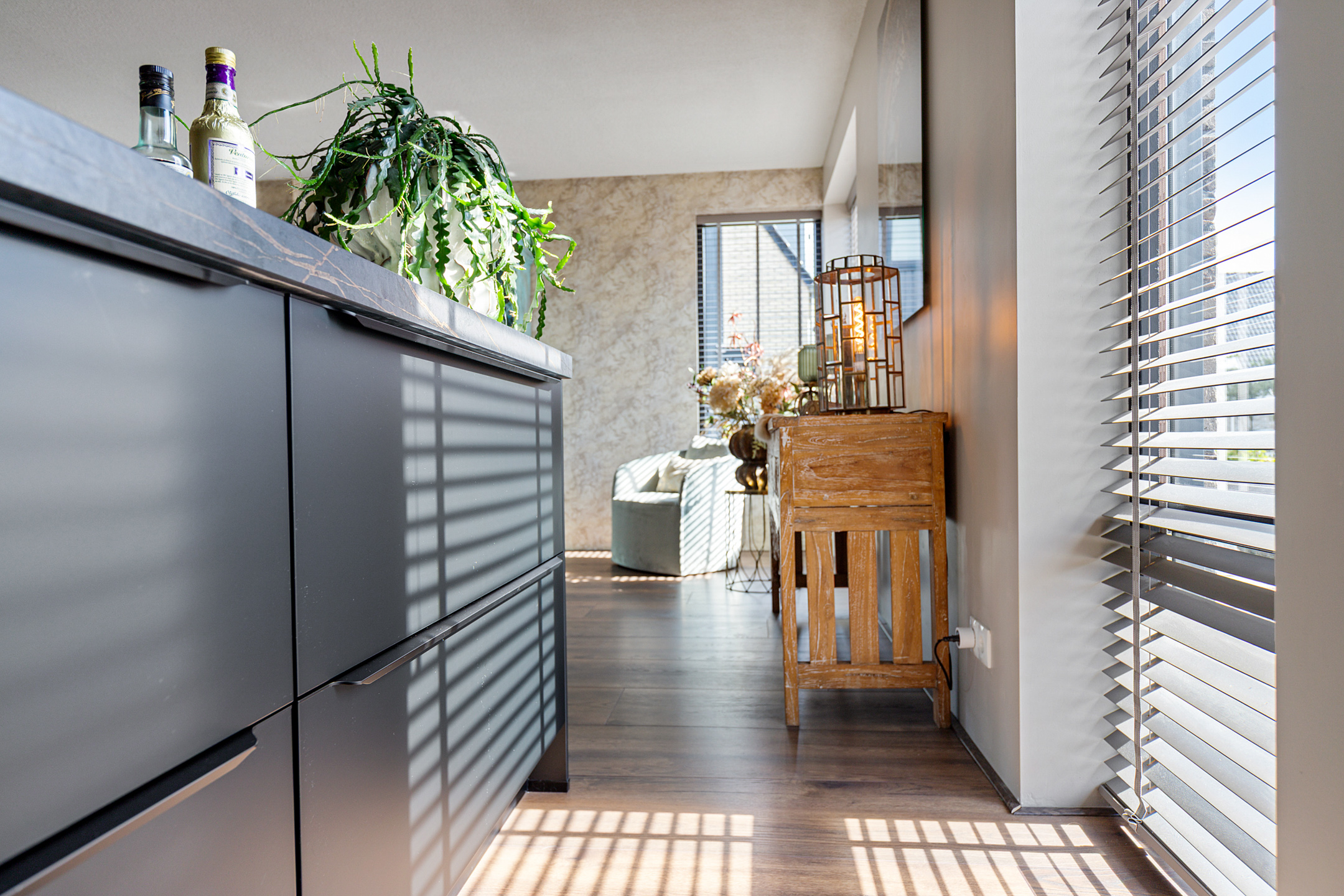 The living room, positioned towards the sheltered garden, creates a warm and intimate atmosphere and blends harmoniously with the light-filled kitchen-diner, forming an open-plan yet versatile living concept. The bespoke kitchen, situated at the front, is a true culinary statement, fitted with robust ceramic countertops, coffee station, dishwasher, combi oven, large Bora induction hob with integrated extractor, Quooker, and built-in fridge-freezer. The adjoining sitting area is designed for elegant comfort.