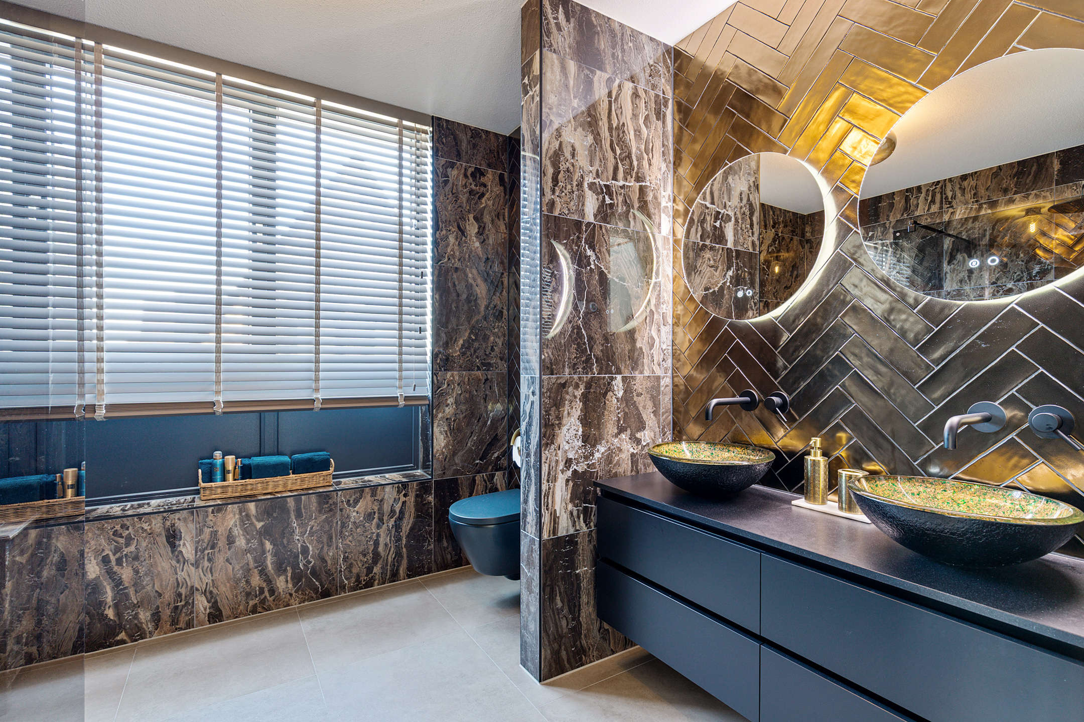 The bathroom is of true boutique-hotel calibre: flooded with natural light, featuring a spacious walk-in rain shower, designer double vanity, and lavatory. Every element is finished with refined detailing and high-end materials. This floor also enjoys luxury flooring with underfloor heating and cooling.