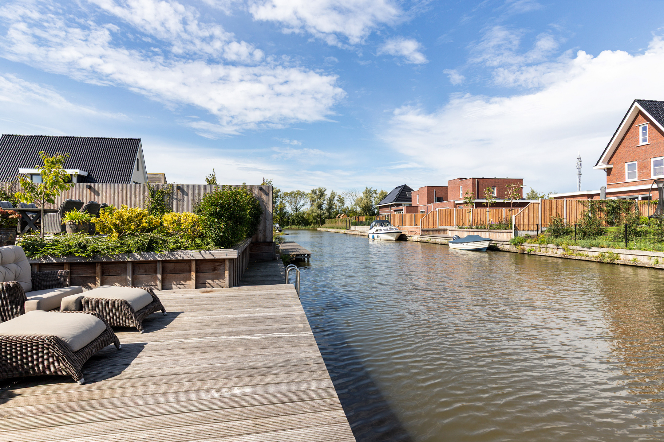 Set on the edge of the elegant new residential district of Franeker-Zuid, this striking detached villa (2023) enjoys a prime location directly on open water. A residence where refinement, comfort, and design converge, executed with uncompromising attention to detail. Nothing has been spared: energy-neutral living, low-maintenance exteriors, contemporary tilt-and-turn windows, underfloor heating and cooling, luxurious façade finishes in a timeless palette, an architectural design with a bold modern risalit, sleek plastered walls, and a master suite with walk-in dressing room. The bespoke kitchen showcases premium craftsmanship, while the year-round garden room extends the living space seamlessly outdoors. A professionally landscaped garden with an extra-deep hardwood jetty completes this remarkable waterfront estate.