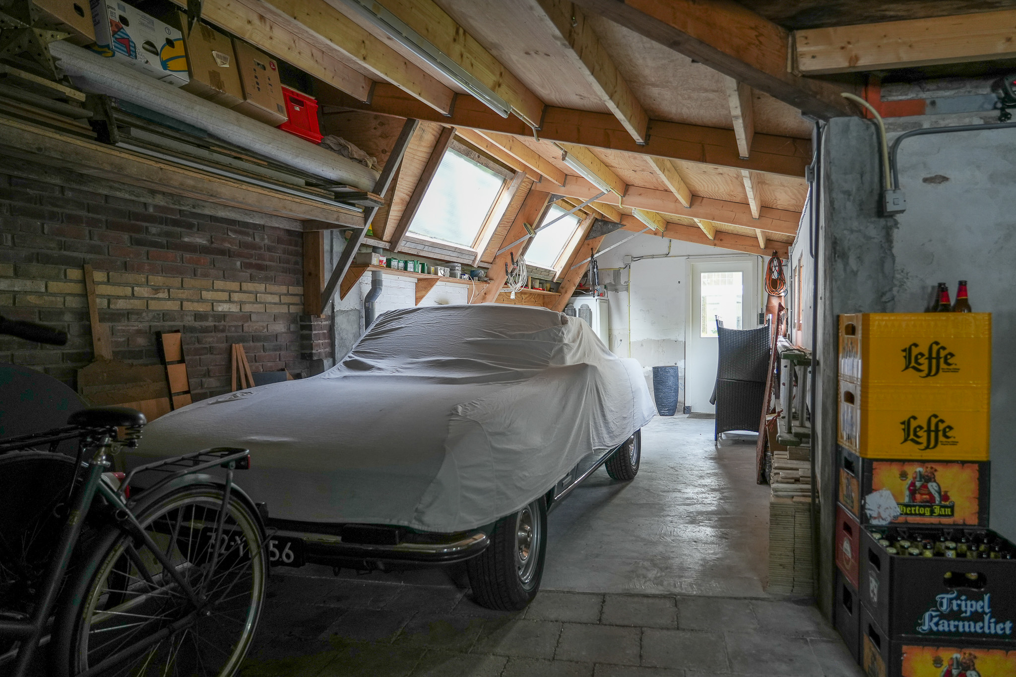 Behind the house lies a unique garden, 9.5 metres wide and 15 metres deep, facing east and south — offering both sunny and shaded spots throughout the day. In 2021, the owners were able to extend the plot, creating space for a large, tiled outbuilding (59 m²). This building is ideal for use as a garage for a classic car or boat, or as an artist’s studio. The double doors open onto the private parking area behind the house.
