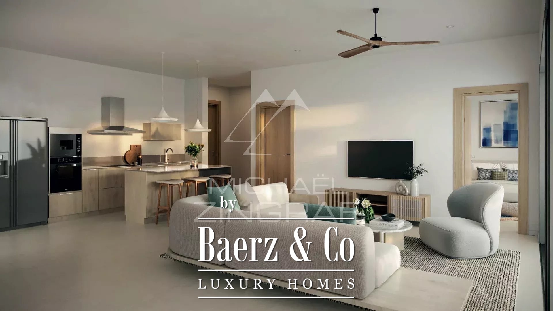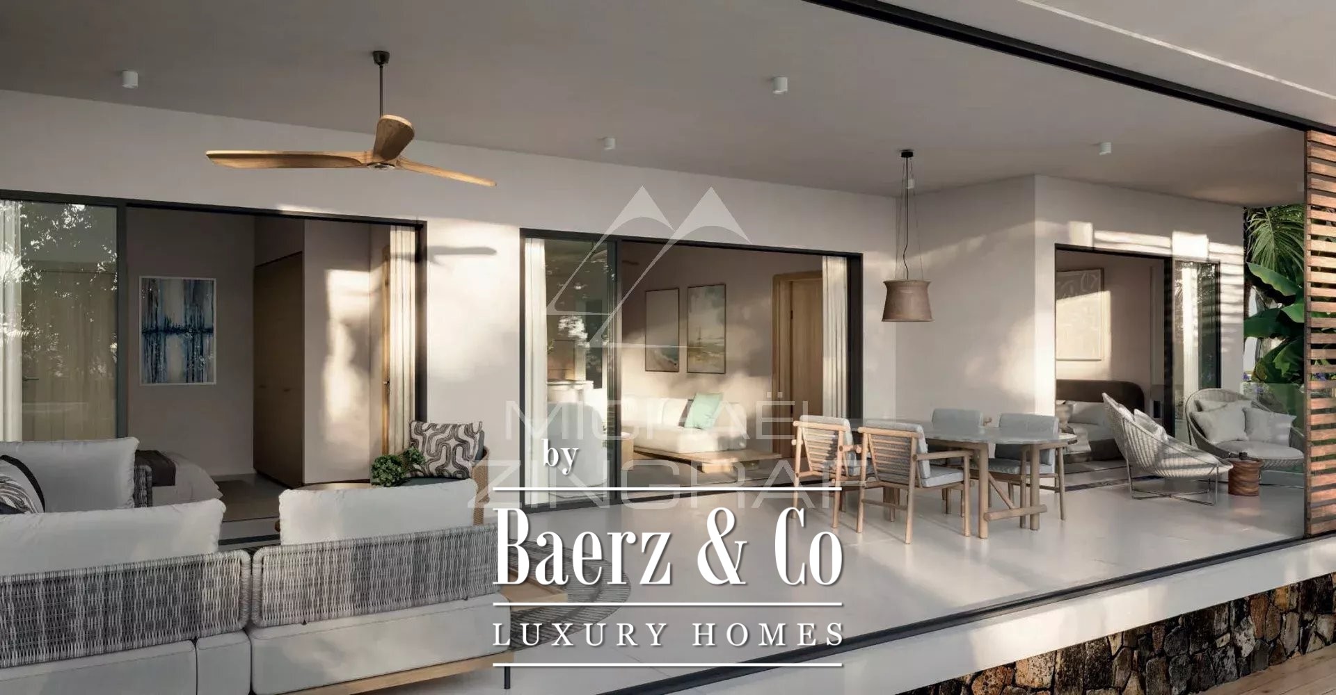 The focus on natural materials continues throughout the open lounge and kitchen area, where wooden features harmonize with granite and marble surfaces. These purposeful choices ensure an atmosphere that is both resilient and effortlessly calm. Three bedrooms, each with an en suite bathroom, reflect a commitment to comfort and privacy, while the master suite’s walk-in wardrobe adds a subtle note of luxury.
