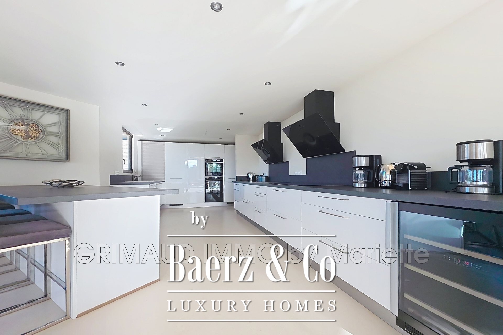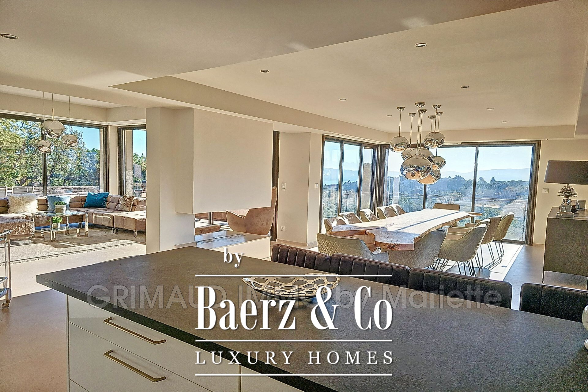 Villa Grimaud offers an expansive living experience, drawing on a generous 306m² footprint discreetly arranged over two levels. This villa Grimaud property holds five inviting bedrooms, complemented by five bathrooms and a separate laundry space; each detail engineered for comfort and quiet functionality. An open plan living room of approximately 90m² flows seamlessly into a fully equipped kitchen, creating spaces that invite relaxation and convivial meals with sea views as a constant backdrop.